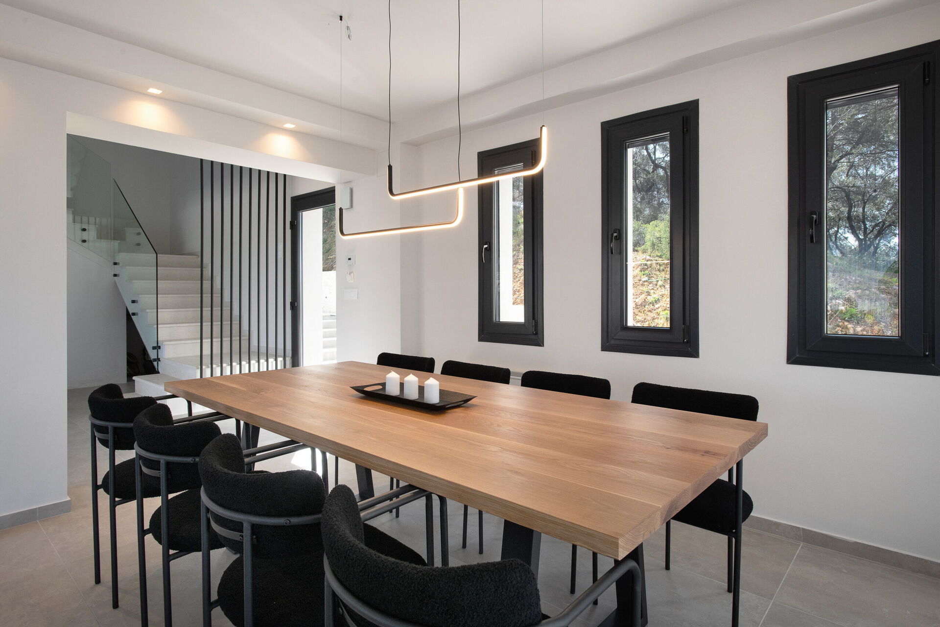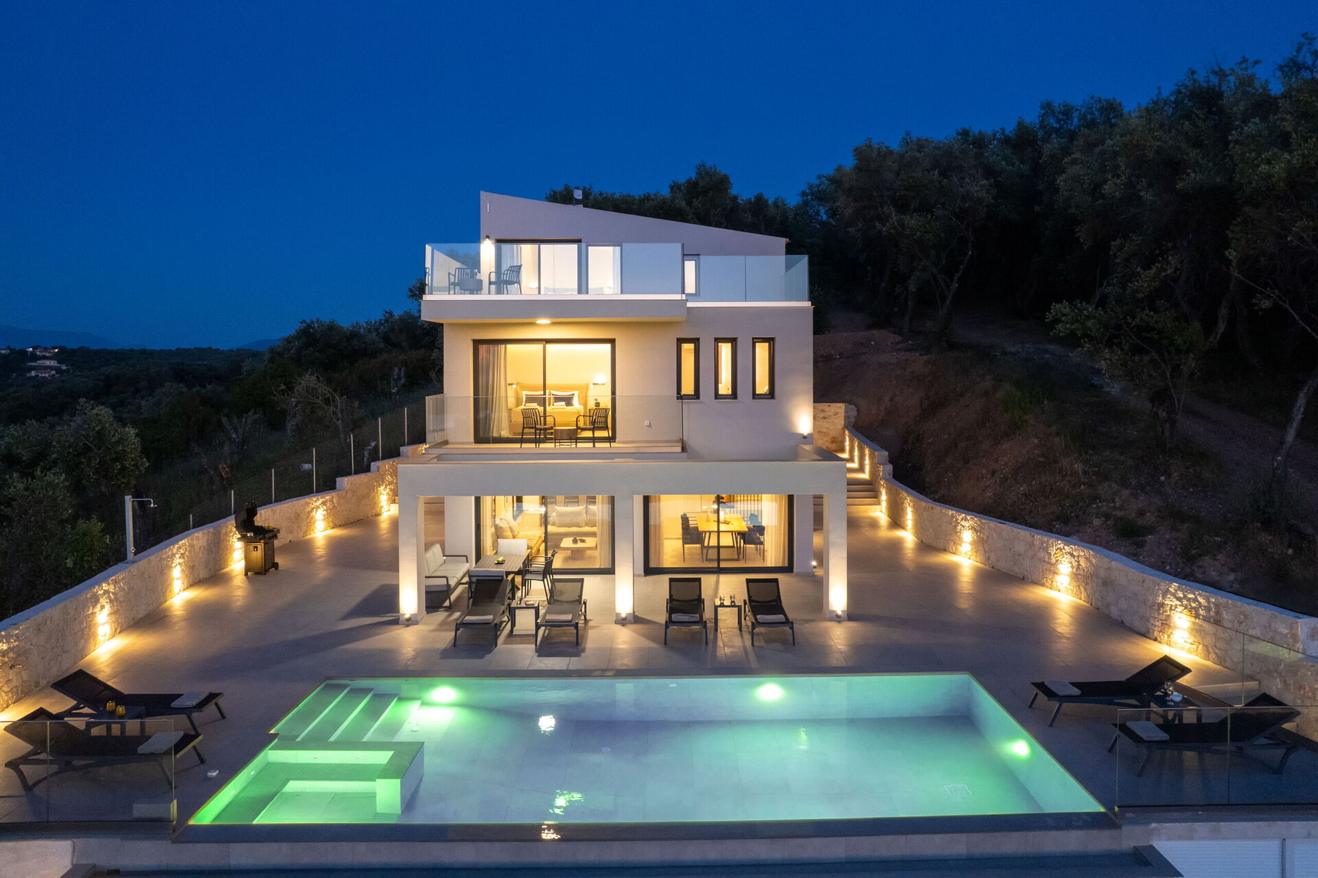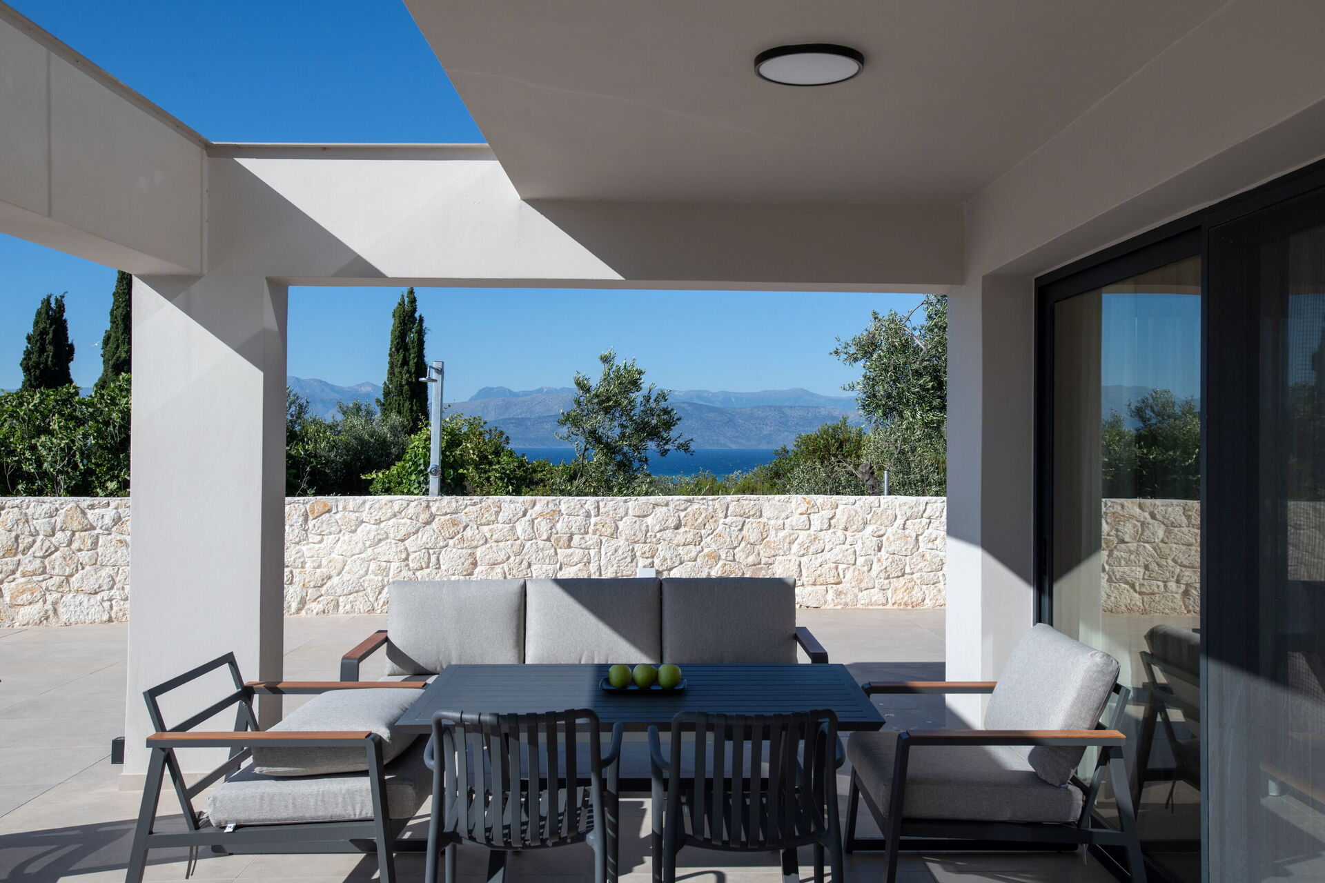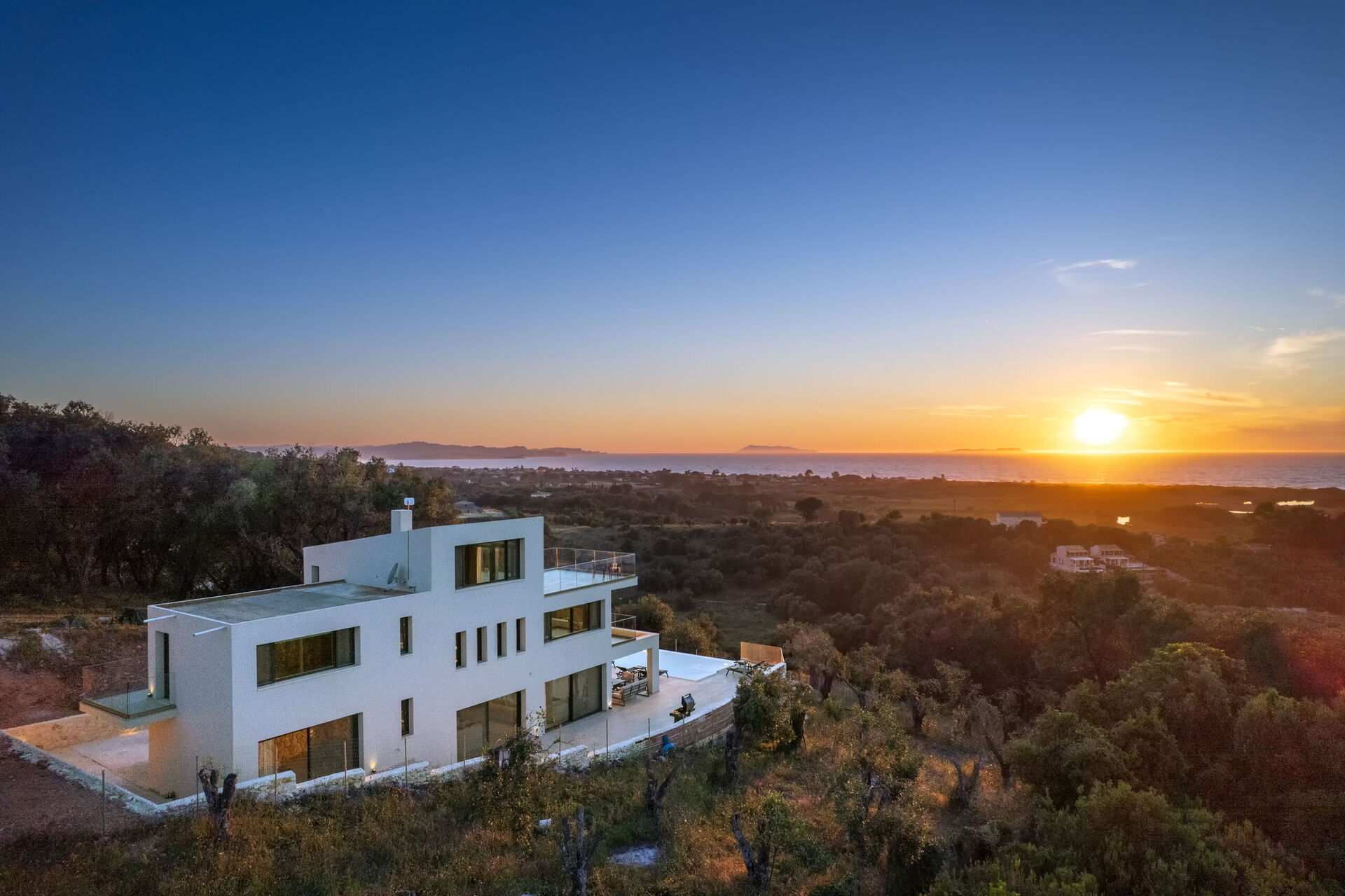 Huset blev færdiggjort i marts 2025 og er en af de smukkeste moderne villaer på den nordlige kyst af Korfu. Fra ejendommen har man en fantastisk udsigt over havet og solnedgangen. Fra villaens terrasser og den naturskønne pool kan man beundre det smukke landskab. Huset er udstyret med alle ultramoderne faciliteter.