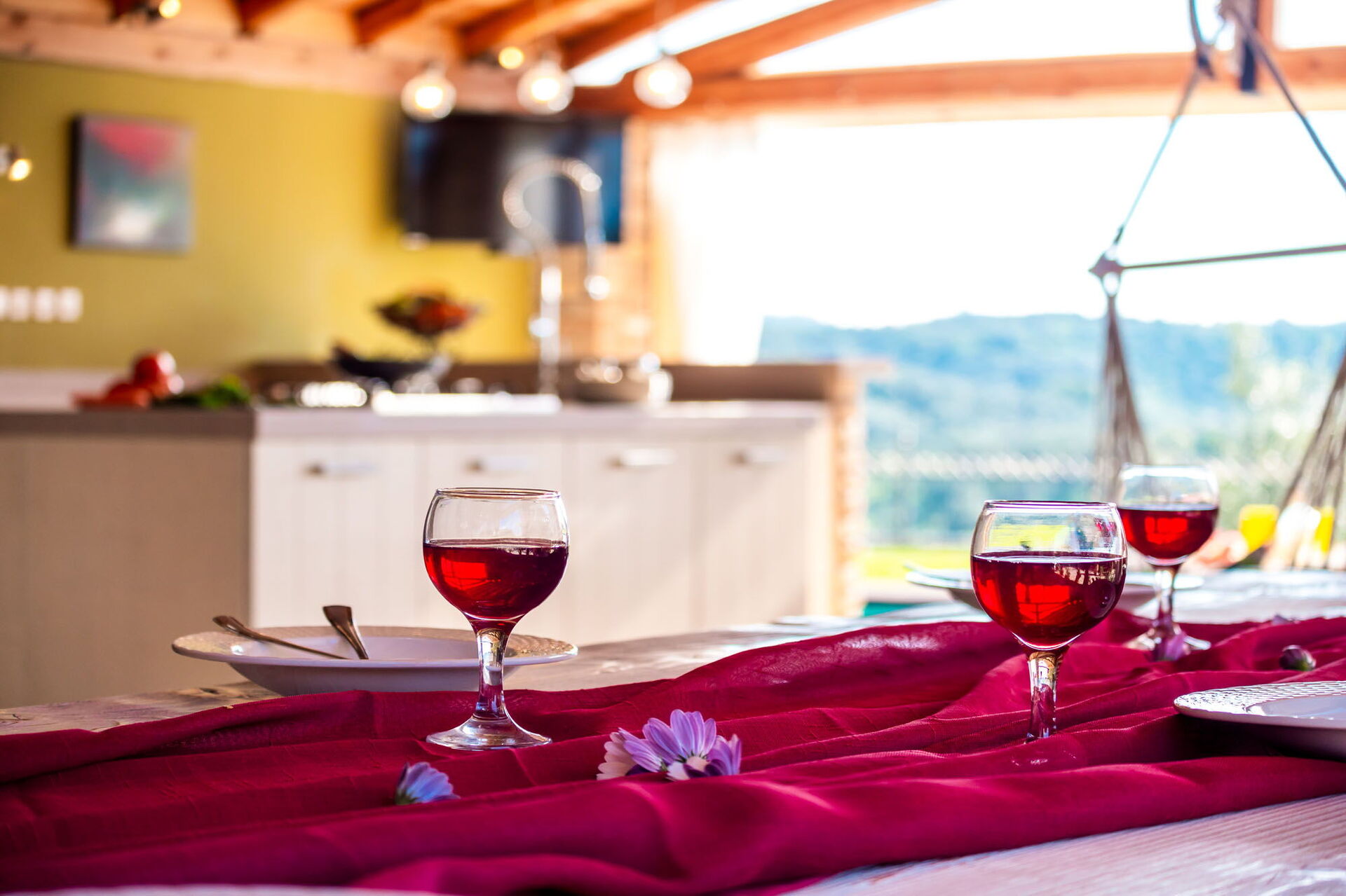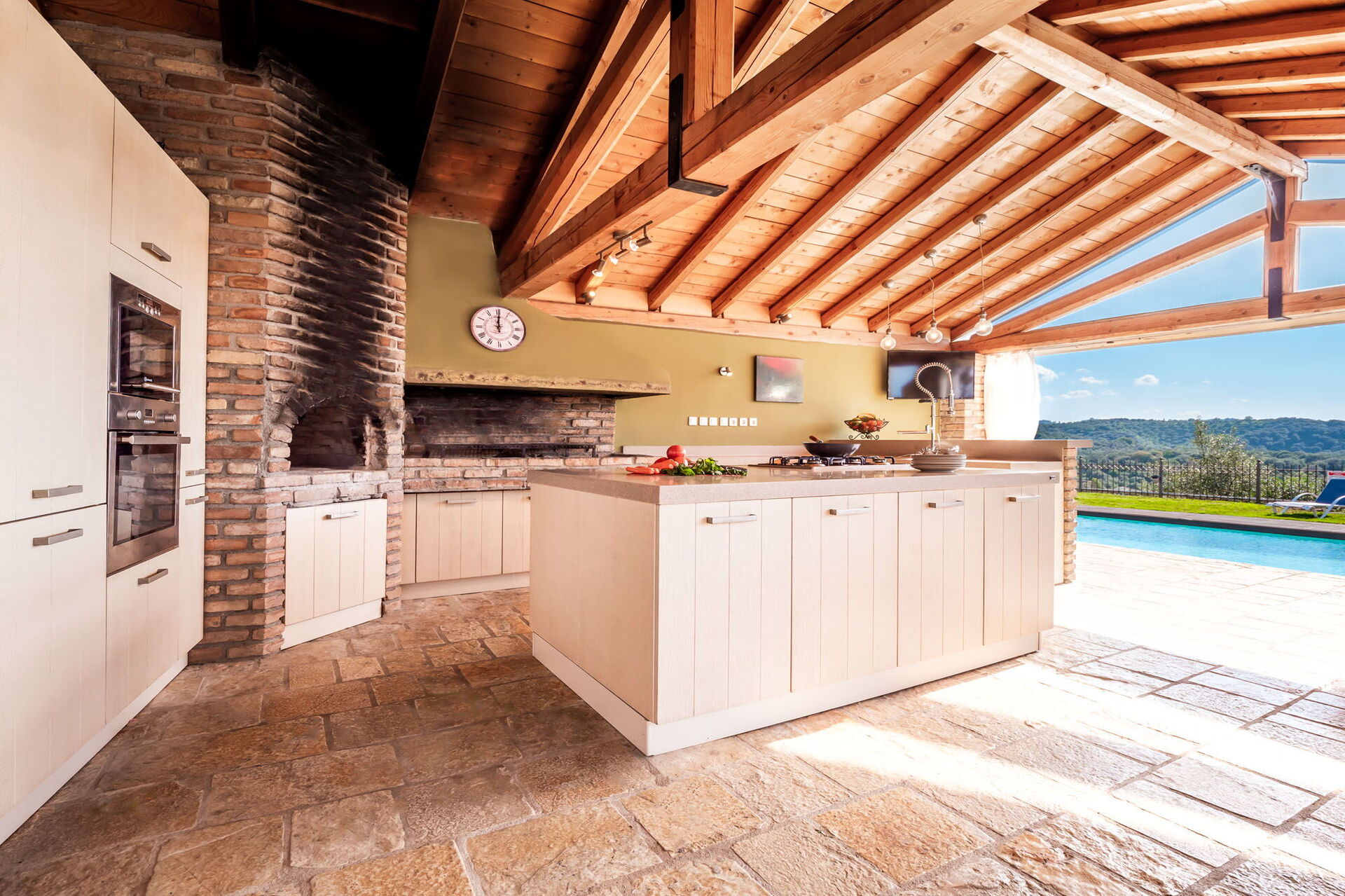 • stort privat udendørsområde udstyret med køkken, grill og brændefyret ovn