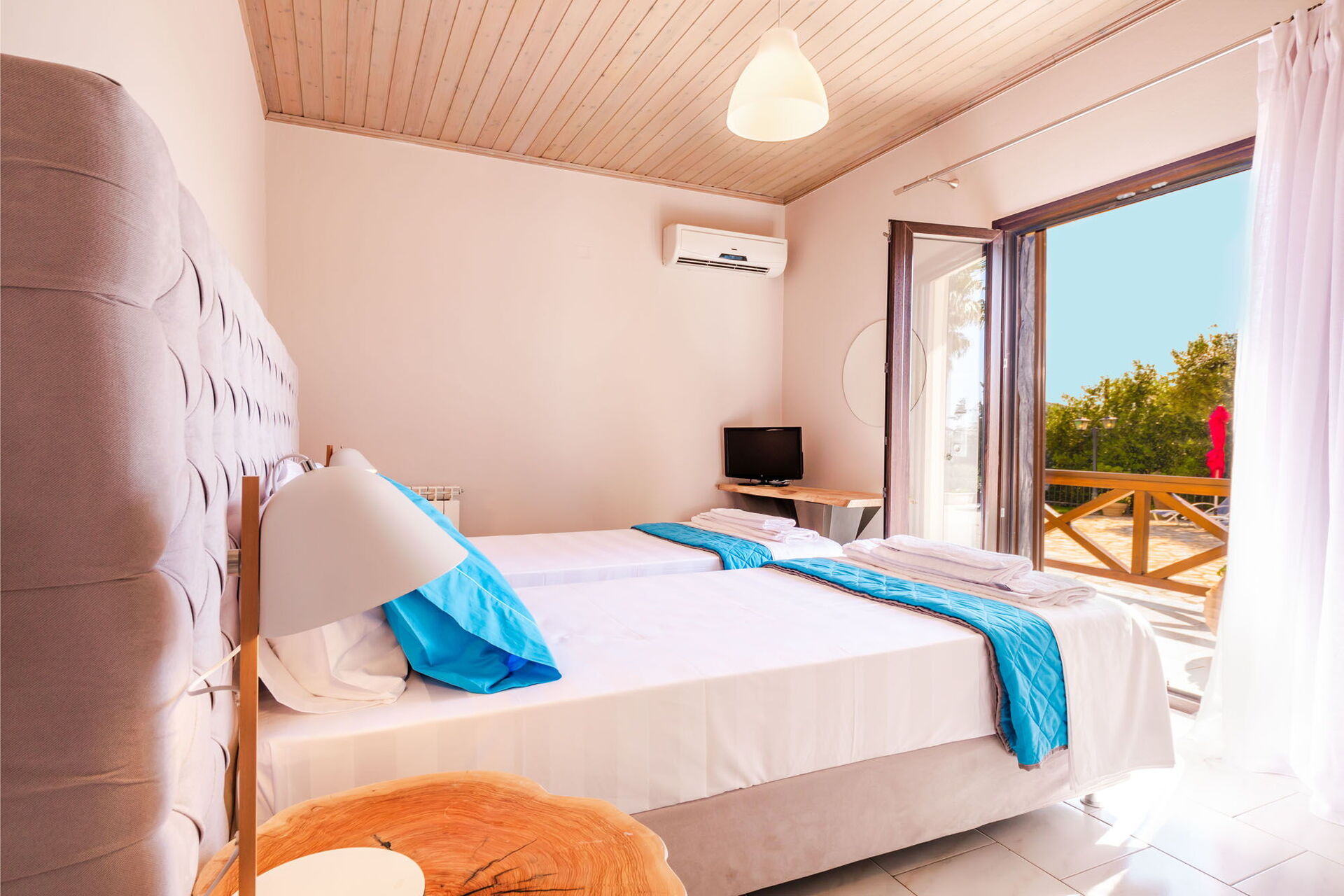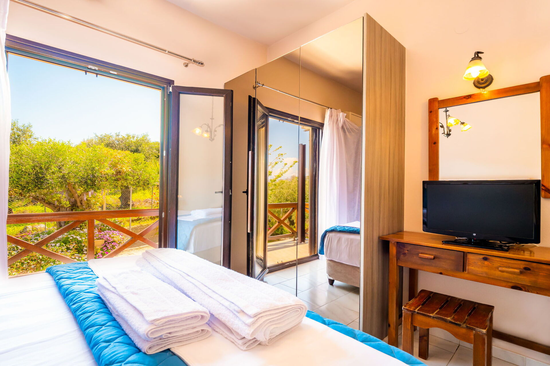 Afstande: havet 400 meter væk (Agios Spyridon-stranden), Acharavi (butikker af alle slags) 5 km, Kassiopi 7 km, Palaiokastritsa 40 km, Korfu by 43 km, lufthavn 45 km.