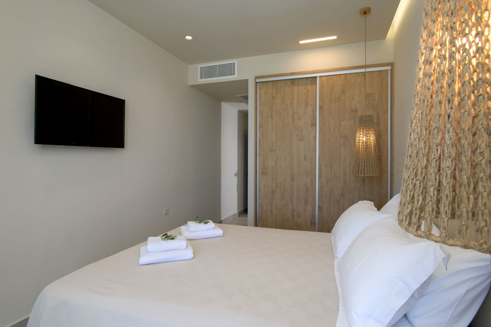 Åbent værelse med stue (smart TV), spiseplads og køkken (ovn, fryser, opvaskemaskine, mikroovn, brødrister, kedel og kaffemaskine); toilet; 2 soveværelser, begge med eget badeværelse med bruser; twin værelse (kan sammensættes på forespørgsel) og eget badeværelse med bruser