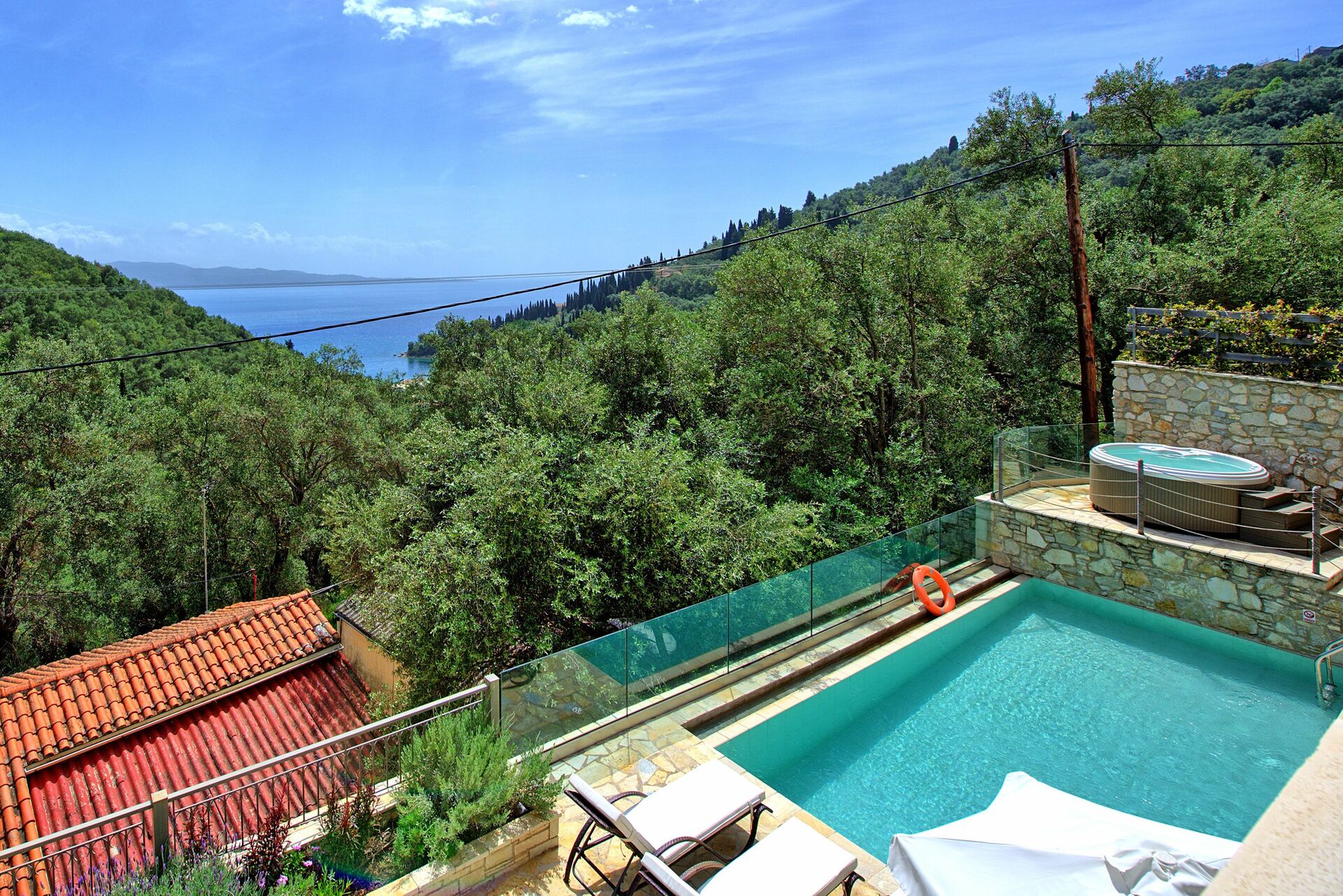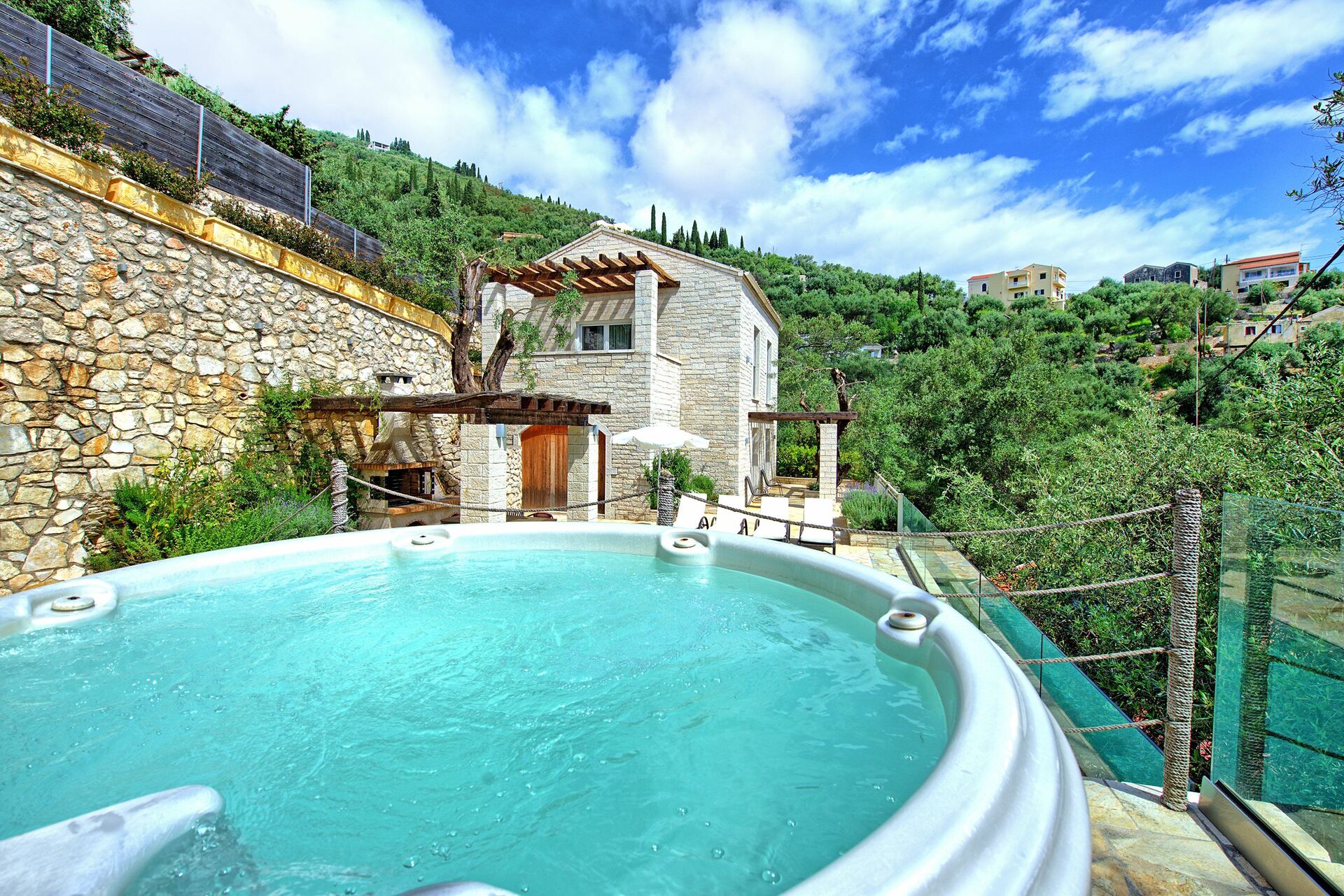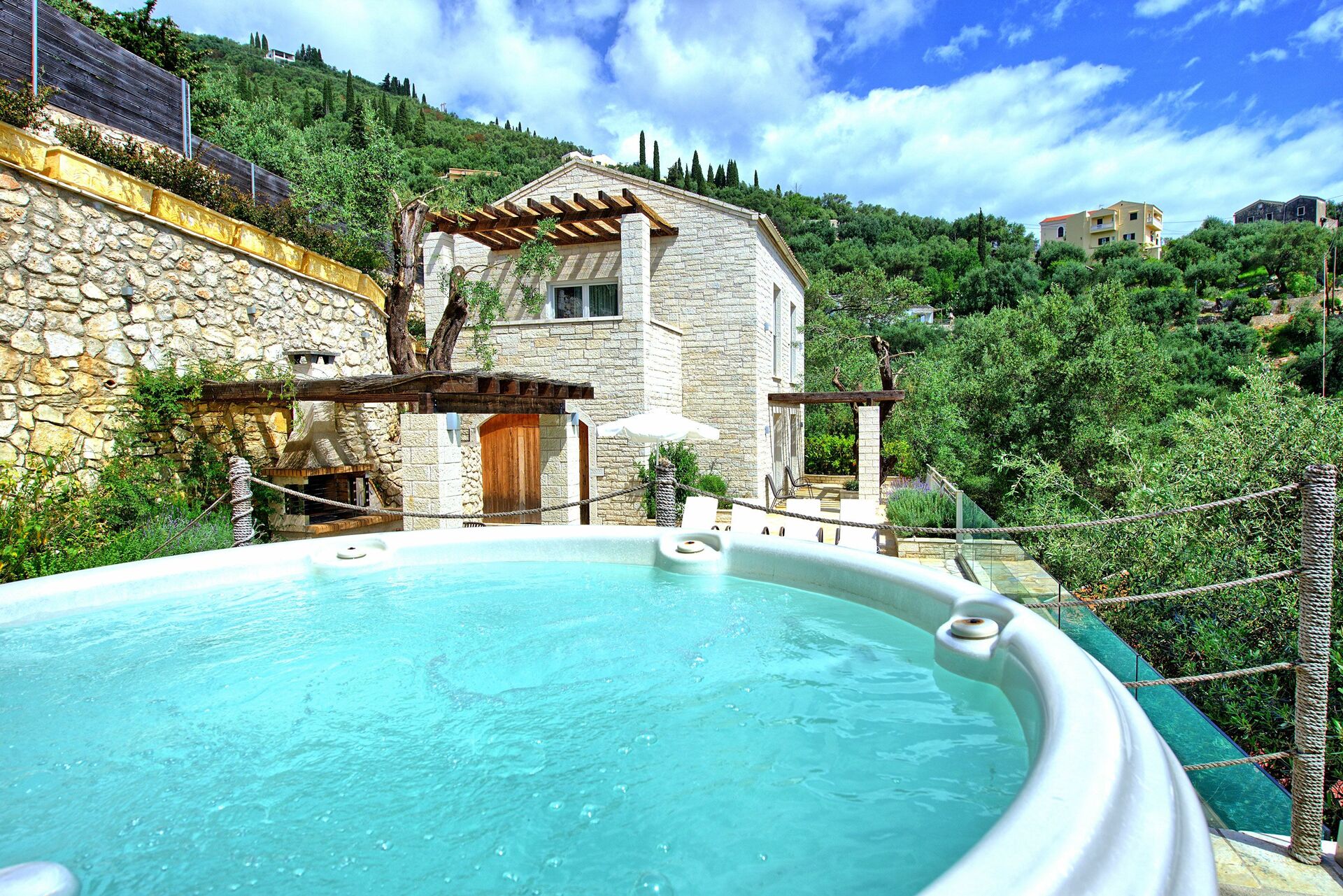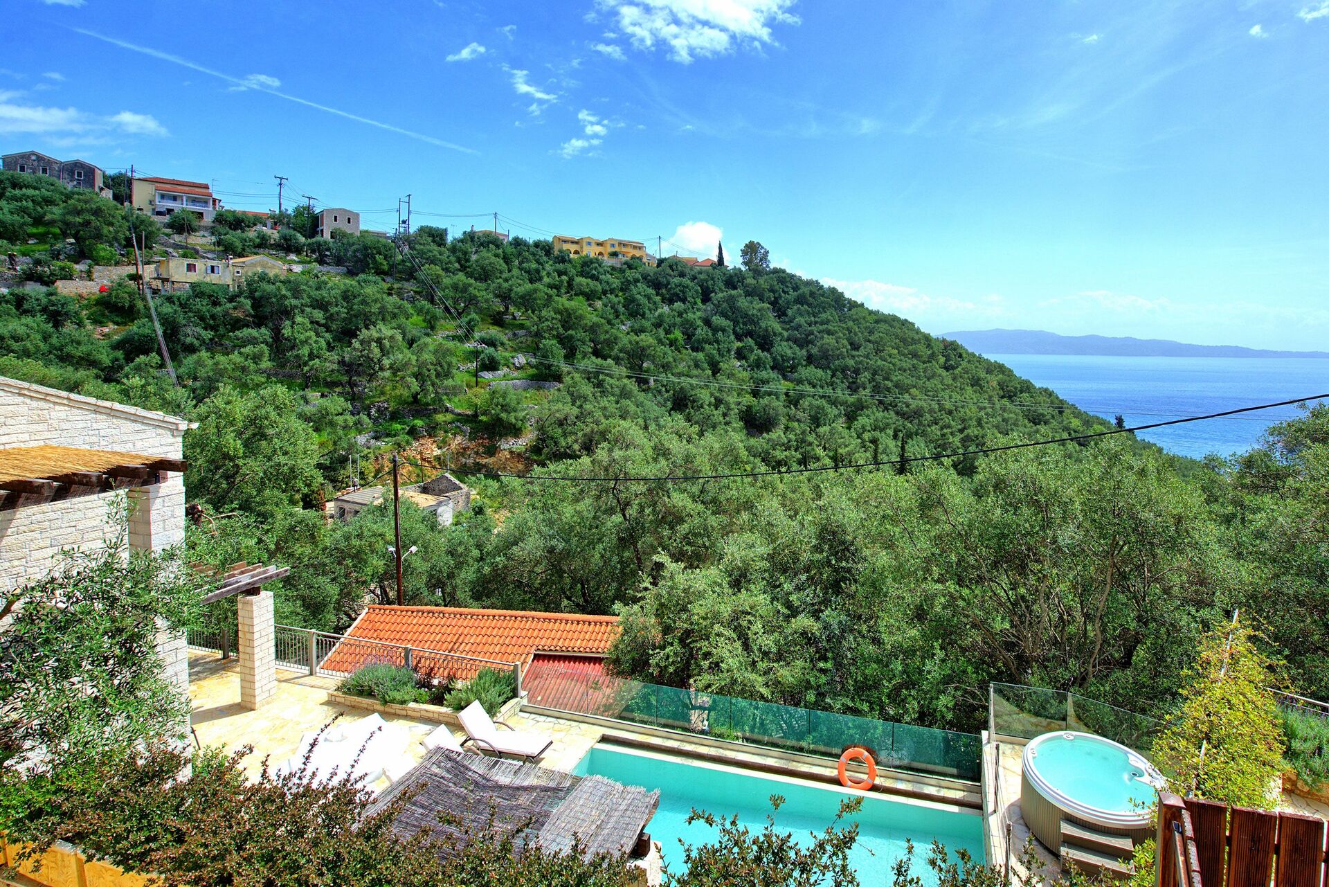 Feriehuset ligger kun få meter fra den identiske bolig Villa Jacaranda: hvert hus byder på et privat udendørsområde med opvarmet pool og spabad. Disse splinternye feriehuse, færdiggjort i 2018, ligger på bakken over den berømte Agni-bugt, hvor der er en strand og fremragende restauranter, hvor man kan nyde det traditionelle græske køkken.