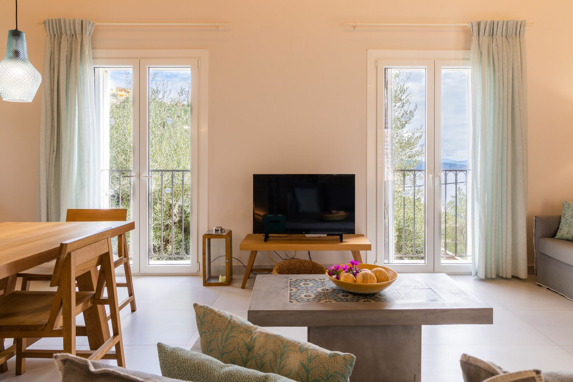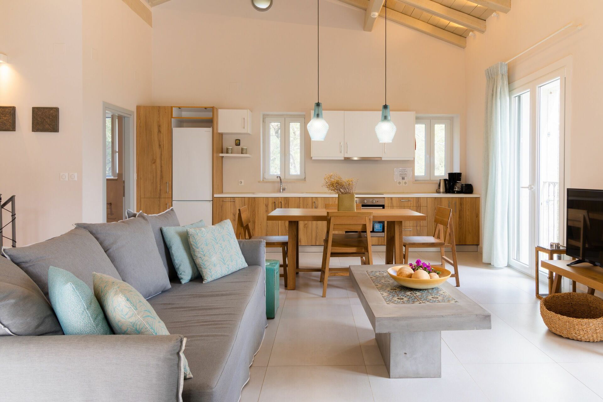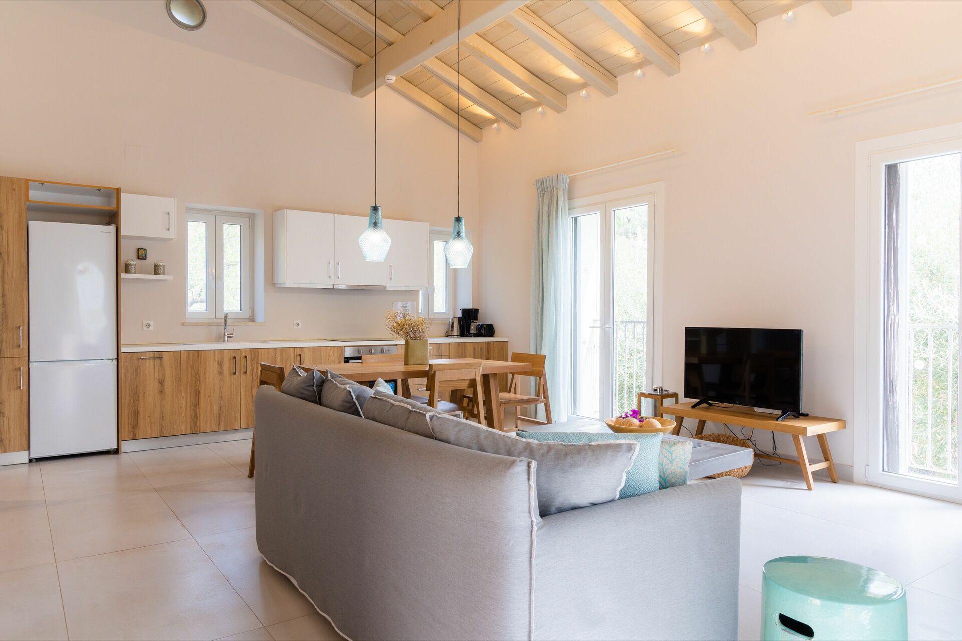 Great villa with perfect location; elevated on a hill, 10 min walking from a nice beach with great restaurant (Toula’s seaside). Bright and modern, with nice swimming pool and all amenities, finishing are OK, WIFI is slow… We would definitely recommend that place!
