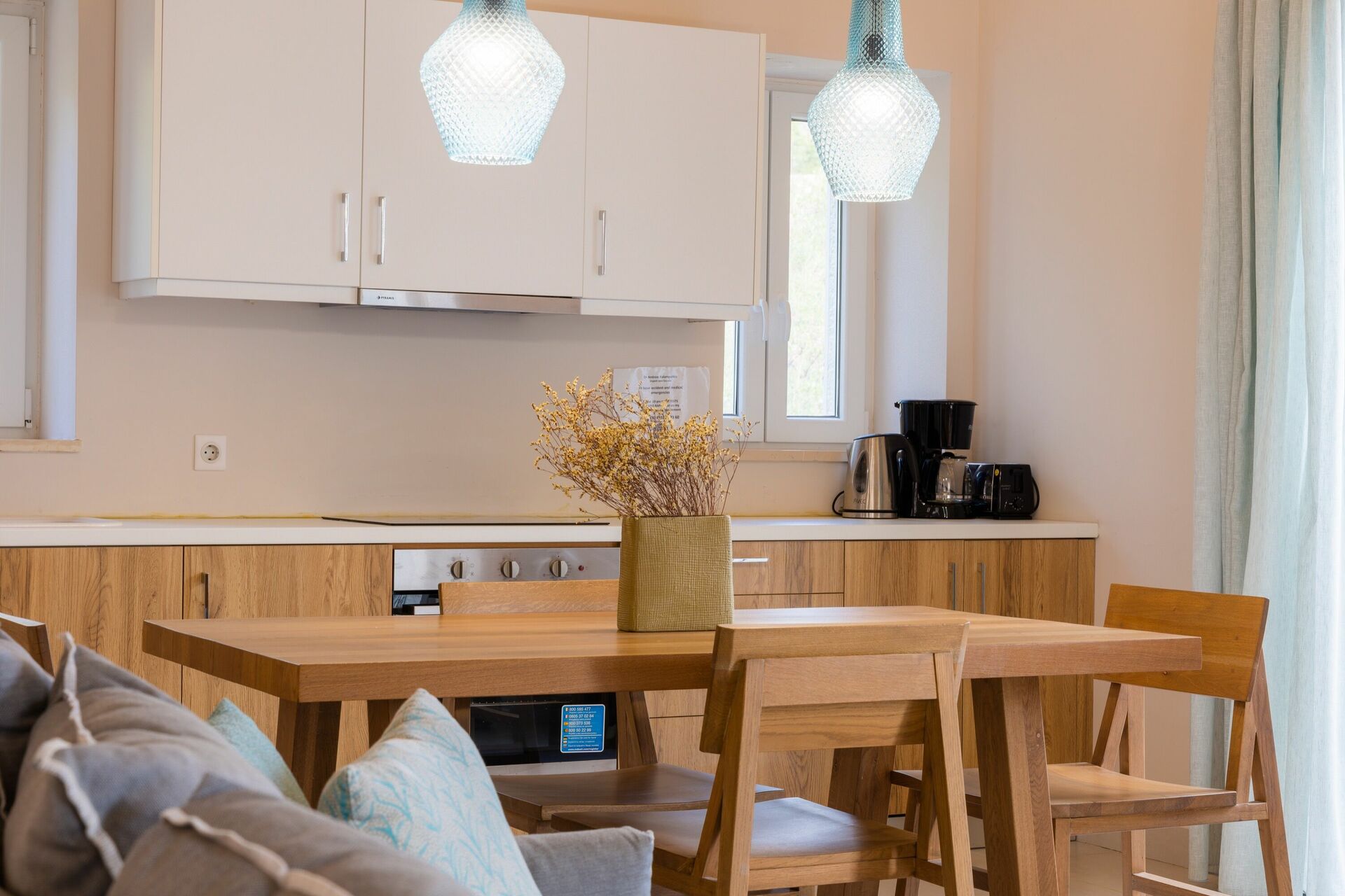 Honestly, this villa is absolutely outstanding... so much so that my husband and I wished we could move in permanently and came home wishing our own decor was as chic and tasteful as that on show at Villa Yaisemi! Every amenity has been thoughtfully provided and the owner and cleaner could not have been more helpful and accommodating when we asked for help with the television and for a sponge to wipe surfaces (no need to wash up as they have a great dishwasher). It's perfectly situated to provide great views over the bay and walking distance to the local tavernas for dinner too, but far enough to ensure peace and quiet. We can't rate it highly enough and will most definitely visit again, thank you!There are three tavernas in Agni Bay and all are lovely. Toula's is the most trendy but Nikolas Taverna is the most reasonably priced. There is also a very lovely beach club bar/restaurant place called Cristal in the next bay that can be reached via short, 10 minute walk around the headland from the right hand side of Agni Bay.