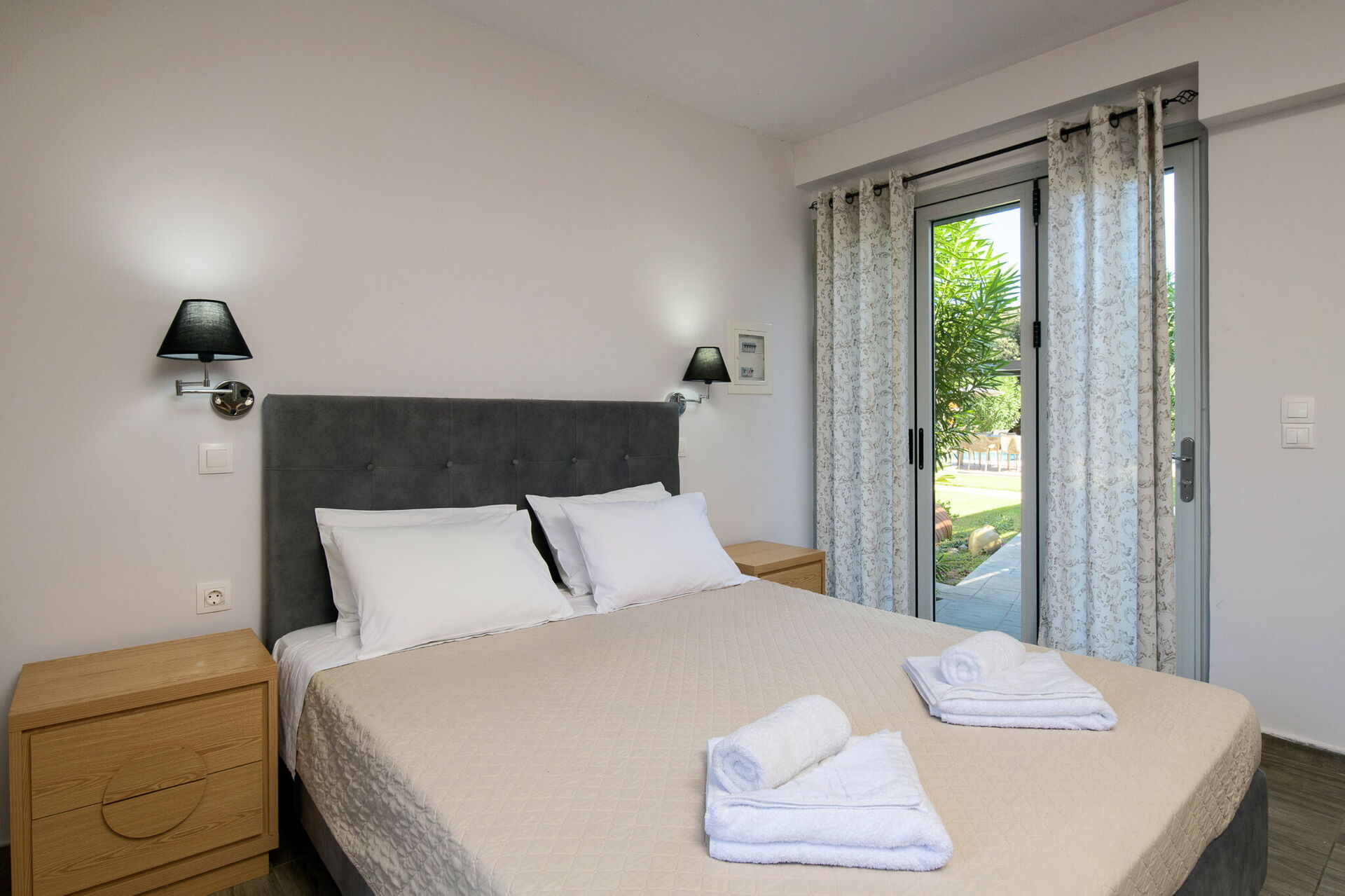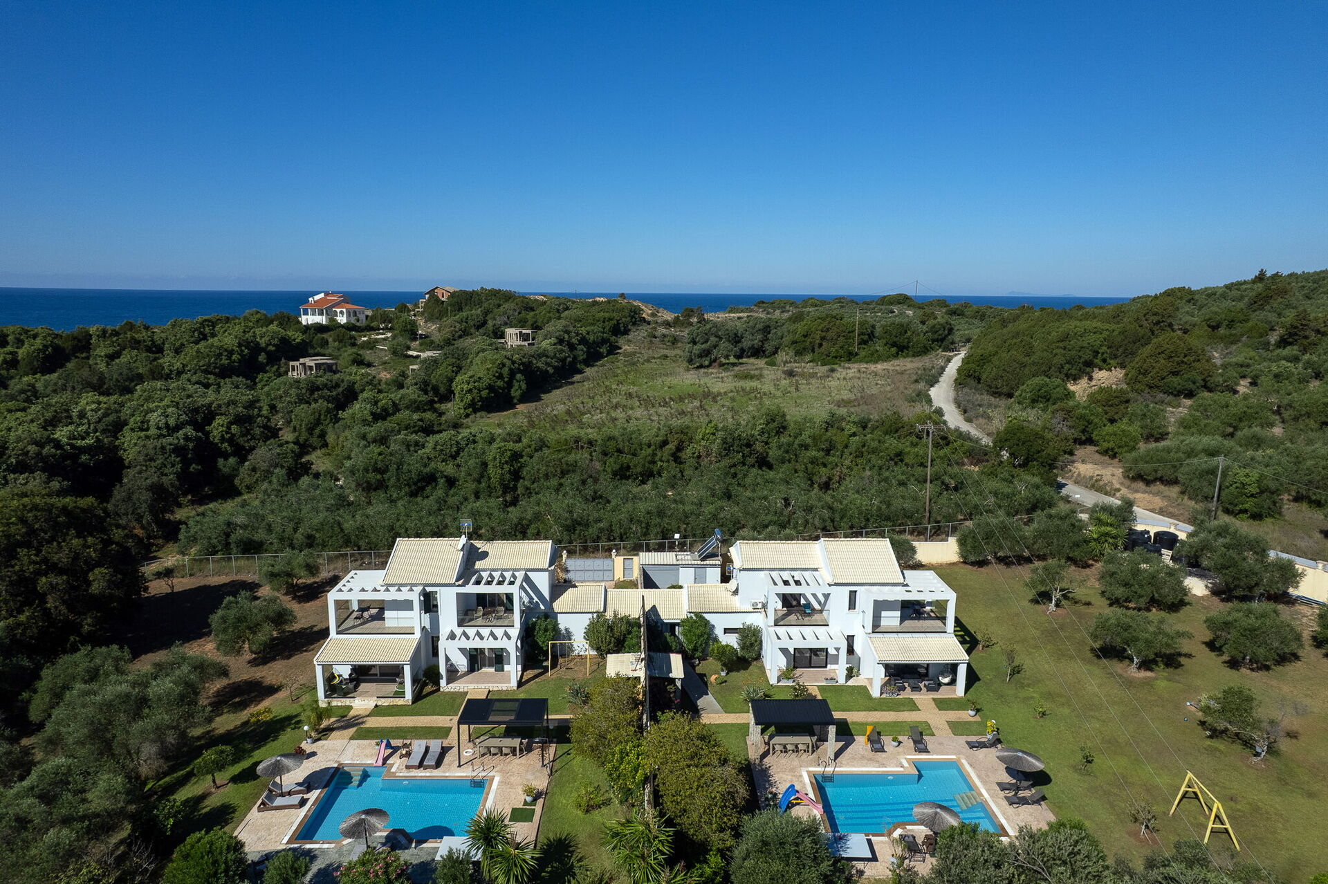 Ejendommen ligger tæt på havet og den kendte Chalikounas-strand – en gylden sandstribe, der adskiller Korission-lagunen fra havet, og som er et populært sted blandt surfere og kitesurfere på grund af de gode vindforhold.