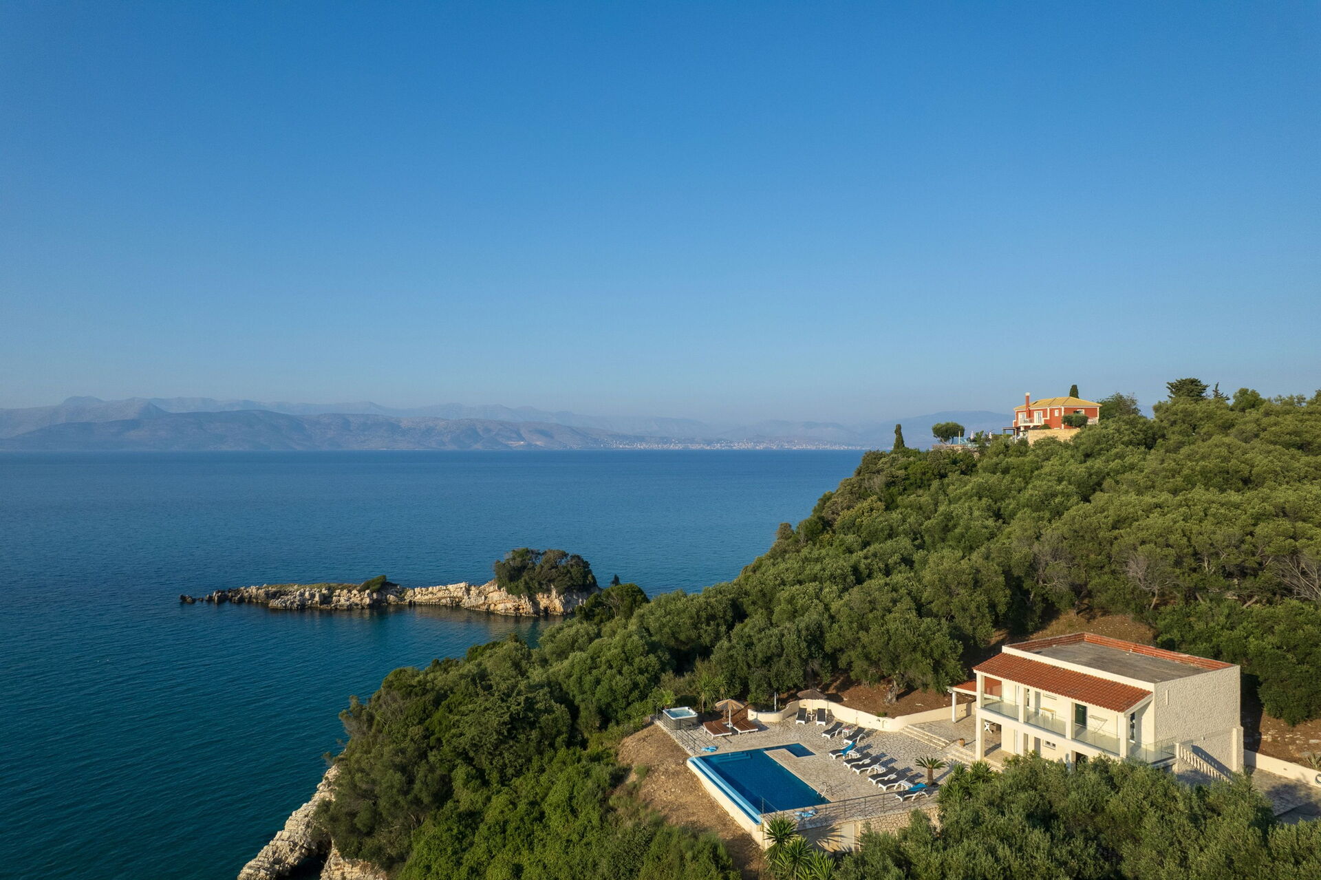 Villa SeaSun er et unikt sommerhus på den nordøstlige kyst af Korfu i Grækenland. Feriehuset har 6 soveværelser, et stilfuldt interiør og fantastiske udendørs arealer med privat pool og fantastisk havudsigt.