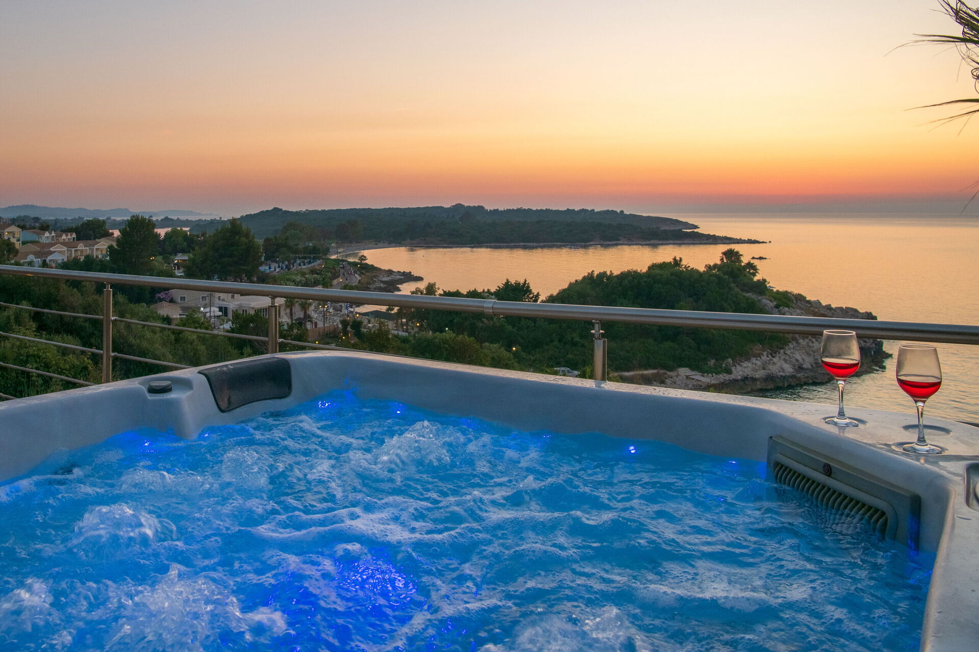 The first impressions of the Villa are the stunning views over the Ionian Sea to Albania and also over the lagoon towards north west Corfu. The sunsets are amazing.