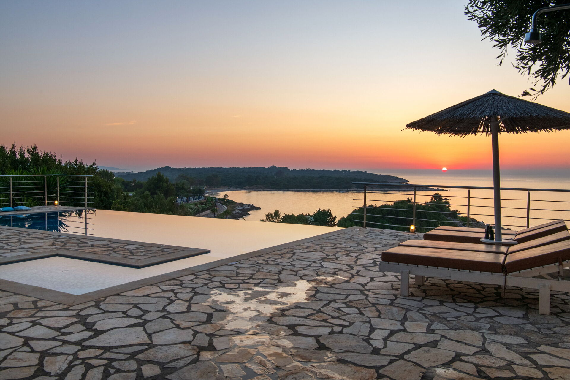 Our party of1 10 7 adults and 3 children 8 to14 spent 10 days at this beautiful Villa.With incredible Views across the sea and to Albania.The outdoor was perfect for our BBQ’s with plenty of seating undercover.The infinity pool and Jacuzi were just a magnet for everyone.We could have done with some more sun shades though 3 was just not enough for 10 people..Situated just minutes walk away from a mini market and supermarket as well as a couple of Tavernas.The lovely beach was also just a short walk away.We had a great stay.A couple of suggestions.Another bin for recycling and some bin liners would be helpful.Also an information book with emergency telephone numbers and local information ie Taxi phone numbers would b also have been helpful