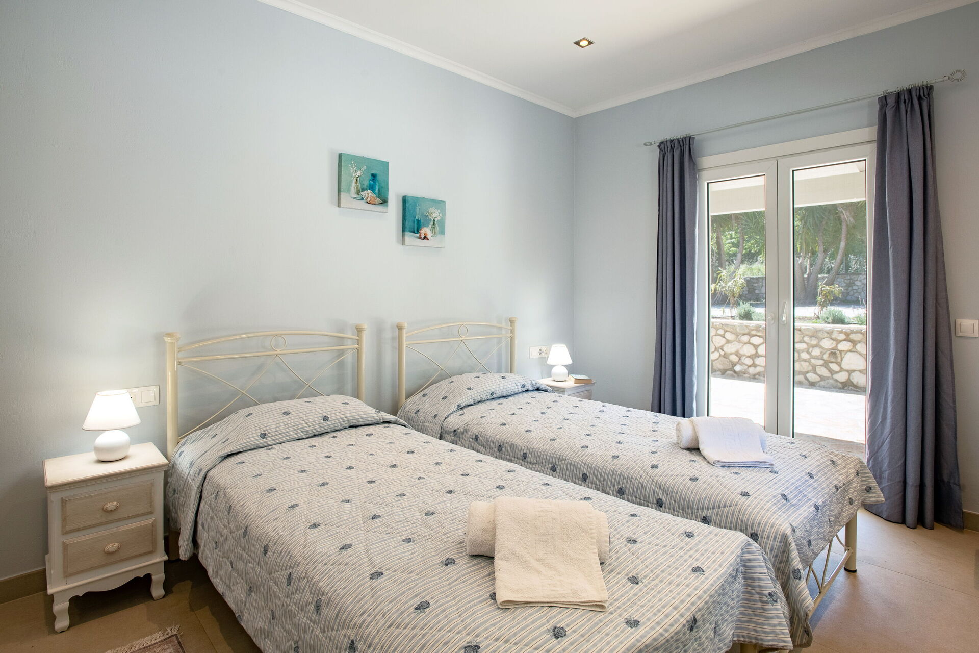 A lovely spacious, luxury villa about 10 minutes walk from a beach and restaurant. Very clean and well maintained inside and out. Nicely set back from the road with just two other villas. Very secluded garden and amazing pool. Quiet. About twenty minutes walk from Kassiopi with its good selection of shops and restaurants. Eleni was hugely helpful and an excellent housekeeper for the property. We saw her several times, but she was in no way intrusive.