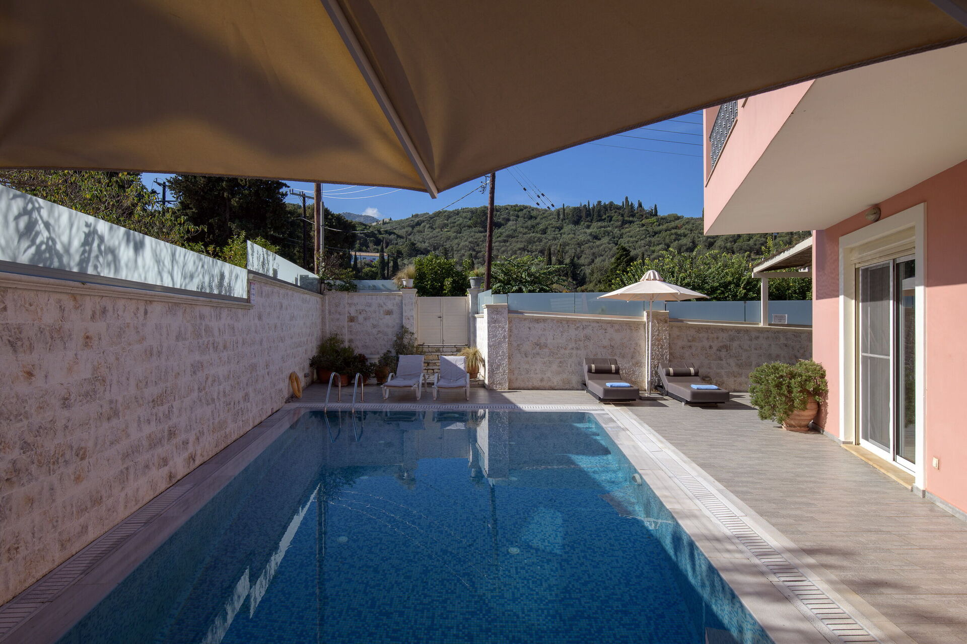 Her får du en privat pool og 7 soveværelser til en perfekt ferie ved havet. Samtidig har du også Kassiopi med butikker og tavernaer i gåafstand, samt stranden.