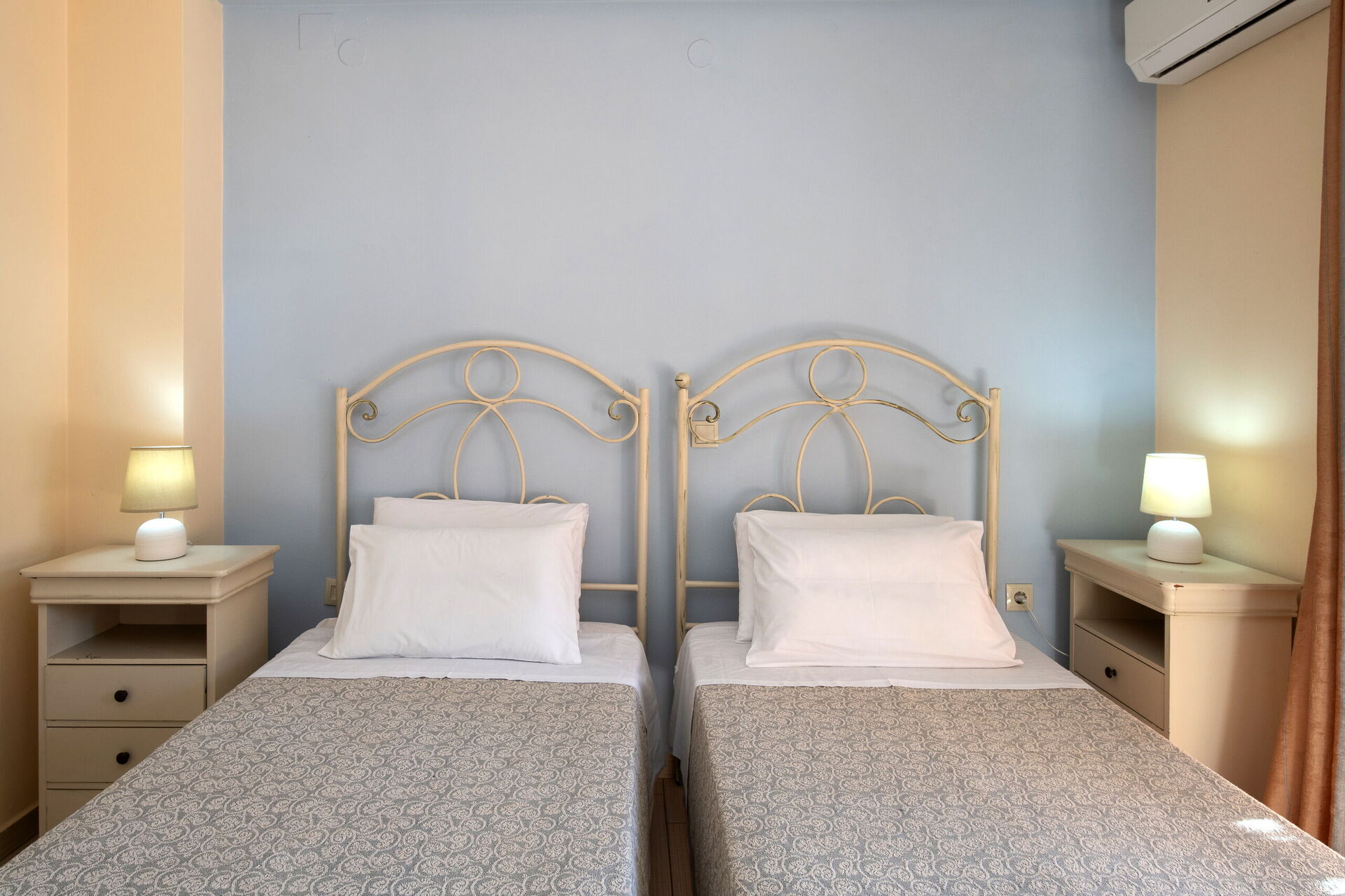 Afstande: havet 400 meter; Kassiopi (barer, restauranter og butikker af alle slags) få titals meter; Acharavi 12 km; Korfu by (lufthavn) 36 km; Palaiokastritsa 38 km.