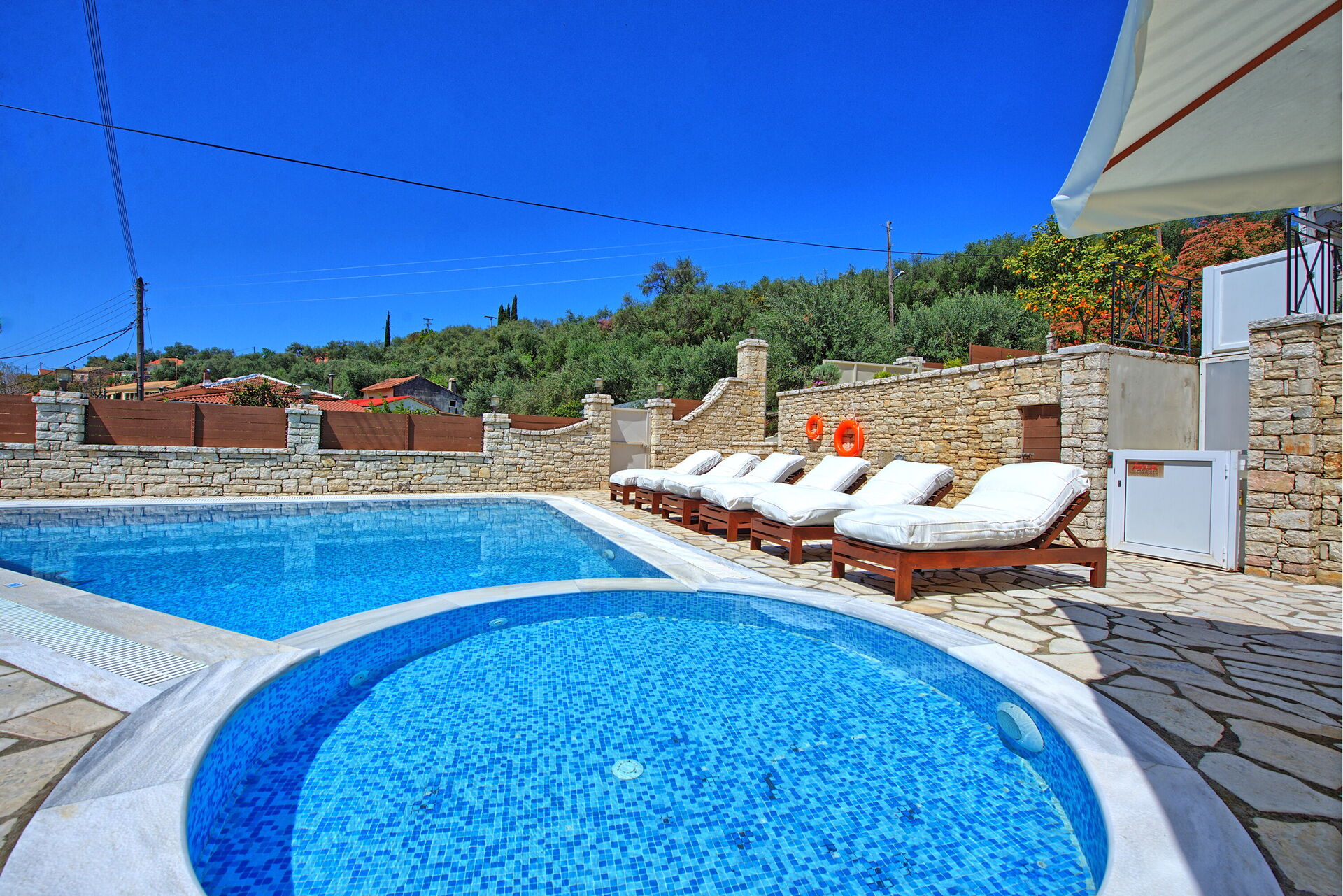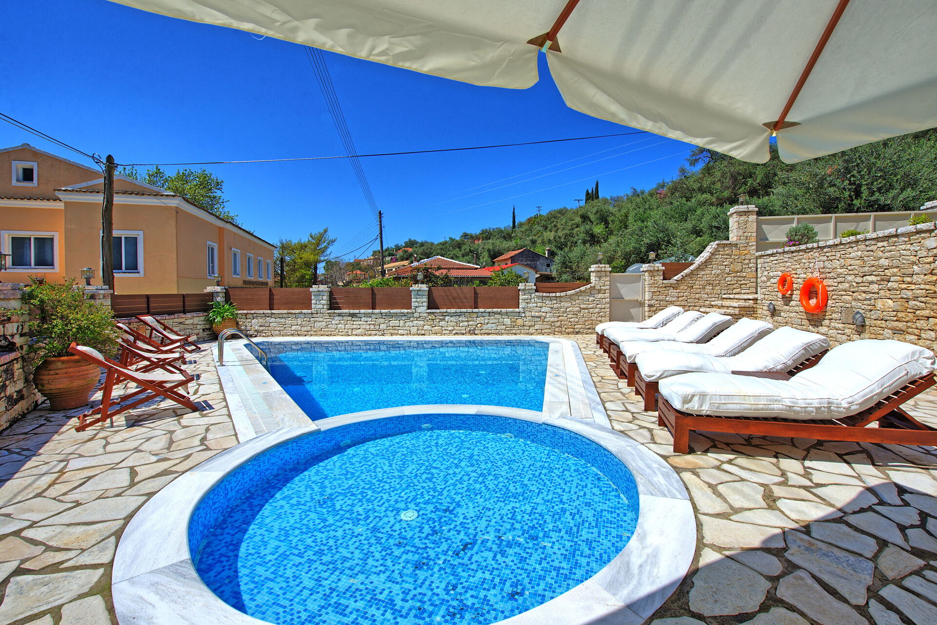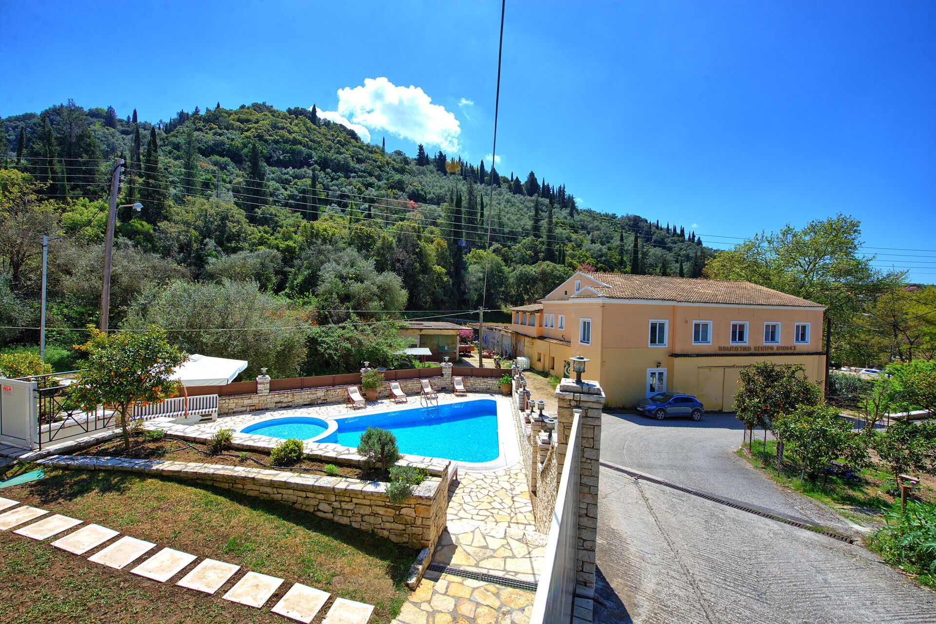 This is a spacious and comfortable house, with suitable equipment for a family, a wonderful and inviting swimming pool and a great location in the heart of a village in the mountains of Corfu. What we didn't like was the grass that was soaked in water even though it wasn't raining and the wifi didn't work most of the time.