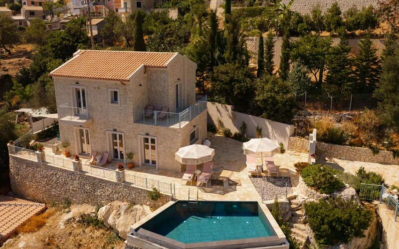 Villa Thea Mare Maistro er et helt nyt luksushus med privat pool, som ligger i kort afstand fra den populære turistby Palaiokastritsa på Korfus vestkyst.