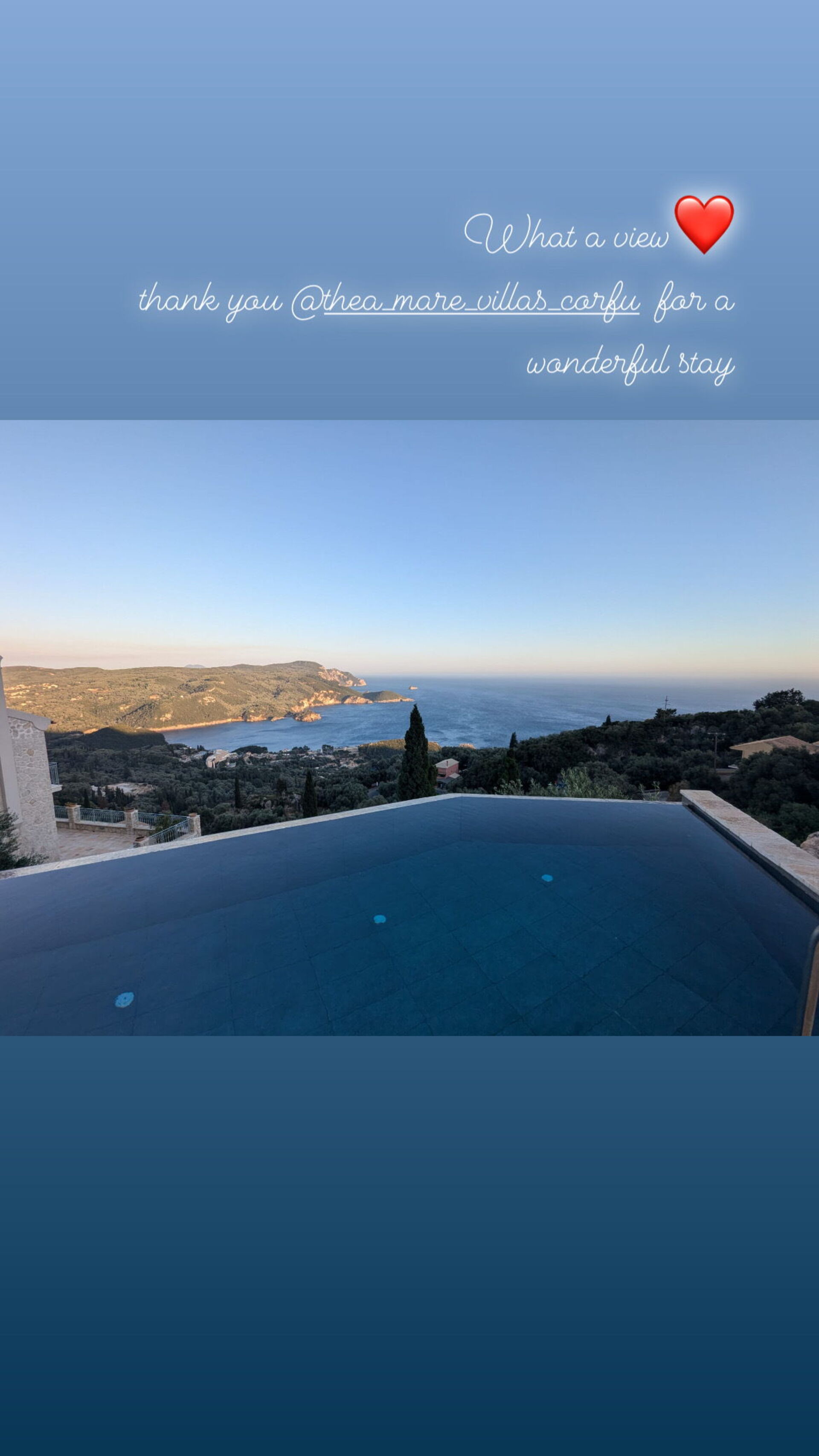 The villa is incredible nothing beats the view from that infinity pool. The property manager Adonis was a legend and he helped us with anything we wanted including booking dinners and a boat tour.