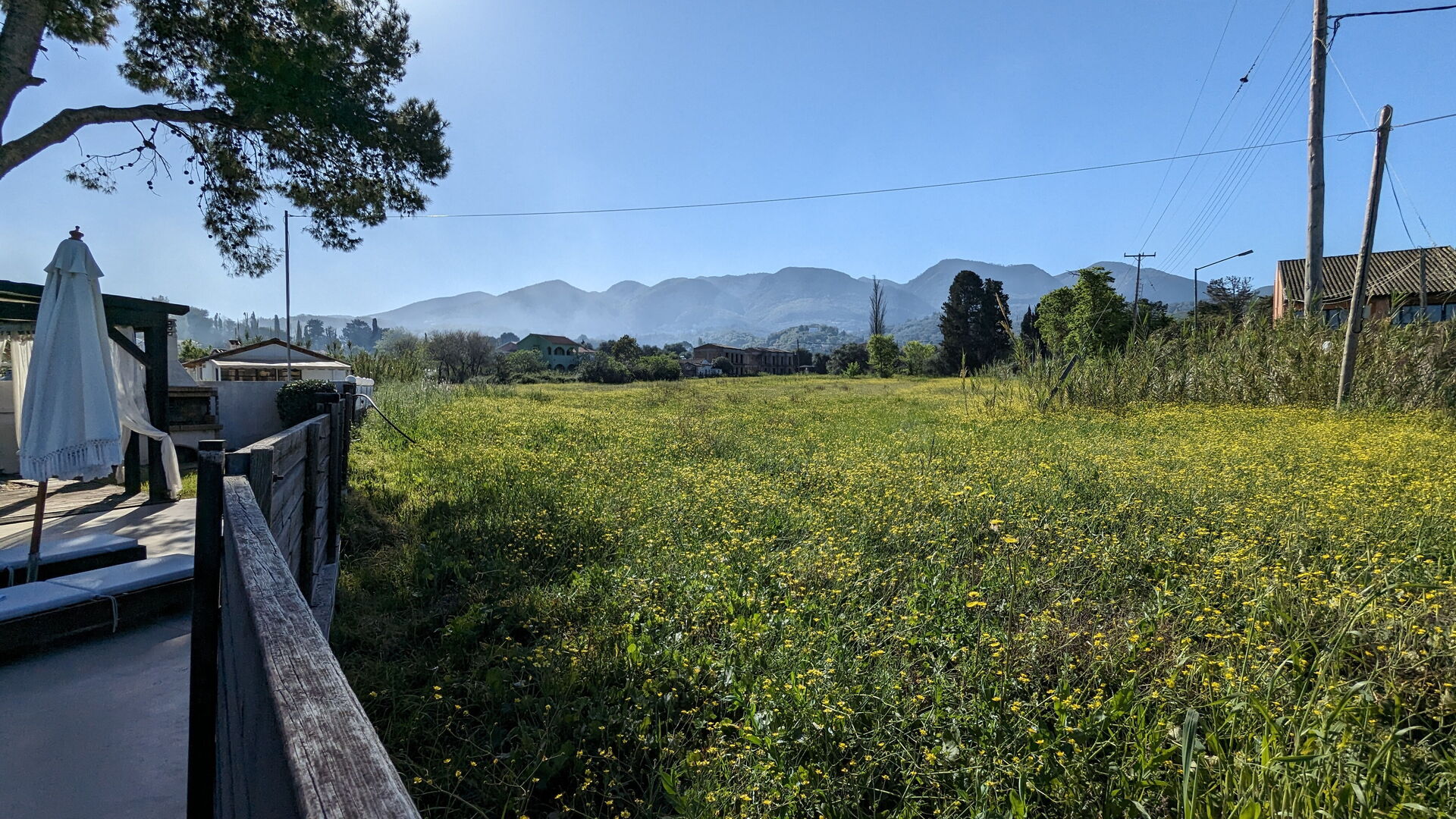 Beautiful view over the nearby mountain range. Easy walking distance to the beach, even for families with children. Stunning garden to relax in. The wooden terrace needs rebuilding (Owner said this would happen in the next couple of months). We loved being here with our children and would come back. Not if there will be a pool in the future though. The beach and other pool options are in such close vicinity that we would not want to have extra water usage nor the danger of a pool for kids in the garden.