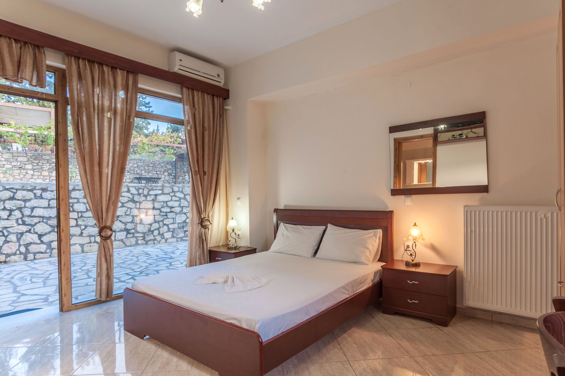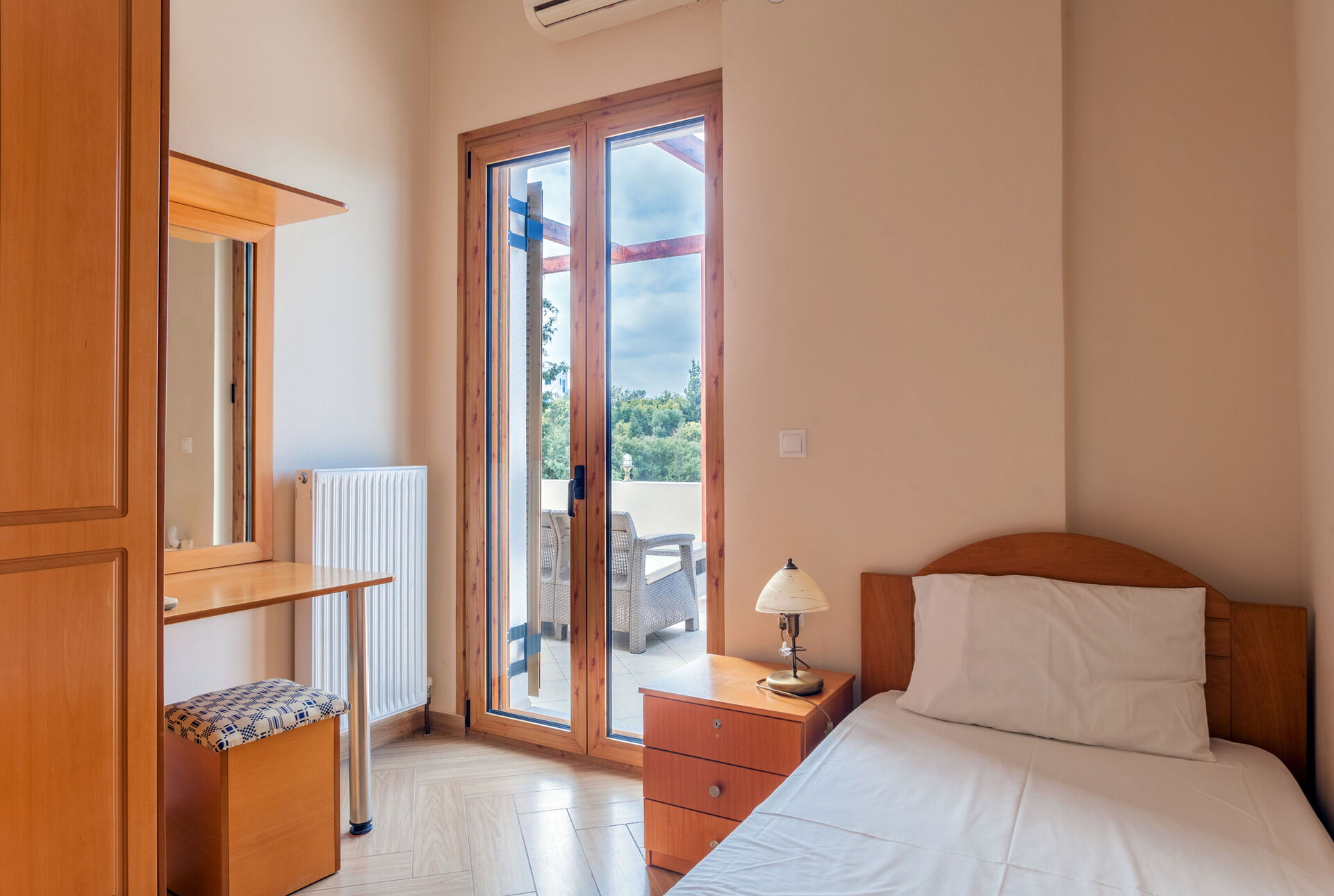 1 dobbeltværelse (aircondition) med adgang til panoramaterrasse, 1 enkeltværelse (aircondition) med adgang til panoramaterrasse, badeværelse med bruser, 1 dobbeltværelse (aircondition) med balkon med panoramaudsigt