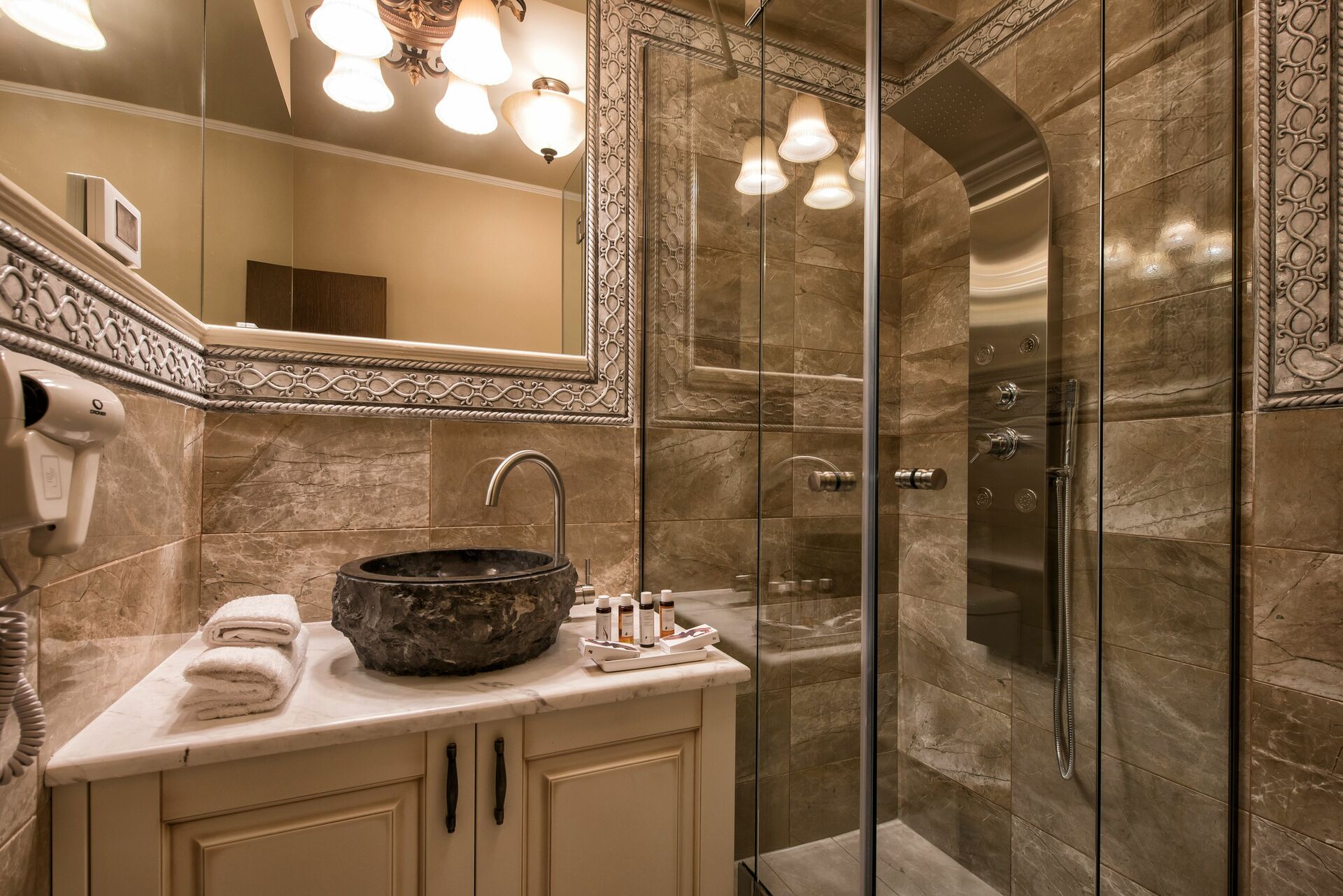 Dobbeltværelse, 2 soveværelser med hver 2 enkeltsenge og eget badeværelse med bruser, vaskerum med vaskemaskine og tørretumbler.