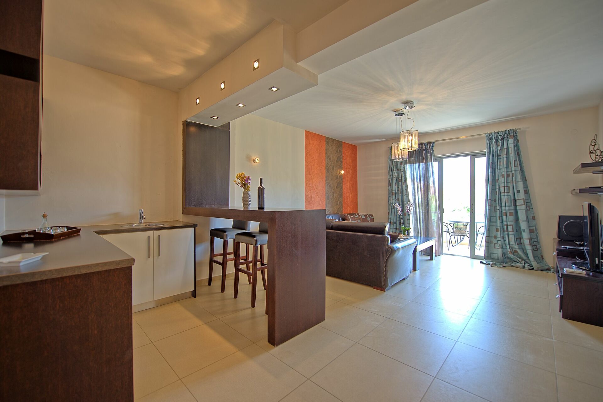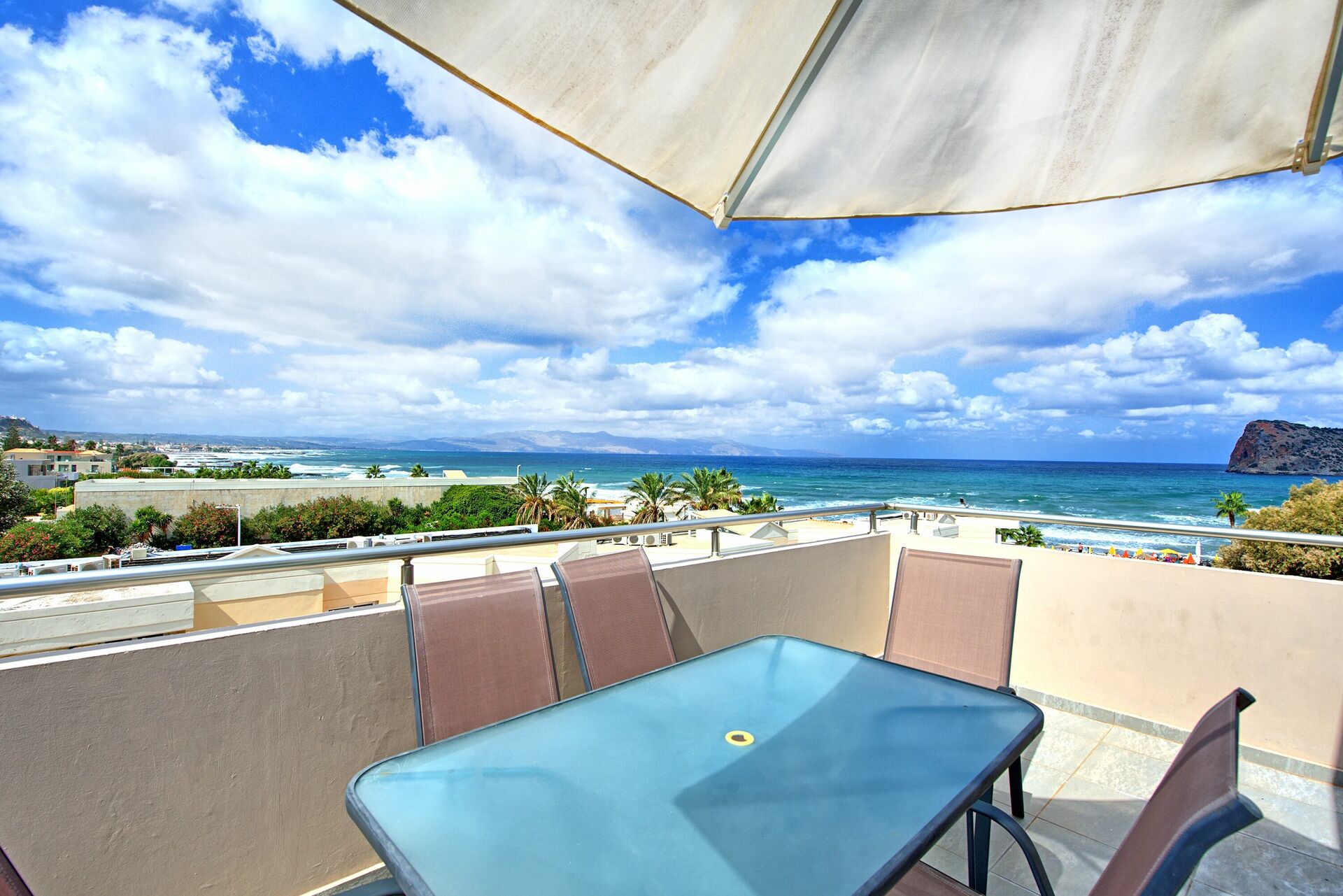 Afstande: hav 100 meter, Agia Marina (butikker af enhver art) 100 meter, Cabana Mare Beach Club 300 meter, Chania 11 km, lufthavn 30 km væk.