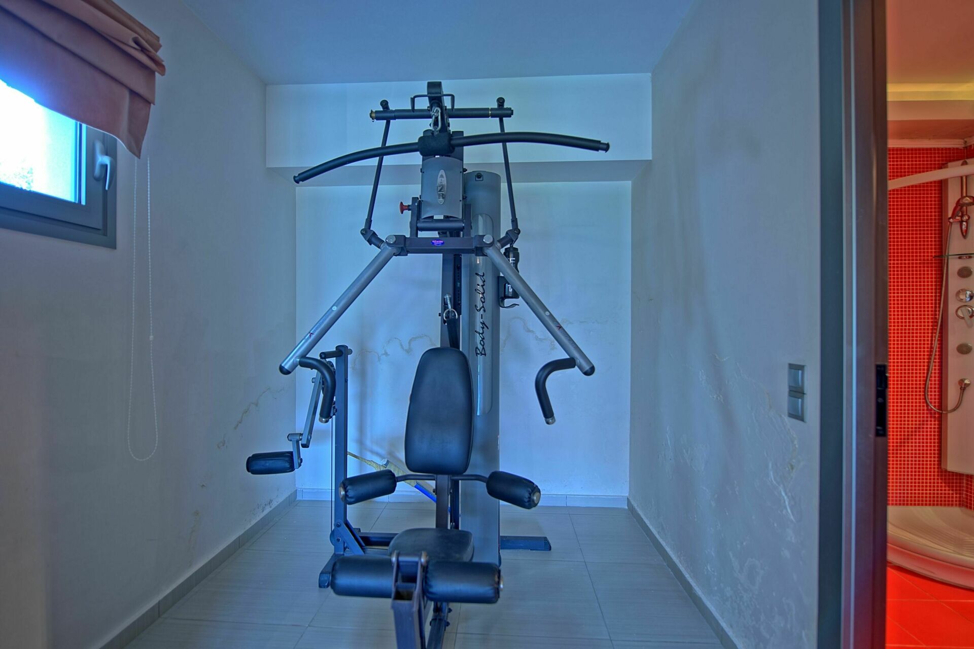 Stueetage: stue (satellit -tv) og gymhjørne (løbebånd, vægtmaskine); soveværelse med dobbeltseng; badeværelse med bruser (uden vindue); værelse med vaskemaskine.