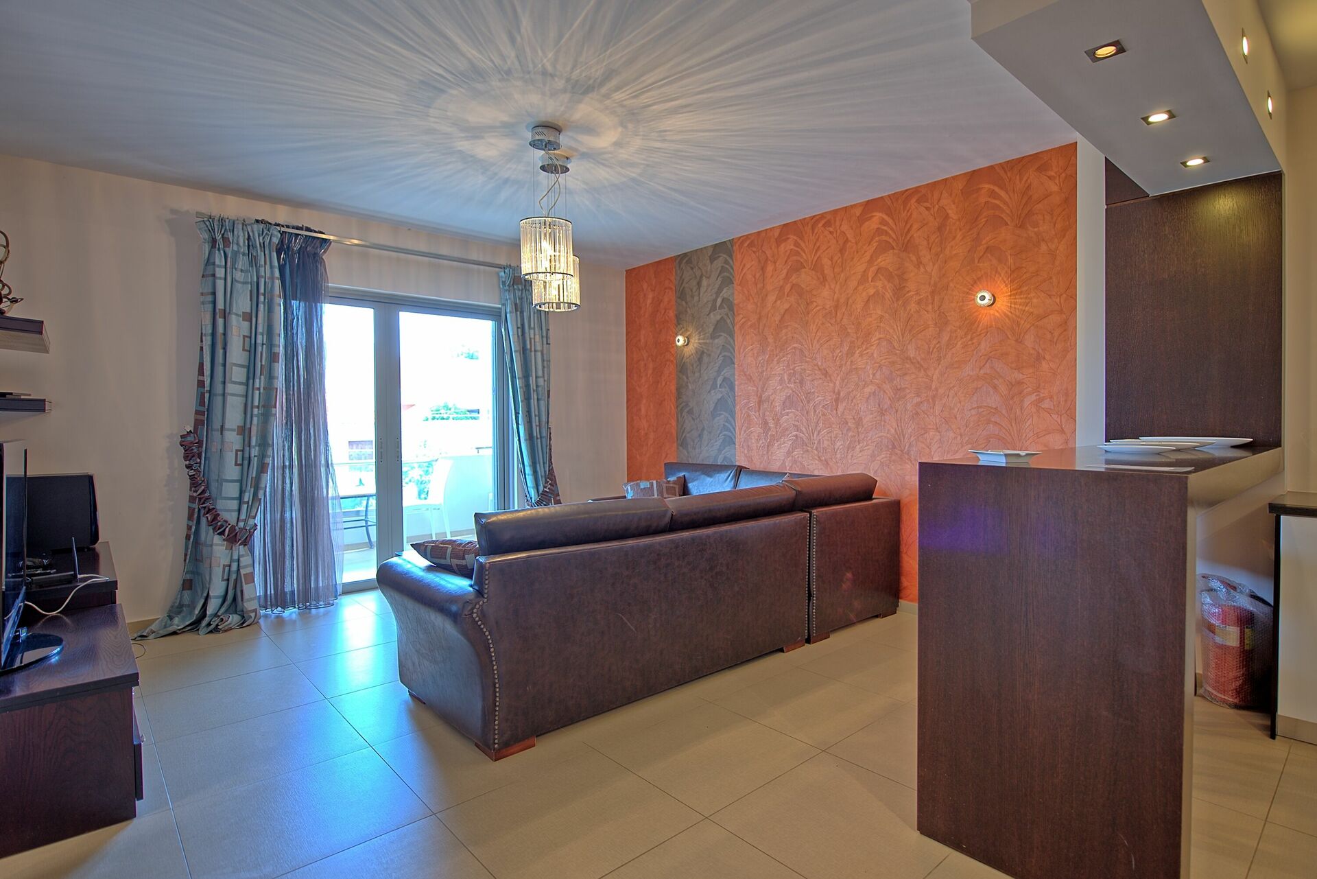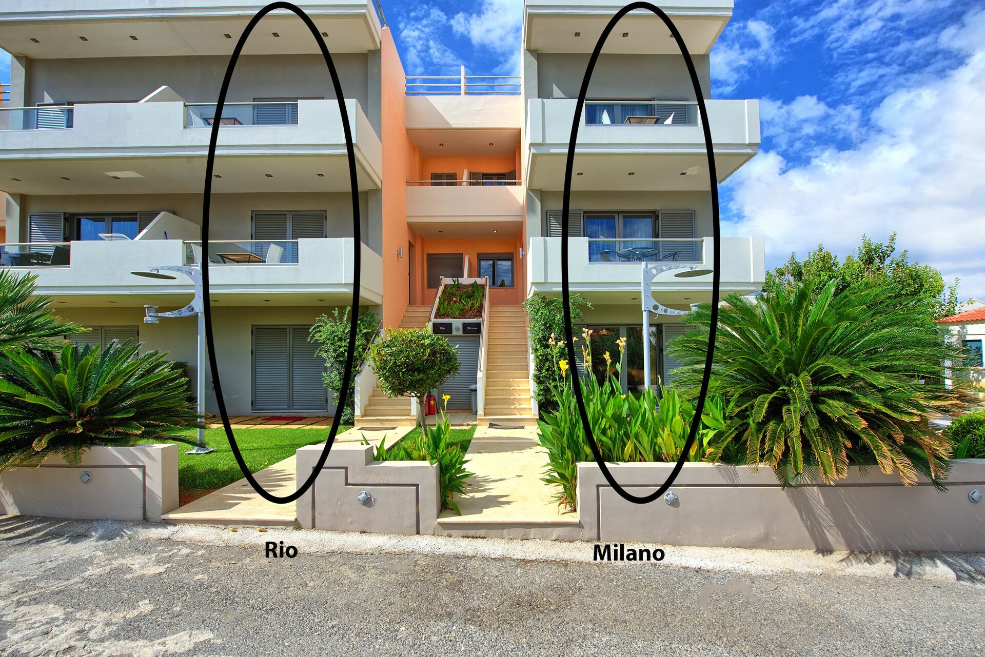 Afstande: hav 100 meter, Agia Marina (butikker af enhver art) 100 meter, Cabana Mare Beach Club 300 meter, Chania 11 km, lufthavn 30 km væk.