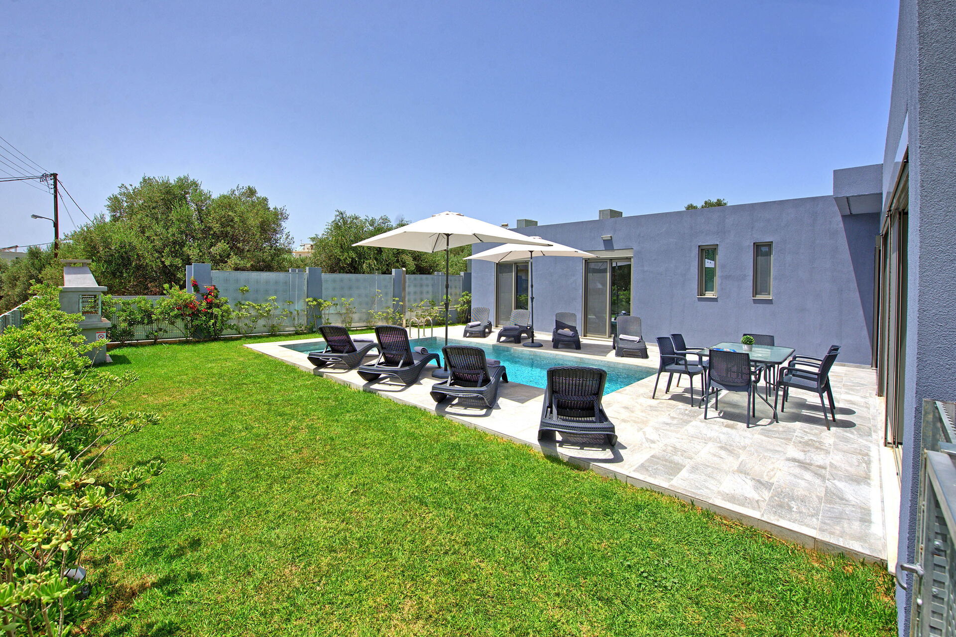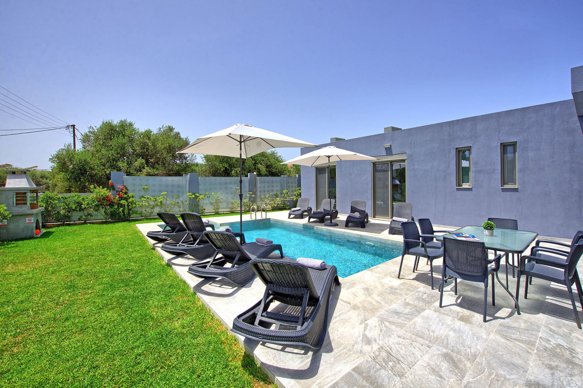 Villa Ampela er et nyt, moderne feriehus med privat have og privat swimmingpool, kun 600 meter fra Agia Marina på Kretas nordkyst i Grækenland.