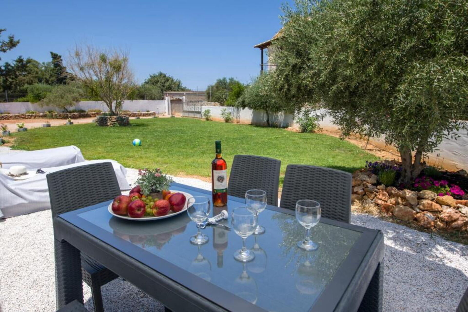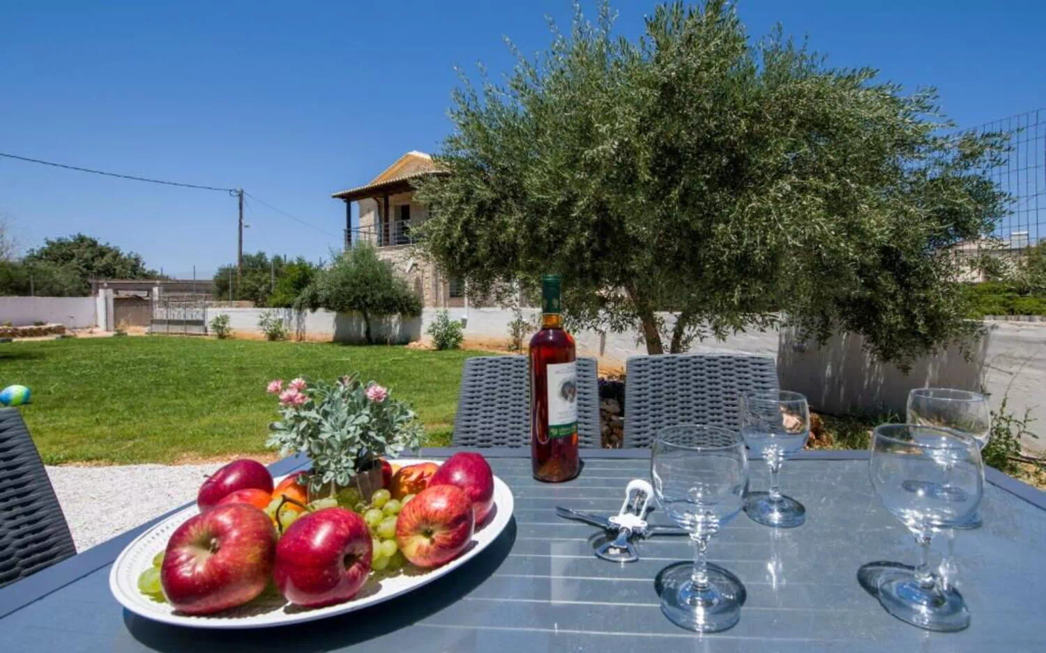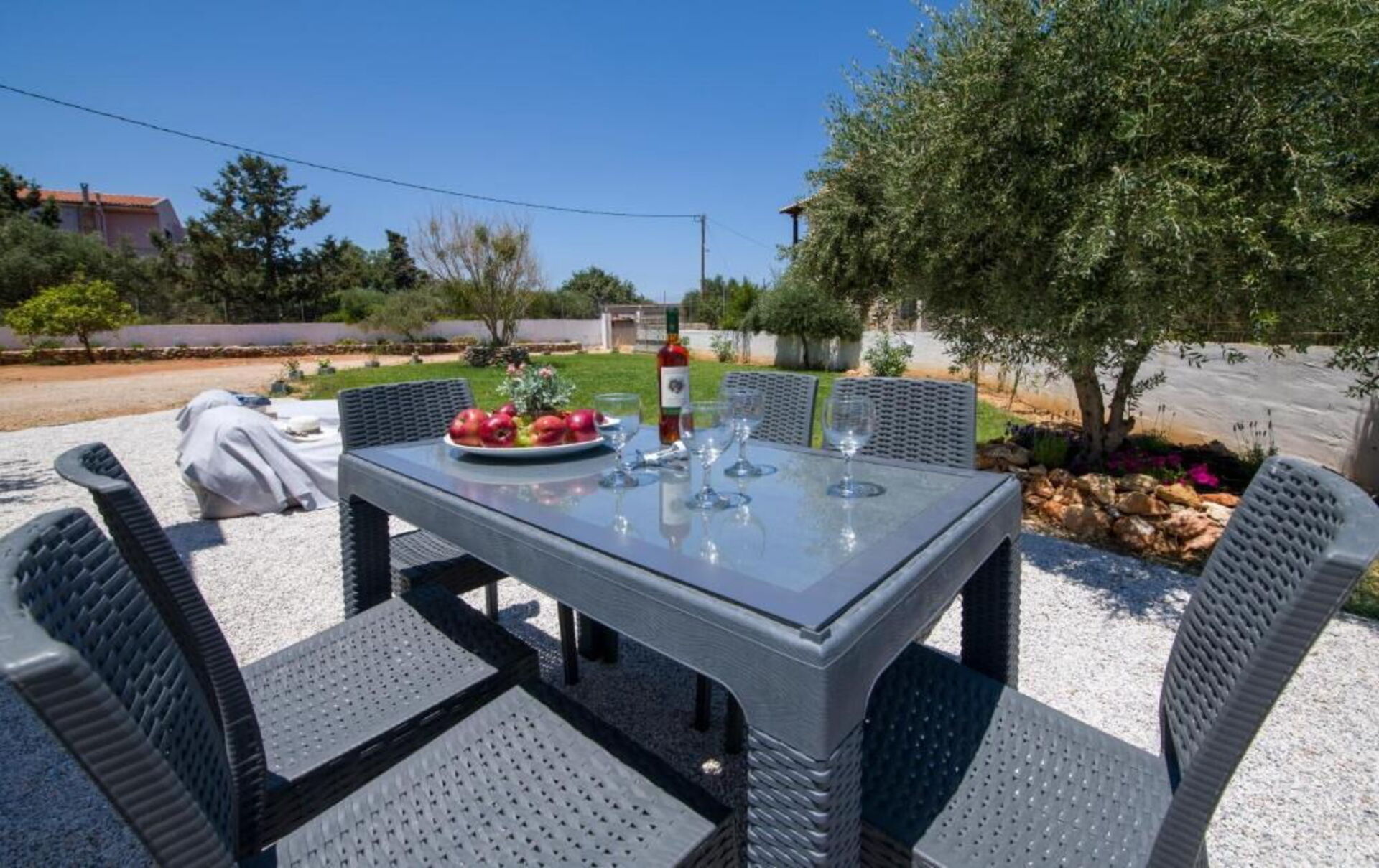 Ejendommen ligger i et roligt boligområde kun 5 km fra havet og blot 12 km fra det historiske centrum i den smukke by Chania. Lufthavnen ligger kun 3 km væk.