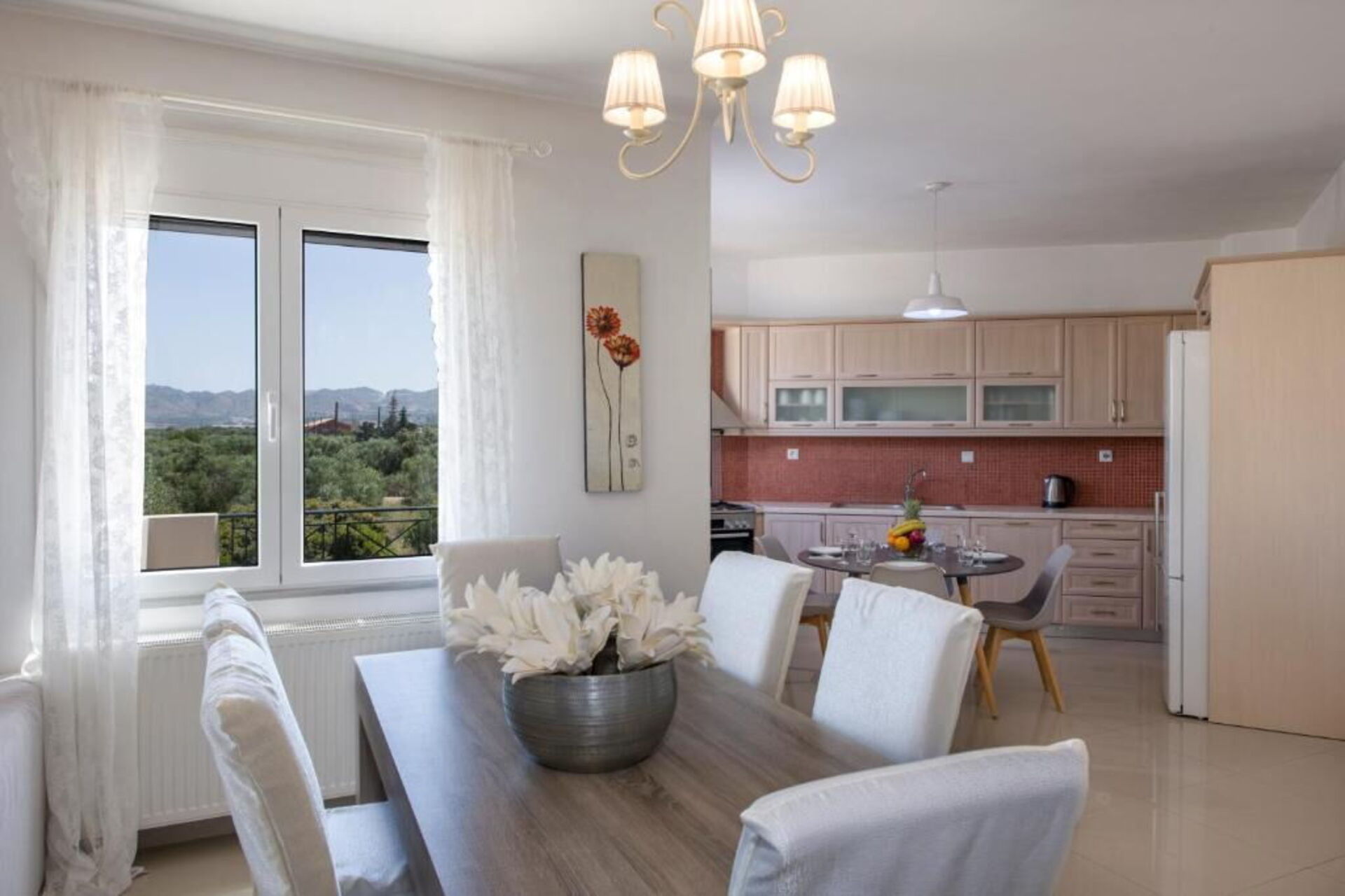 Afstande: Kounoupidiana (butikker af alle slags) 5 km, Kalatas (strand) 5 km, Chania lufthavn 3 km, Stavros (strand) 8 km, Seitan Limania (strand) 10 km, Chania (butikker, gammel venetiansk havn) 12 km, Souda (havn) 14 km, Rethymno 67 km.