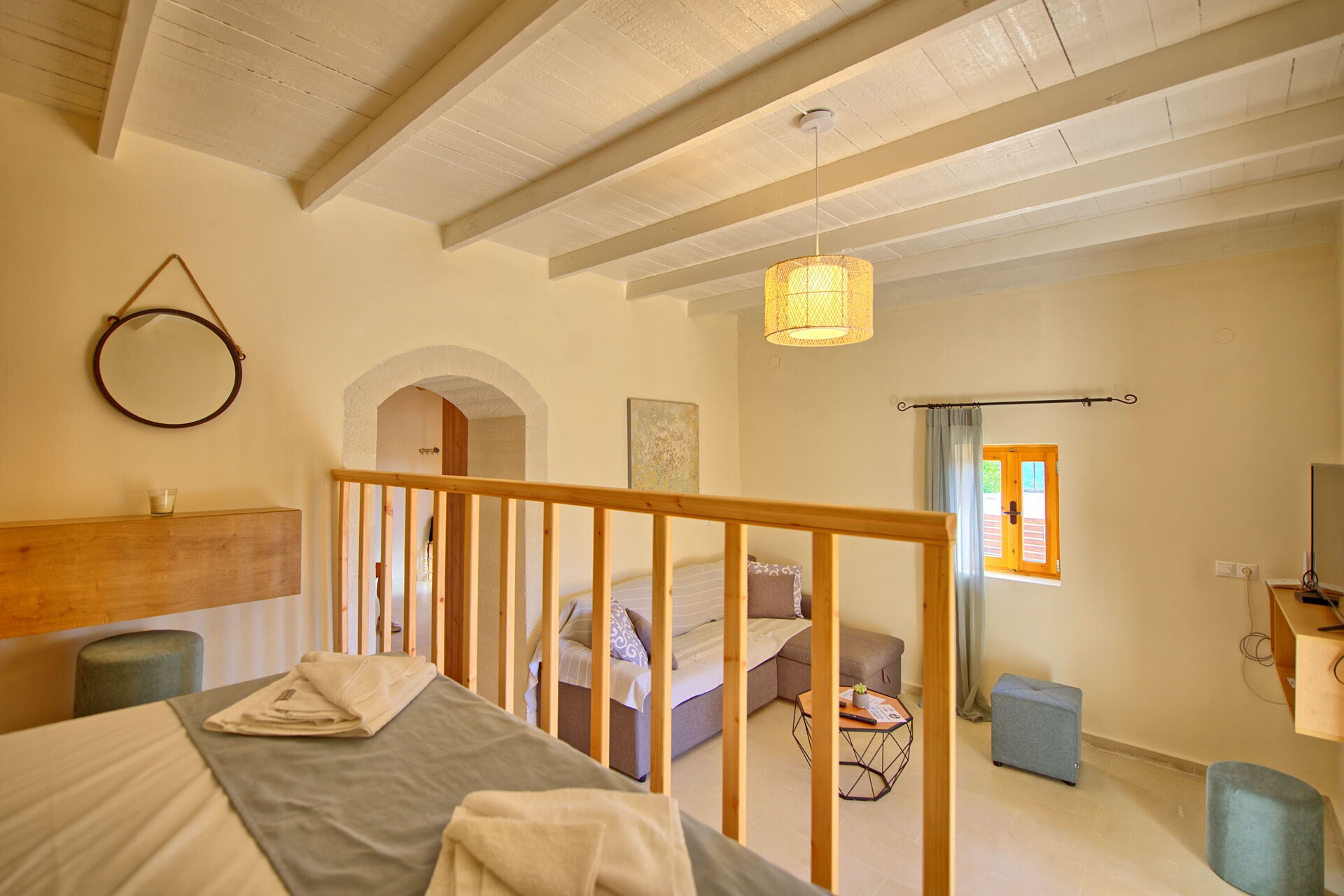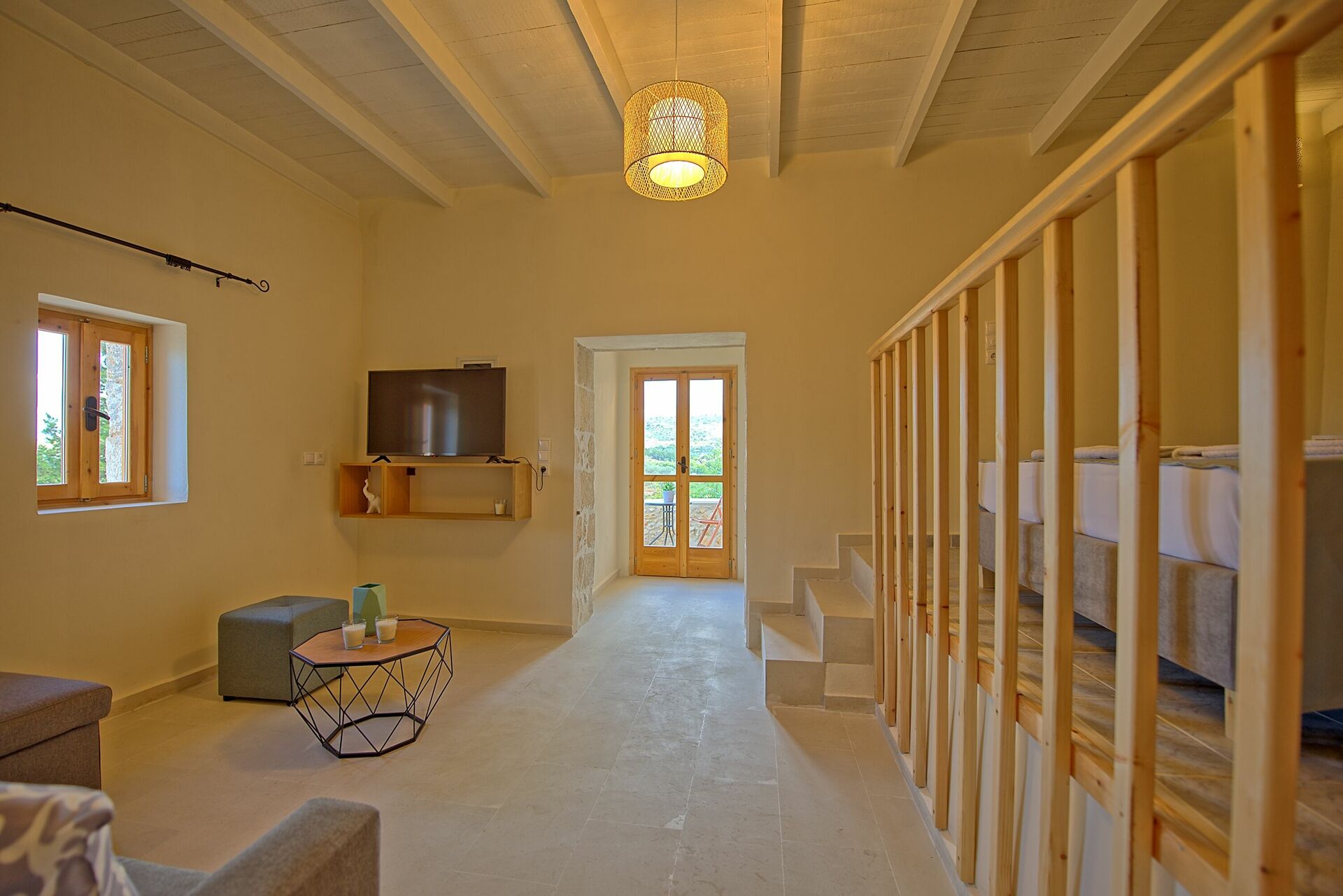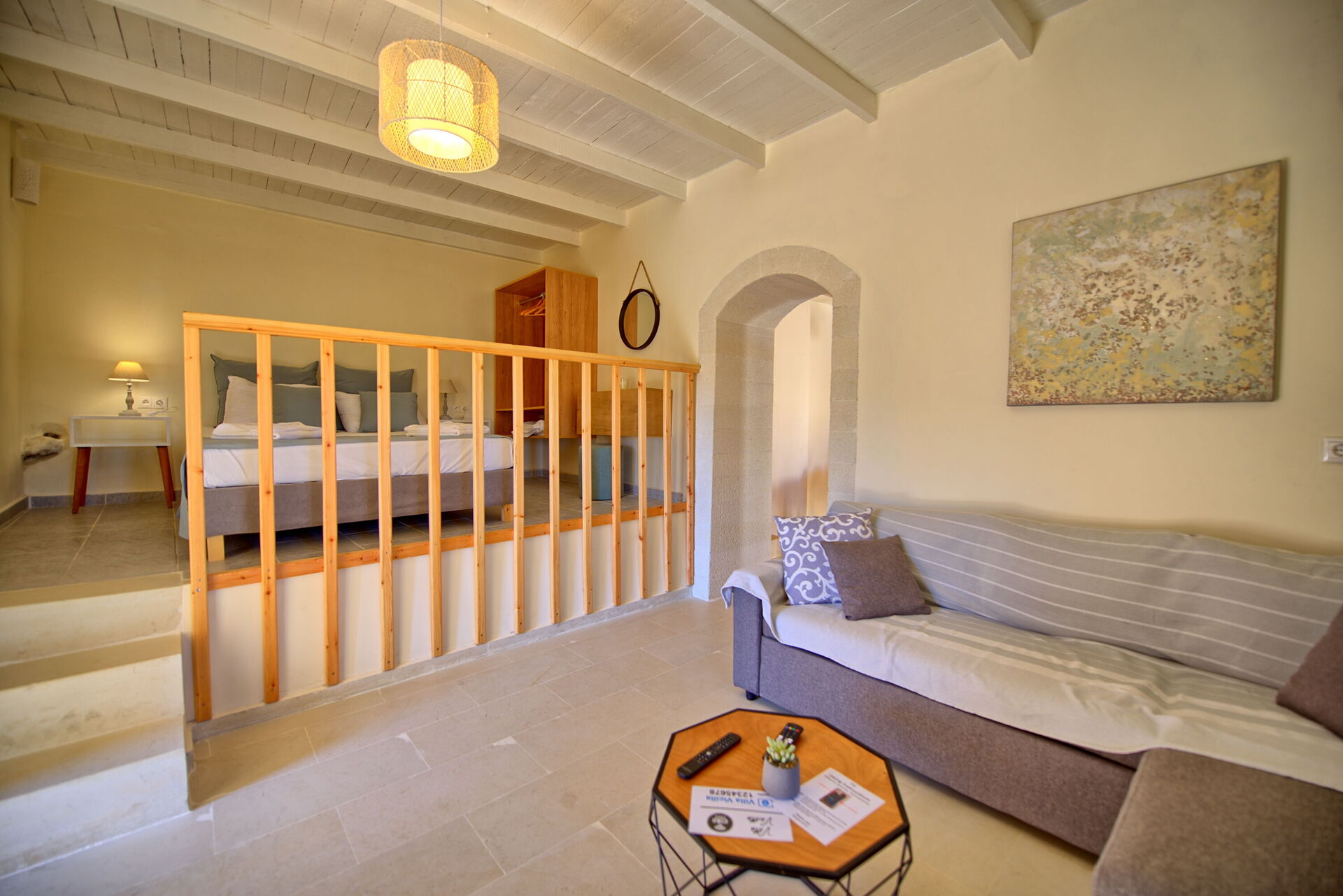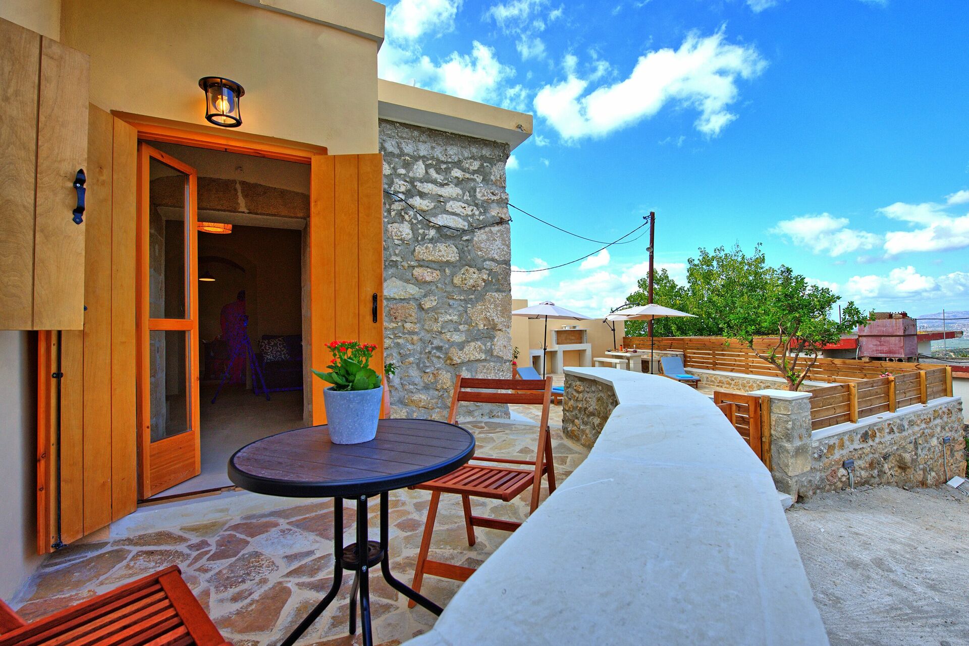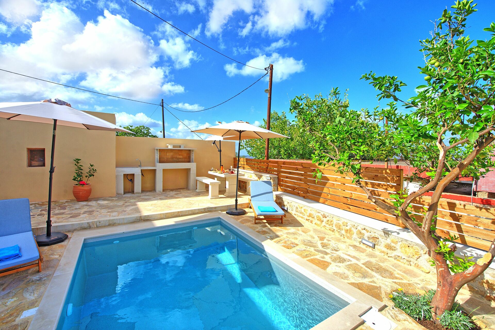 Feriehuset blev fuldstændig renoveret i oktober 2021 og består af et soveværelse med dobbeltseng og et værelse, der åbner ud til stuen med en dobbeltseng. I det udendørs område finder du en privat charmerende pool, perfekt til afkøling på varme sommerdage under solen på Kreta.