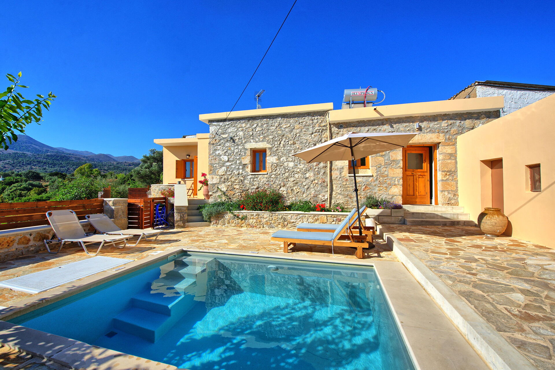 An amazing property in the hills of crete with stunning views. The owner was fantastic even when we locked ourselves out of the villa and helped us even though she was at her sisters wedding. Great English as well.