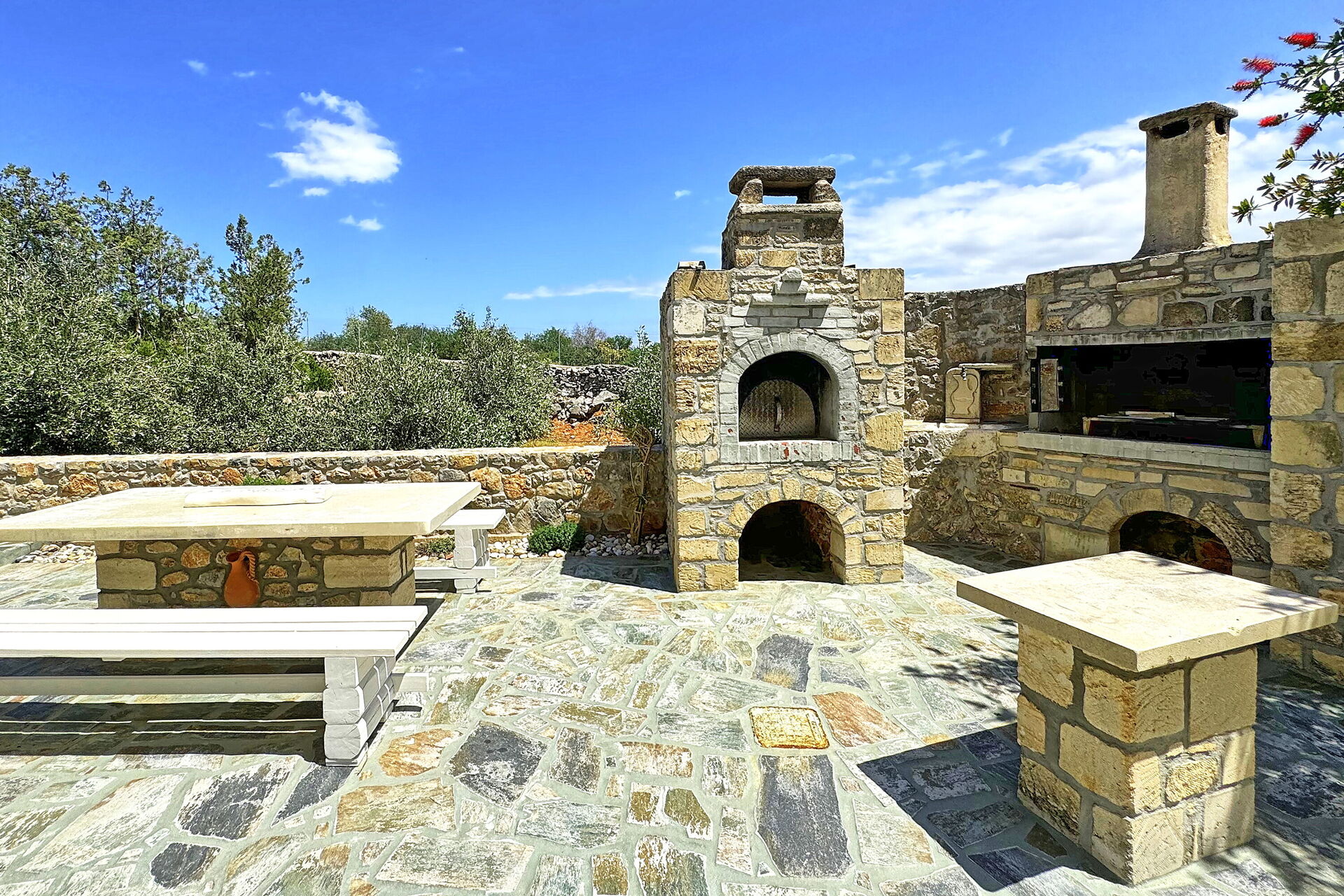 Gæsterne kan nyde tiden udendørs ved den smukke private pool; den elegante veranda ved siden af køkkenet; stenbordet blandt oliventræerne; og grillpladsen bag huset.