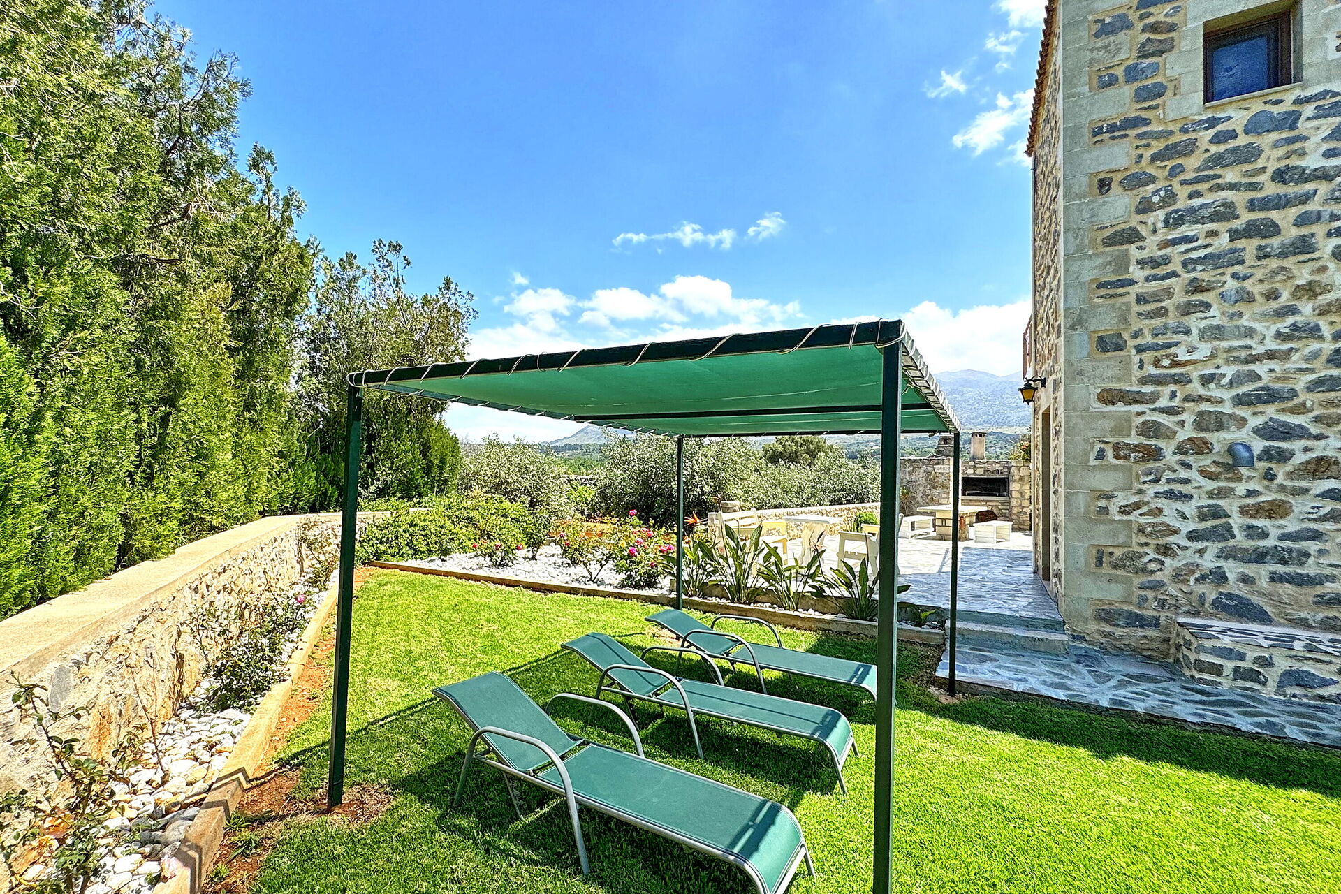 an absolutely charming place with a beautiful garden, olive grove, swimming pool, 2 terraces and a beautiful view of the mountains house was fully equipped and a welcome gift with local products and herbs was waiting for us we felt like we were in a fairy tale and our stay there will remain in our memories for a long time