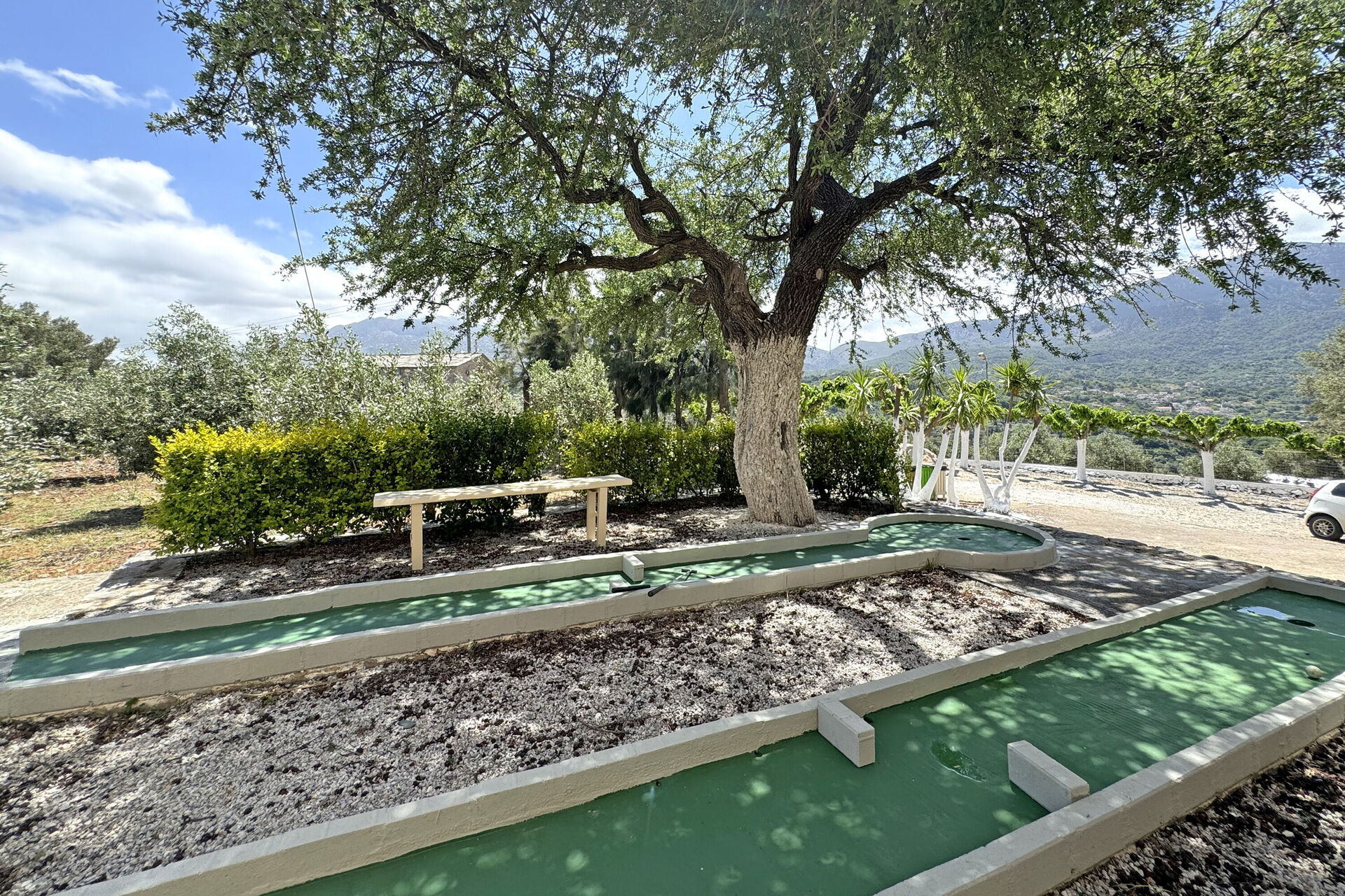 Den lille kirke Agios Ioannis Erimitis, som blev bygget af den nuværende ejers far, er også en del af ejendommen. Der er jævnt en to-hullers minigolfbane i skyggen af et stort træ bag huset.
