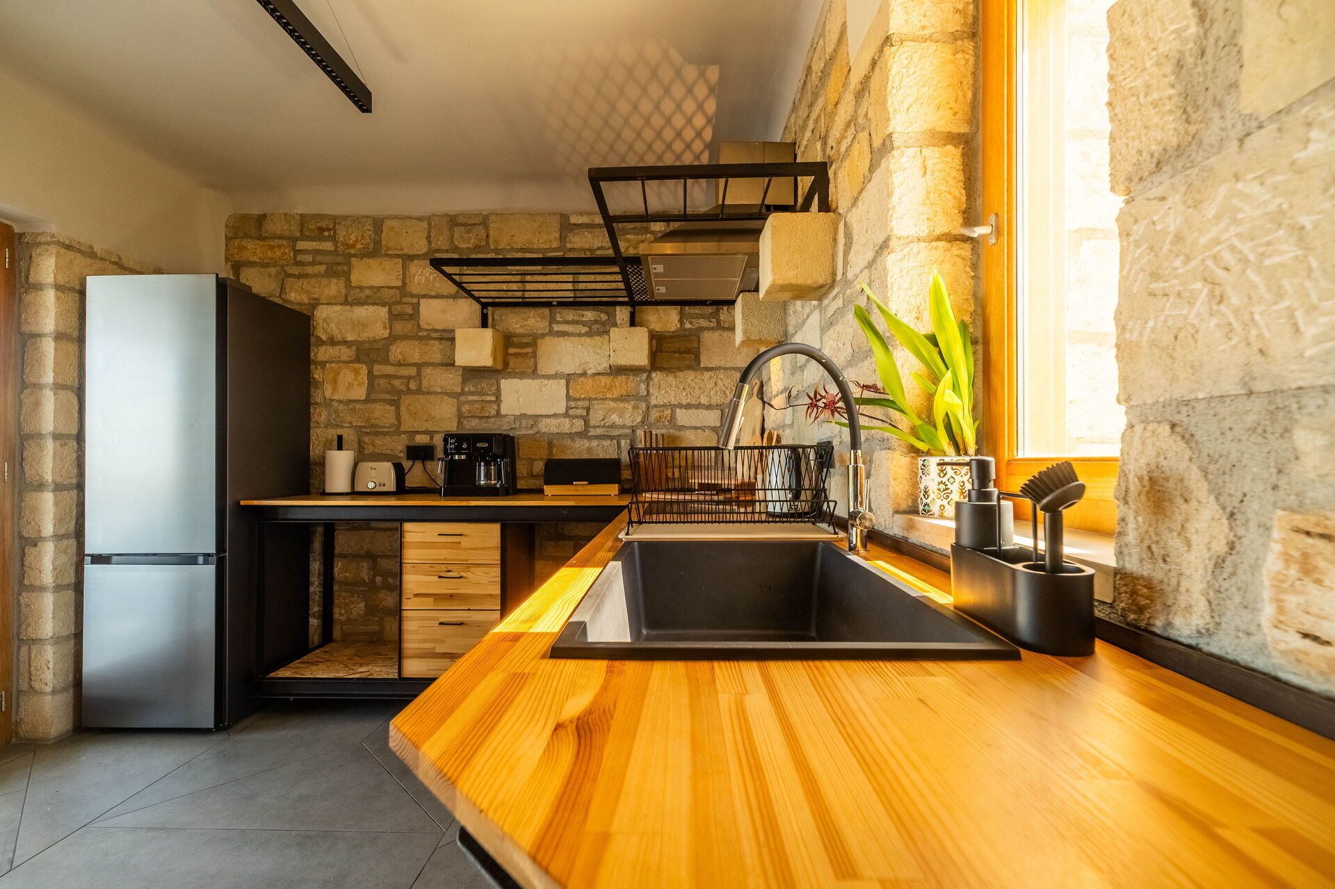 Feriehuset stod færdigt i 2025 og har en indbydende indretning med lyse rum og et rustikt interiør, der skaber en varm og hyggelig atmosfære. Villa Seiri er fordelt på to etager med 2 dobbeltværelser og en sovesofa i stuen, og kan dermed rumme op til 4/6 personer – perfekt til en ferie med familie eller venner.