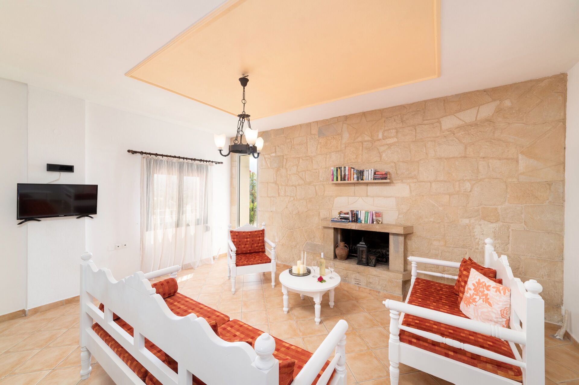 Feriehuset er perfekt til en ferie med familie eller venner. Indvendigt er sommerhuset over to etager og er udstyret med aircondition. Huset er smagfuldt og stilfuldt indrettet med brug af lokale sten og traditionelle elementer der er typiske for Kreta.