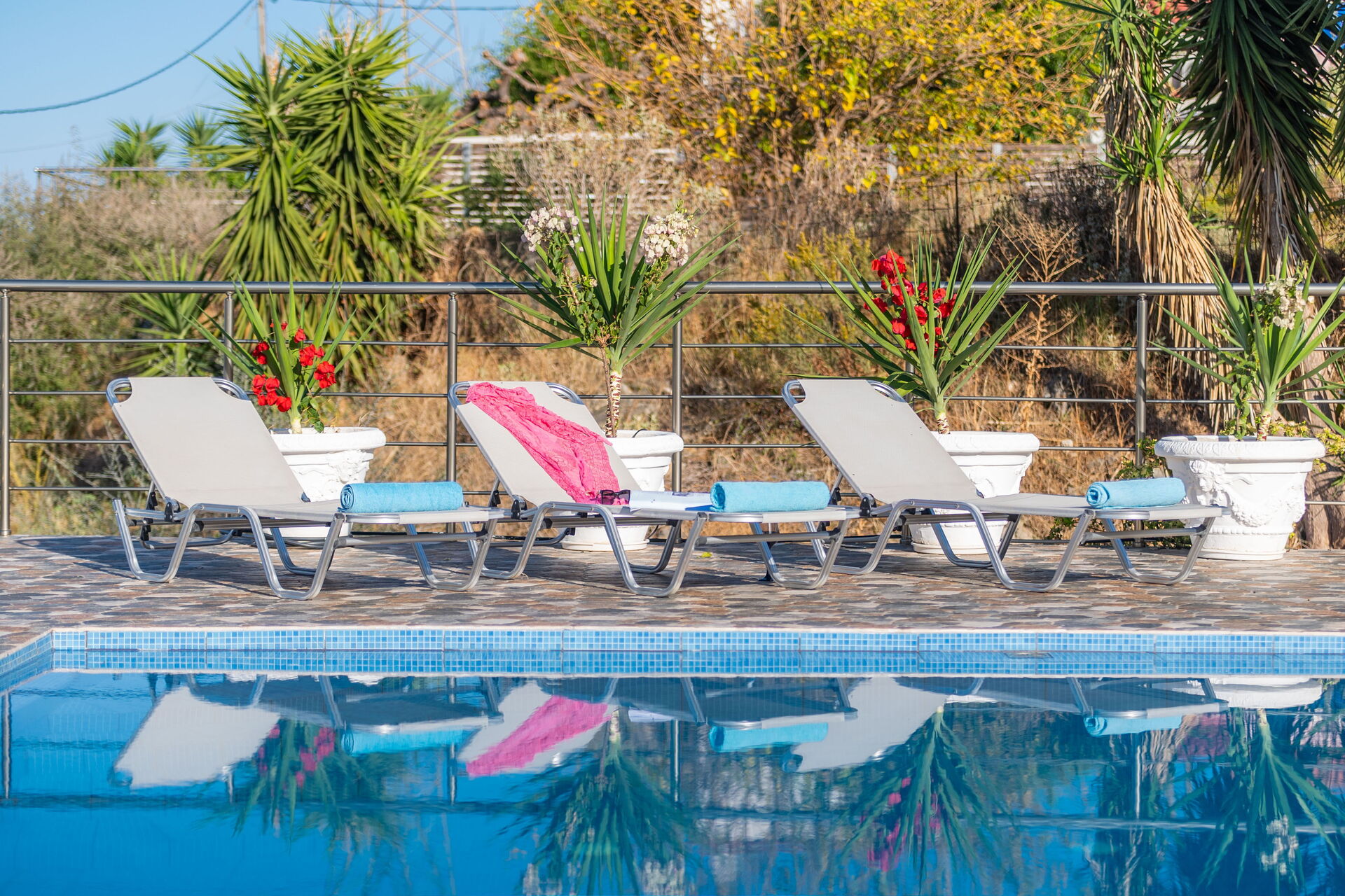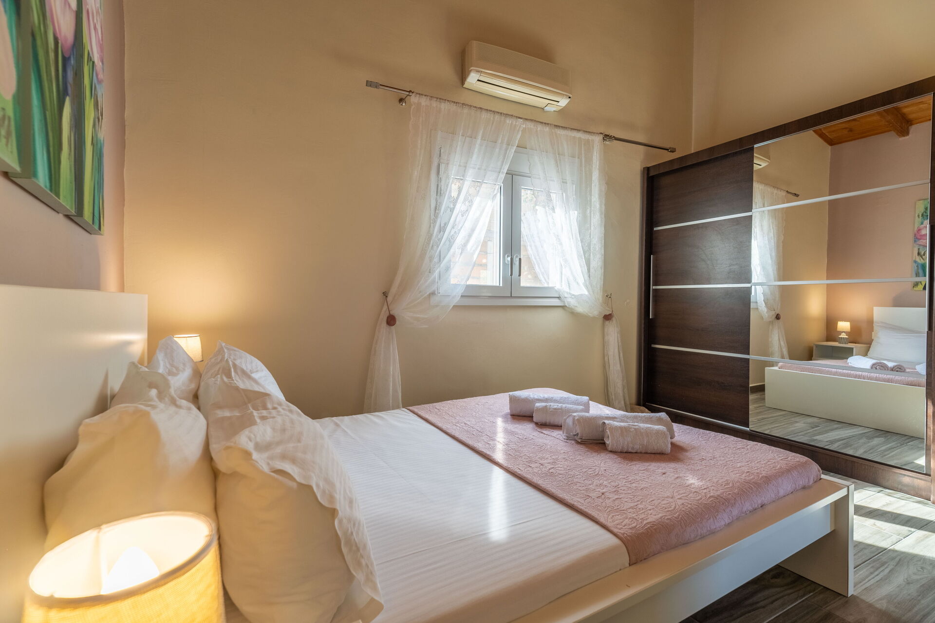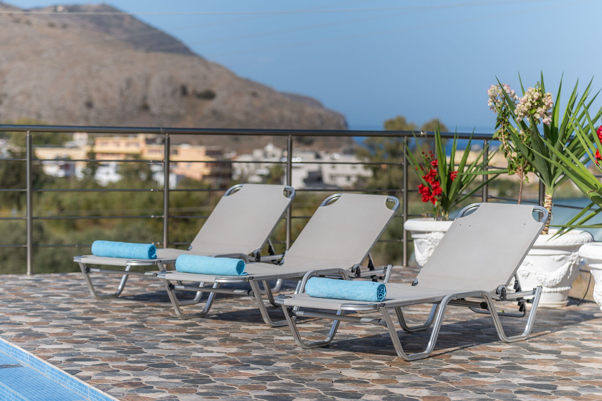 Afstande: Georgioupoli (alle typer butikker og strande) 1,5 km, Peristeras-stranden (sandstrand) 2 km, Kournas-søen (butikker og tavernaer) 4 km, Vrisses 8 km, Vamos 12 km, Almyrida 17 km, Rethymno 22 km, Chania 41 km, lufthavn 47 km, Heraklion 104 km, det berømte Knossos-palads 105 km.