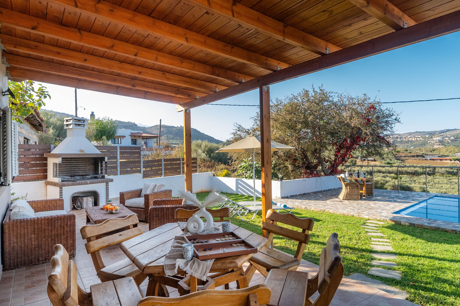 Nyt, smukt feriehus med privat pool i den charmerende badeby Georgioupoli på øen Kreta i Grækenland.