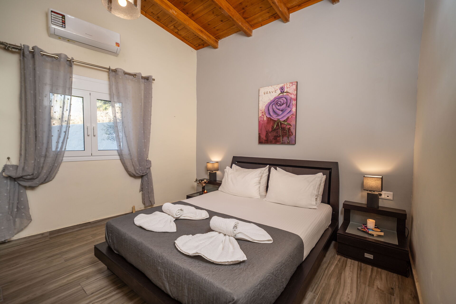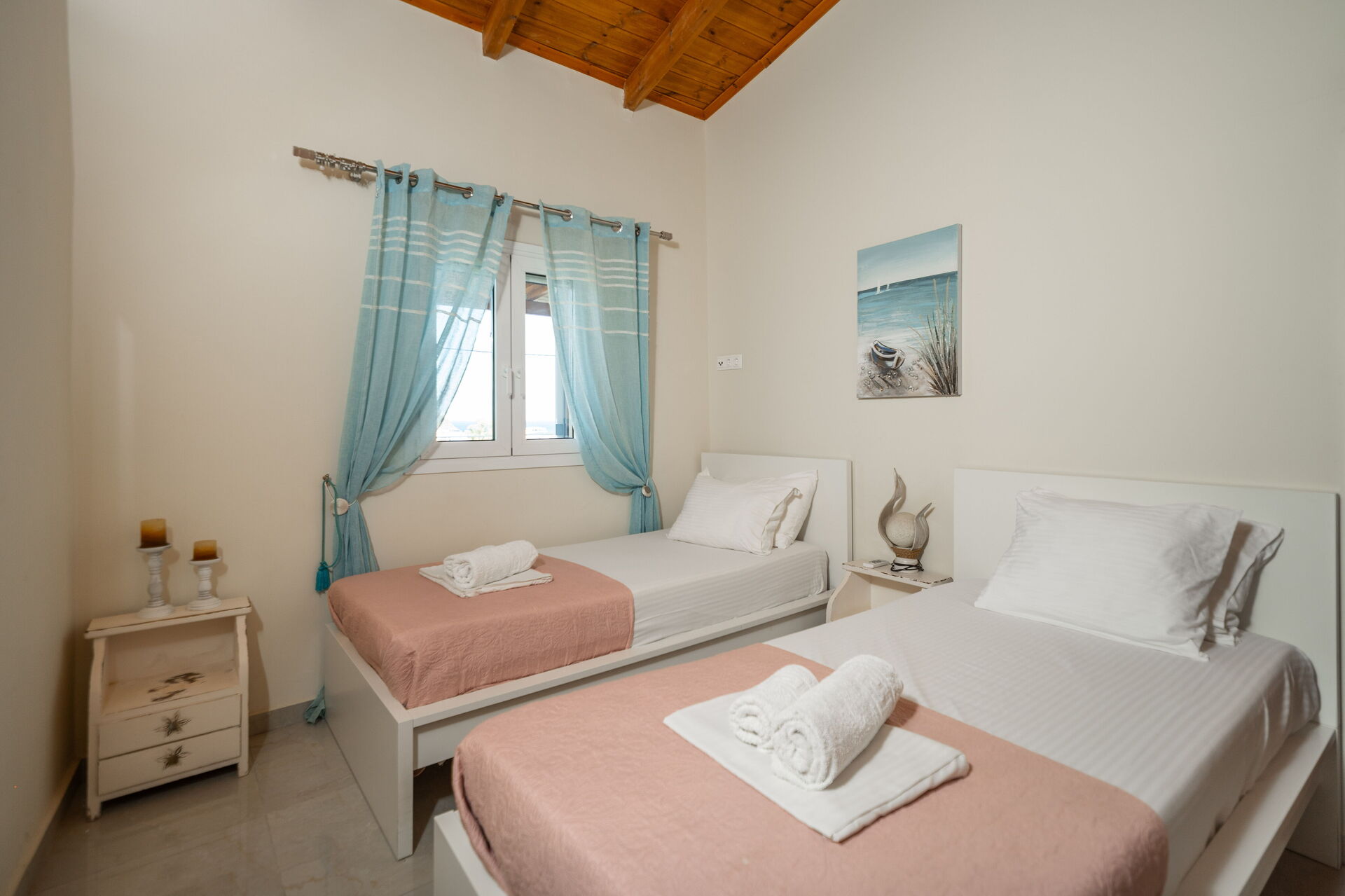 Feriehuset er i ét plan, har aircondition og er smagfuldt indrettet i en enkel og moderne stil. Huset har plads til op til seks gæster takket være tre hyggelige soveværelser. Der er også to badeværelser, så her er god plads til alle!