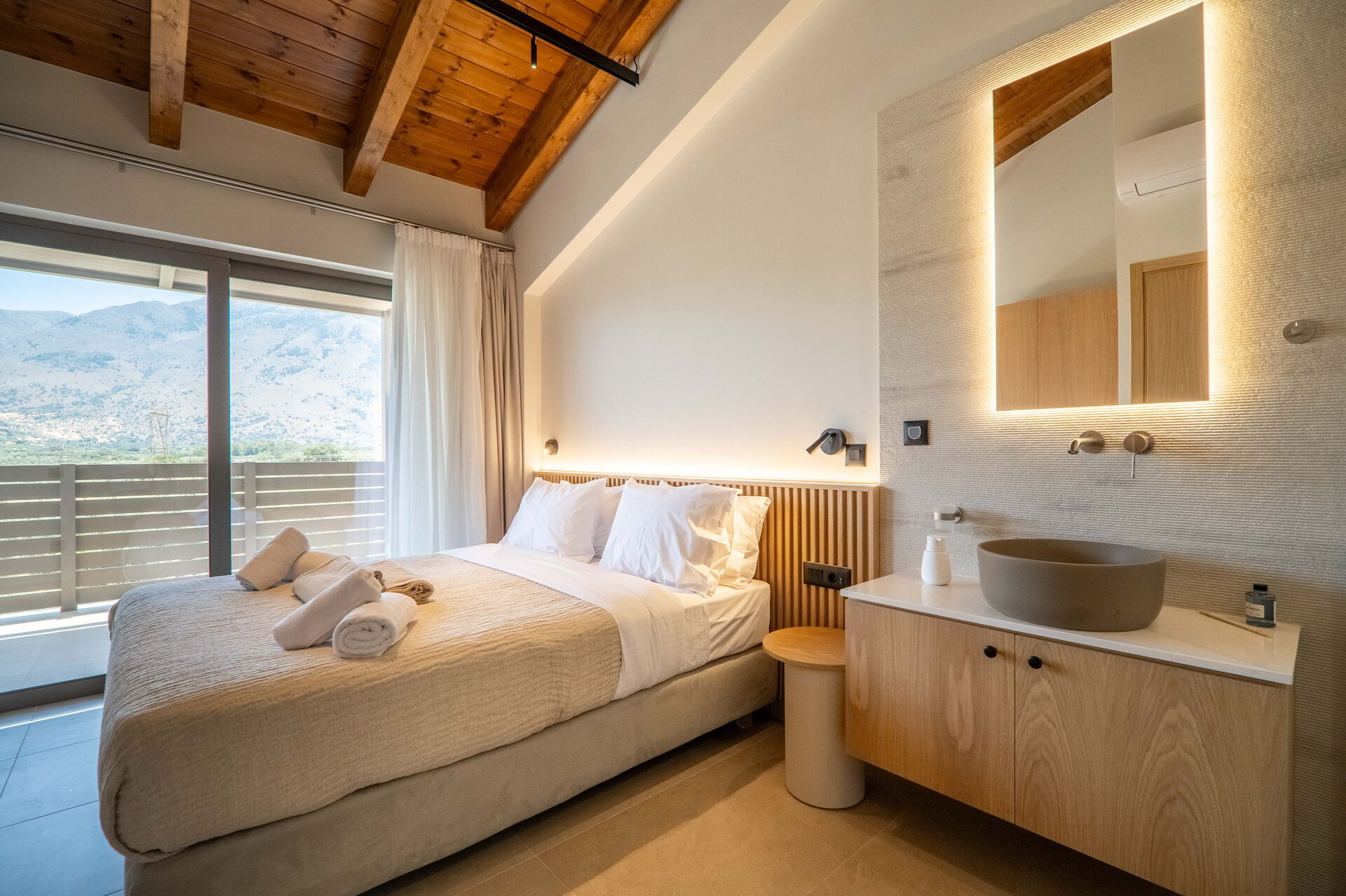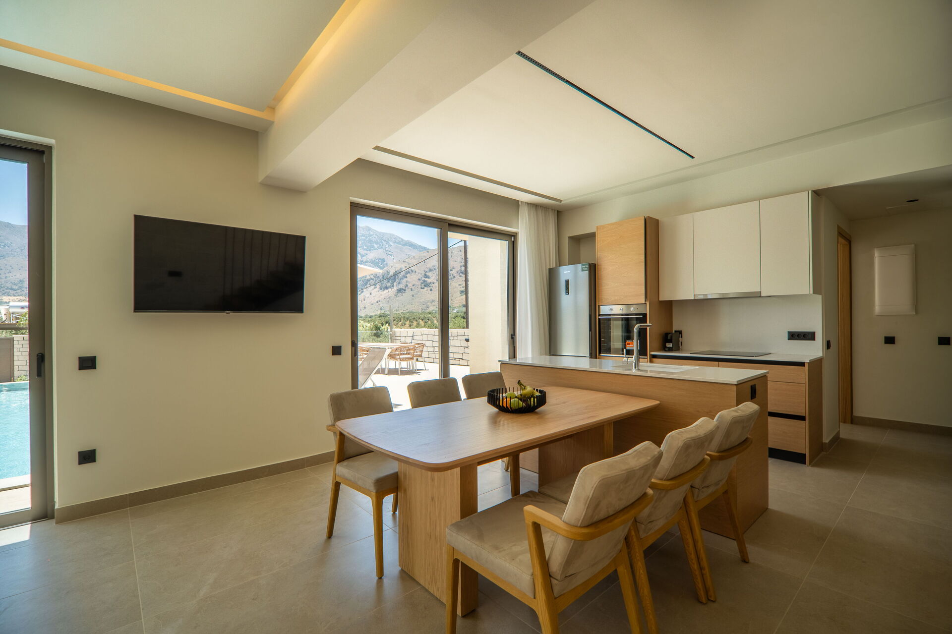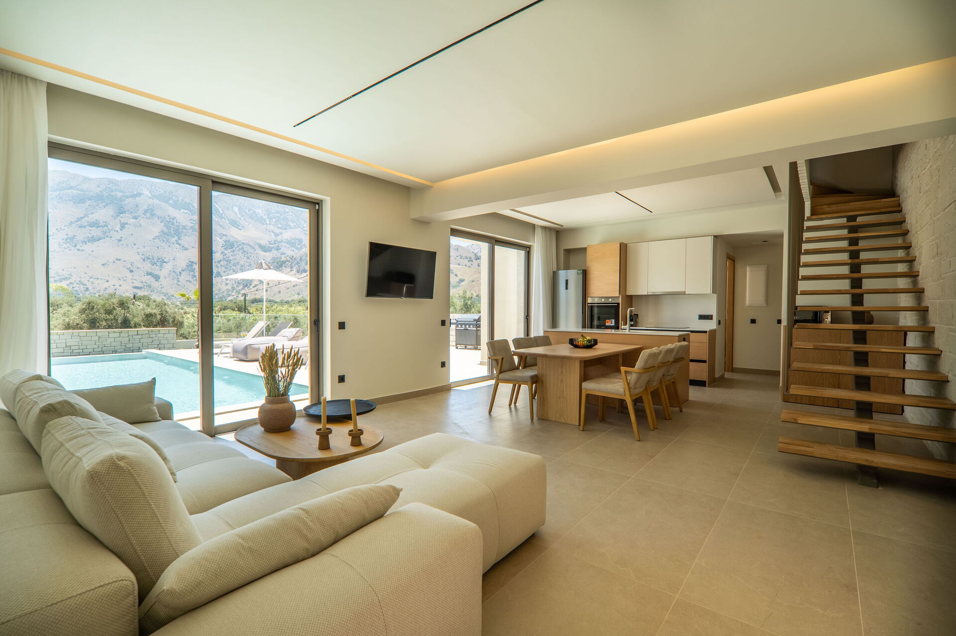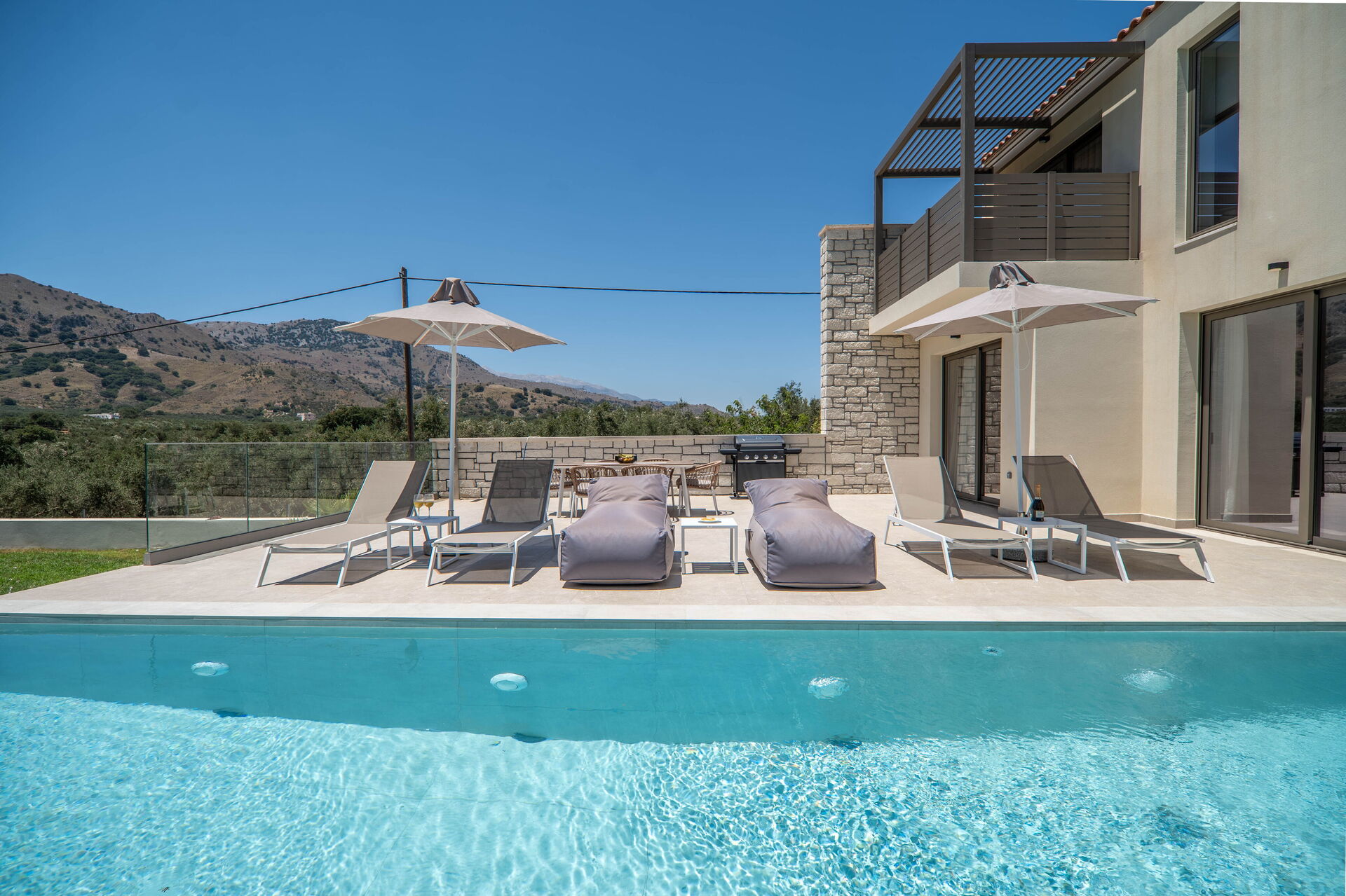 Hver feriebolig har 3 soveværelser, 3 badeværelser, en skøn opholdsstue med køkken, aircondition i alle rum og et fantastisk udeområde med en privat pool, der kun er til gæsternes brug.