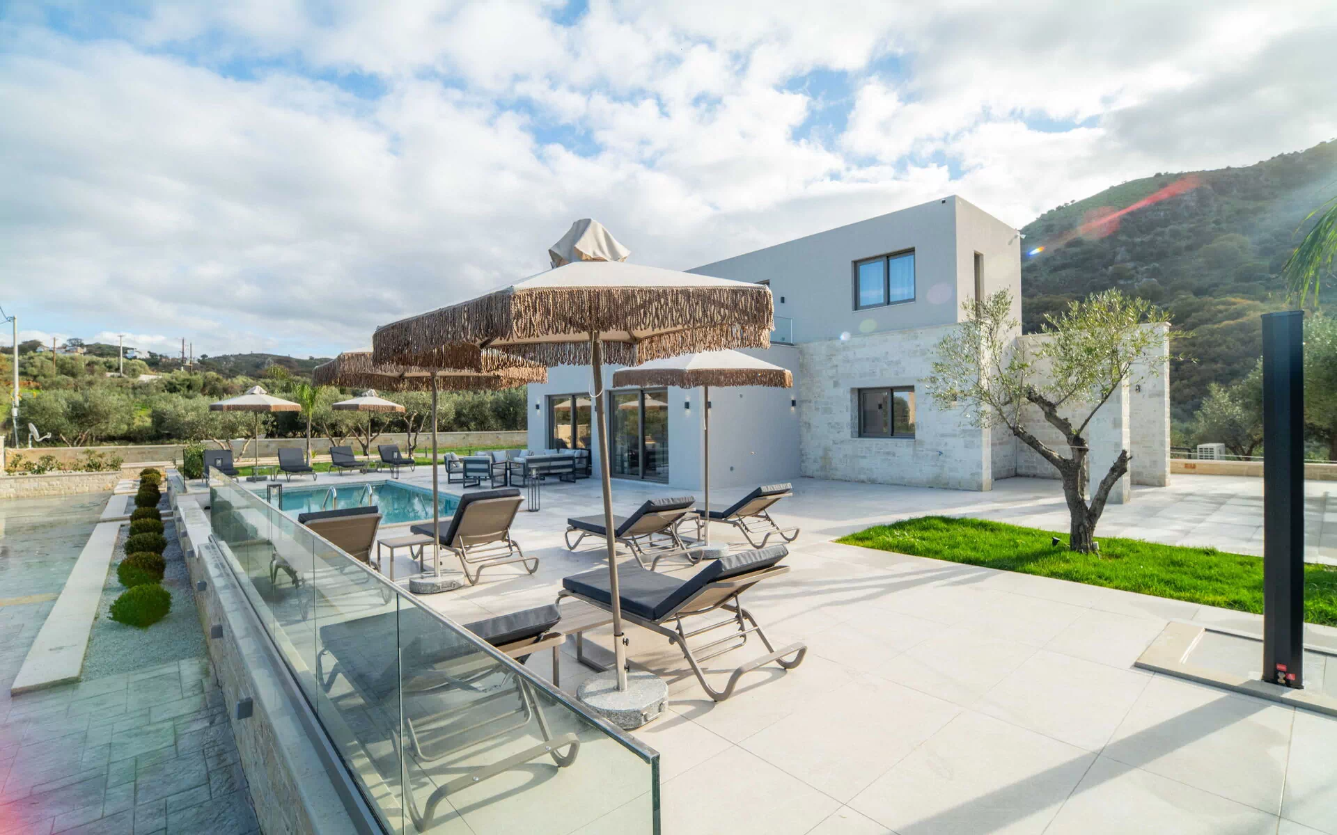Huset stod færdigt i januar 2026, så alt i Villa Vasilissa er helt nyt. På ejendommen finder du en smuk swimmingpool med panoramaudsigt over havet og det omkringliggende kretensiske landskab – perfekt til en forfriskende svømmetur på varme sommerdage.