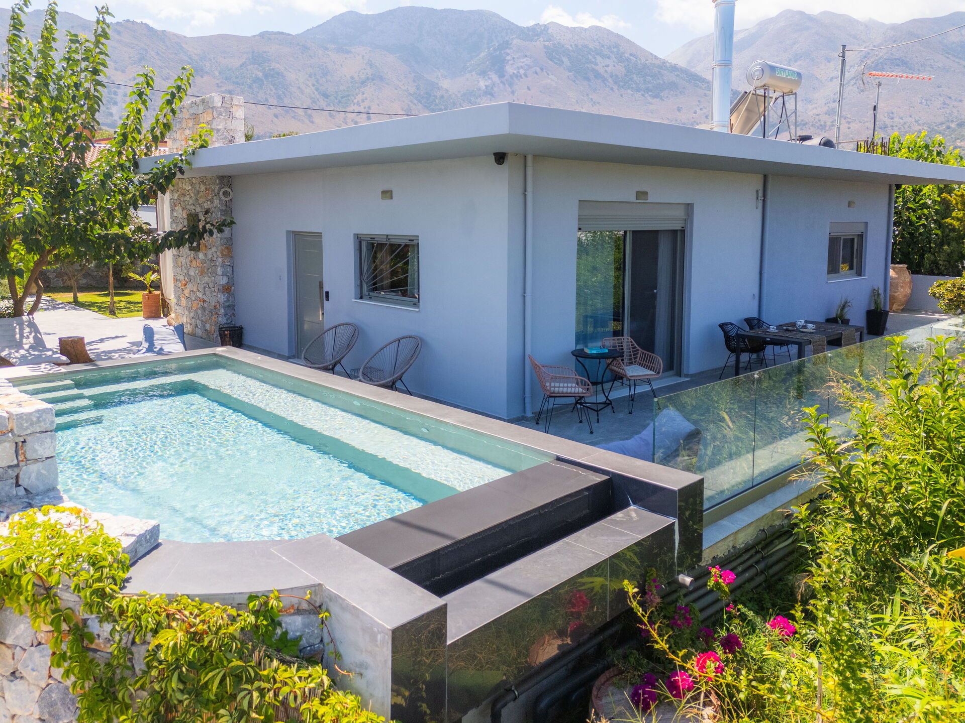 La Villa Katrine est un véritable havre de paix. Nichée dans le charmant village de Kastellos, elle bénéficie d’un emplacement idéal : seulement 10 minutes des supermarchés, commerces locaux et stations-service. La maison est décorée avec goût, dispose d’une cuisine parfaitement équipée, d’un superbe jardin et d’une piscine offrant une vue imprenable.