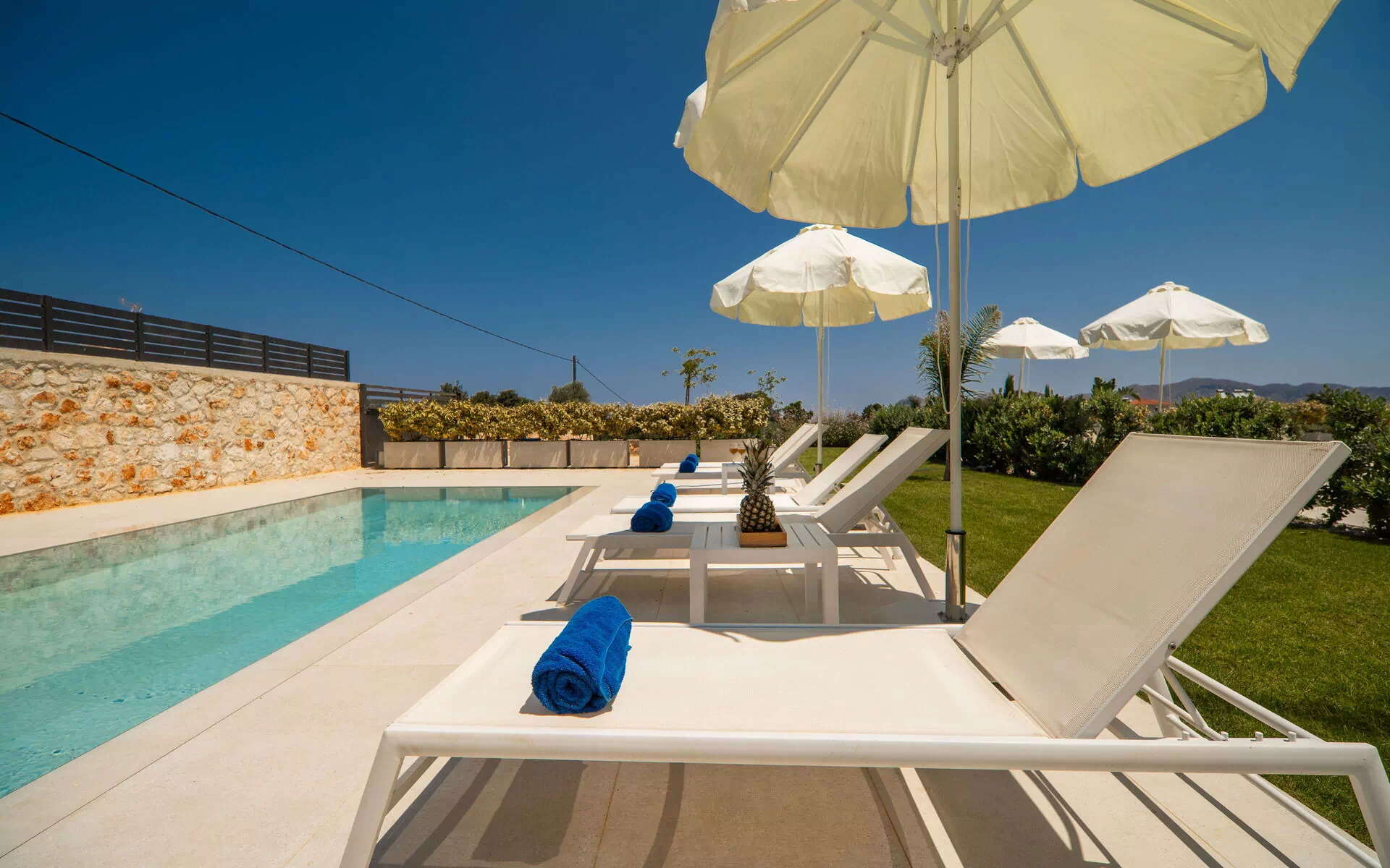 We had a wonderful stay and booked three of the four villas for our family party of 15, which worked out brilliantly. The villas and pool were all excellent, very clean, spacious and well-equipped. There are a few restaurants in the village of Kounoupidiana within walking distance of the property and we hired a car for supermarket runs and to get to Marathi beach. We used the bus service to get into Chania (about 20 minutes journey) and beyond - the bus stop is just up the bank which was really handy and the buses are regular and cheap. Our lovely host, Frosso was extremely helpful and always available to help with local information and booking restaurants and excursions. She was so kind to us and really was a perfect hostess. We would highly recommend a stay at these beautiful villas. Thank you so much Frosso and Posarelli Villas!