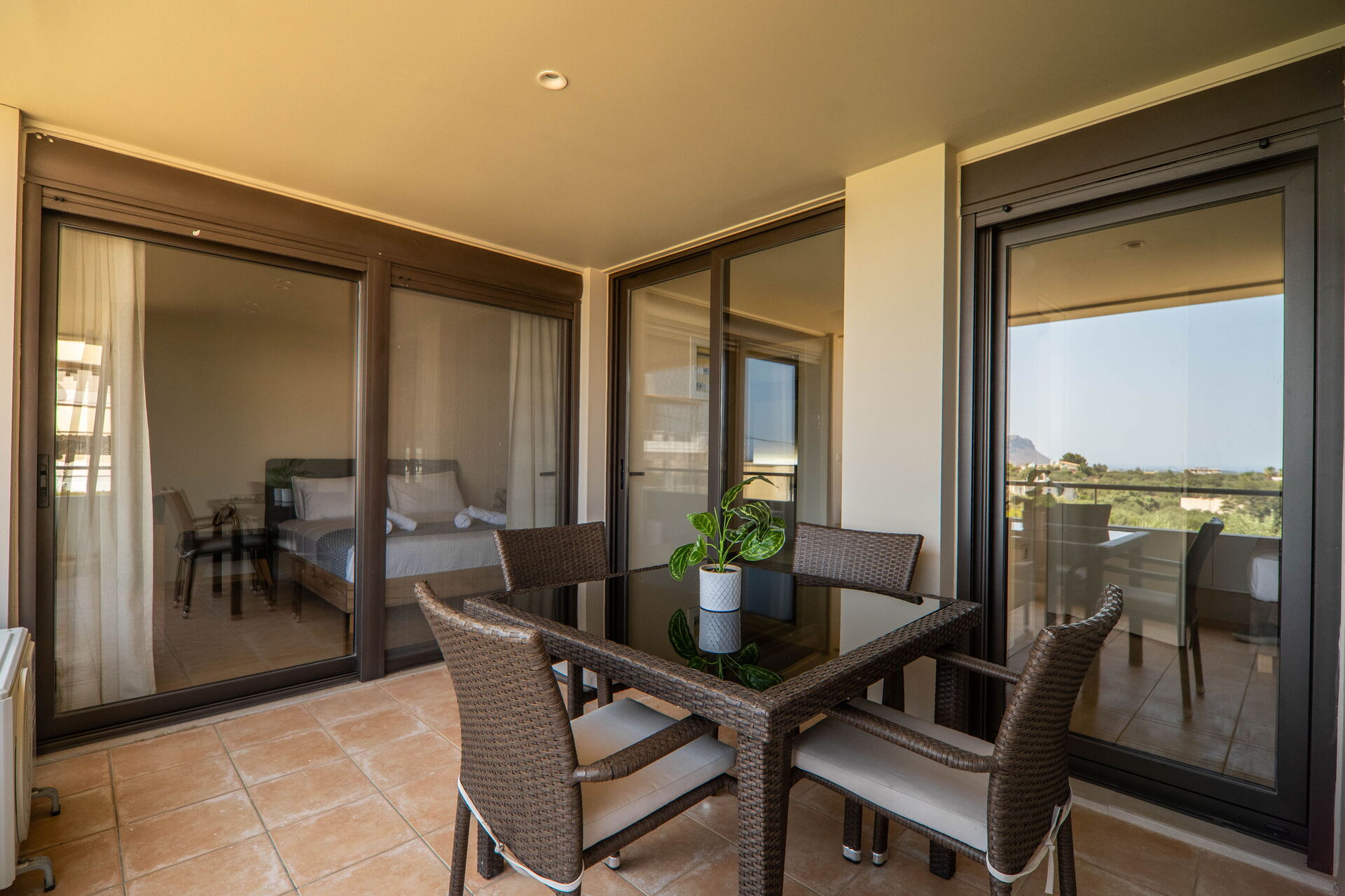 Begge soveværelser har udgang til en meget stor terrasse med bord og stole