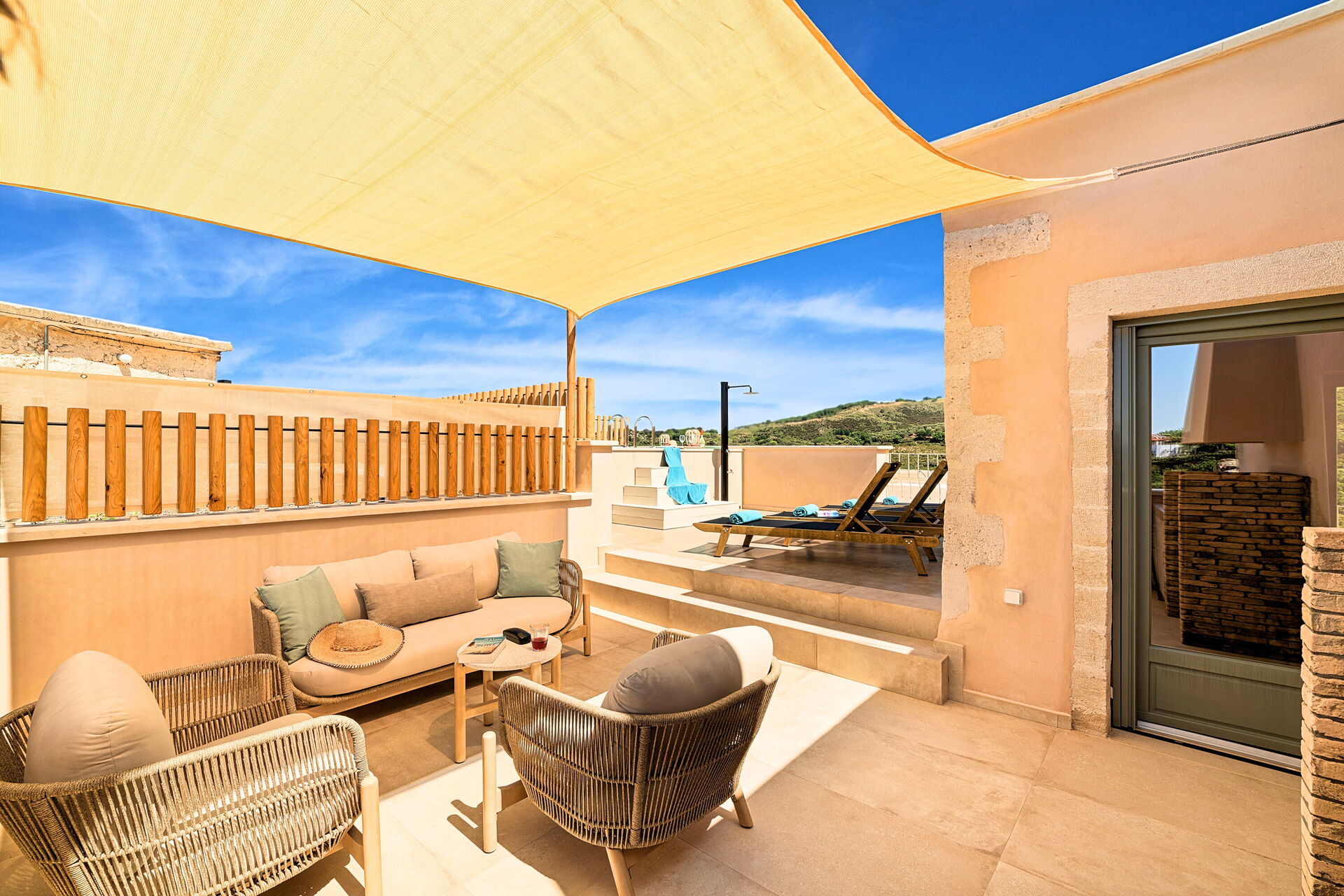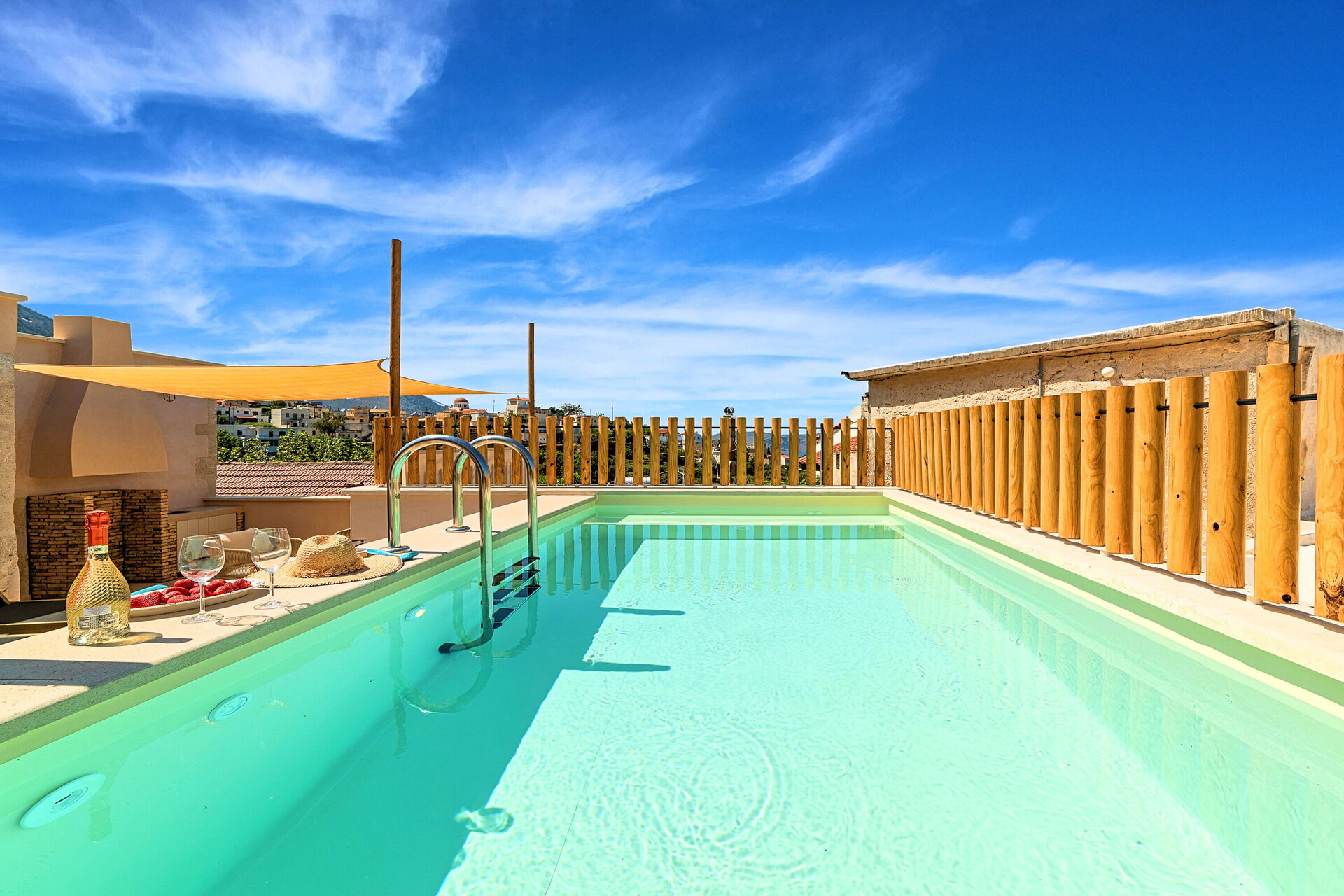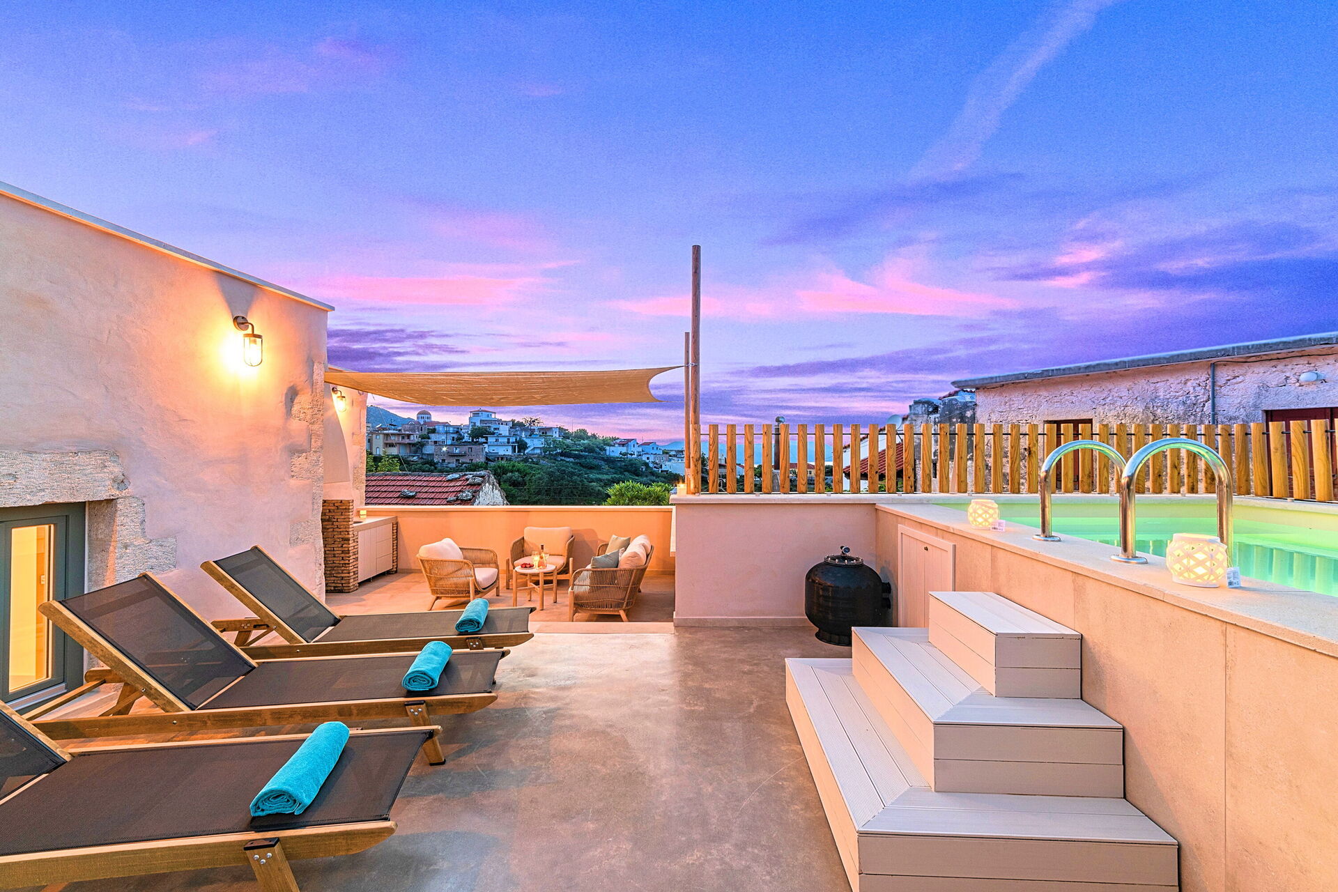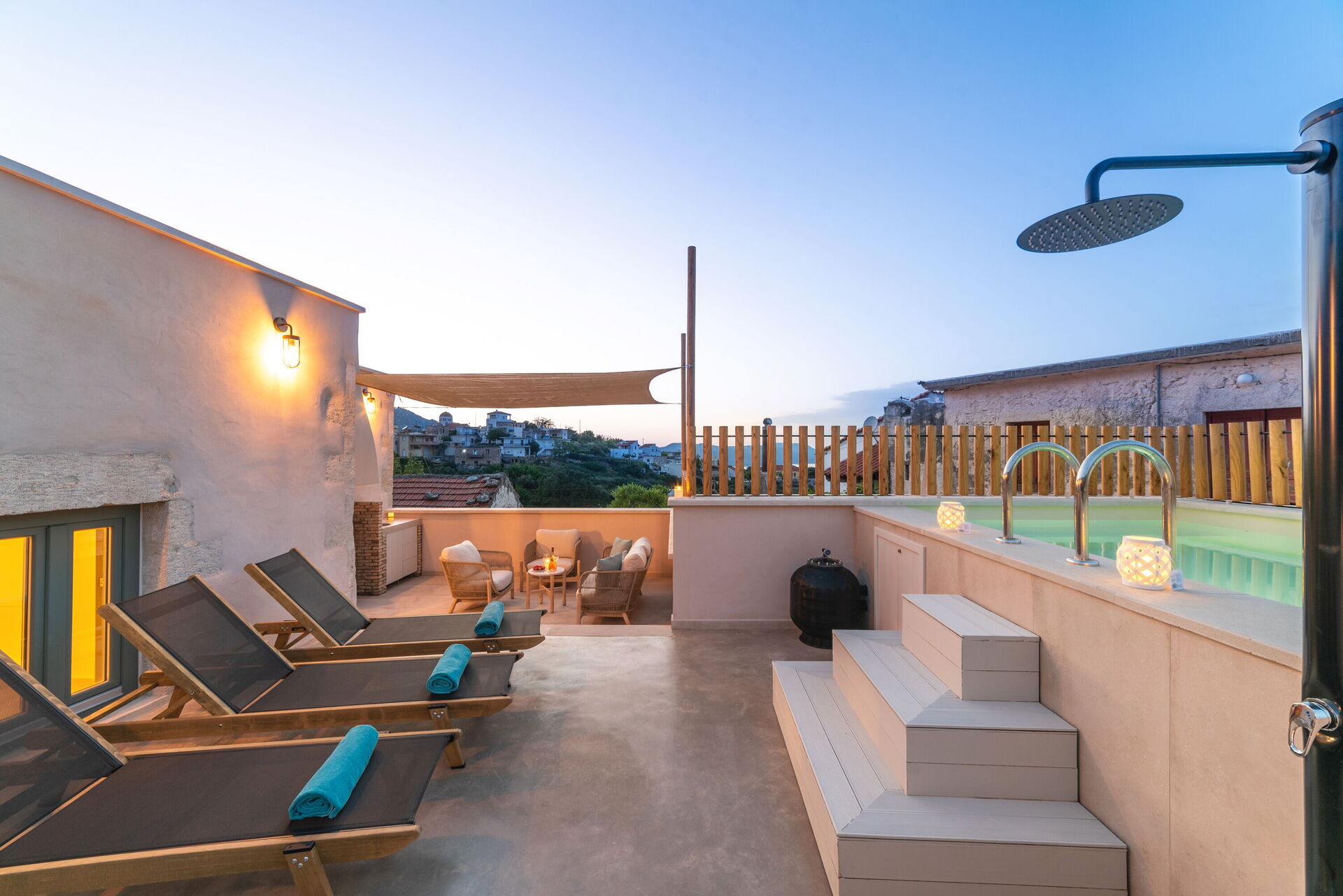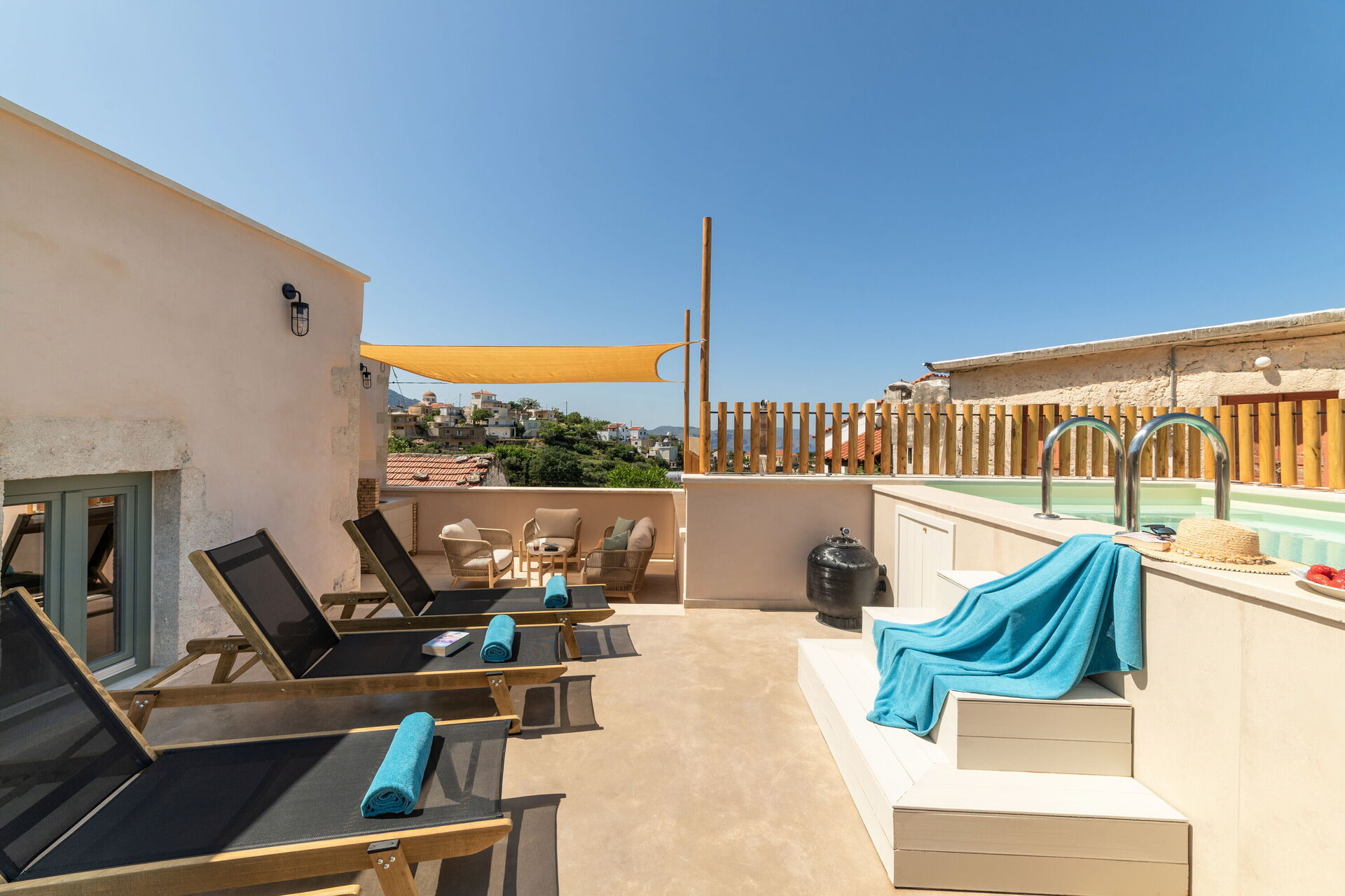 The photos are stunning and the place is even better. A beautiful property that is so well looked after and clearly a labour of love from the owners rather than just a business. There was plenty of room for our family seven and a nice layout to the place. Every little detail throughout had been well considered and everything was of a really high spec. Well above and beyond what we could have hoped. The pool on the roof a great addition to take the edge off the Cretan summer. The owners personally greeted us, were very friendly and made us feel so welcome. Can’t thank them enough for their hospitality. Kournas is lovely too. Very small and peaceful but still has three good tavernas within about a minute’s walk from the property. Would highly recommend to anyone.