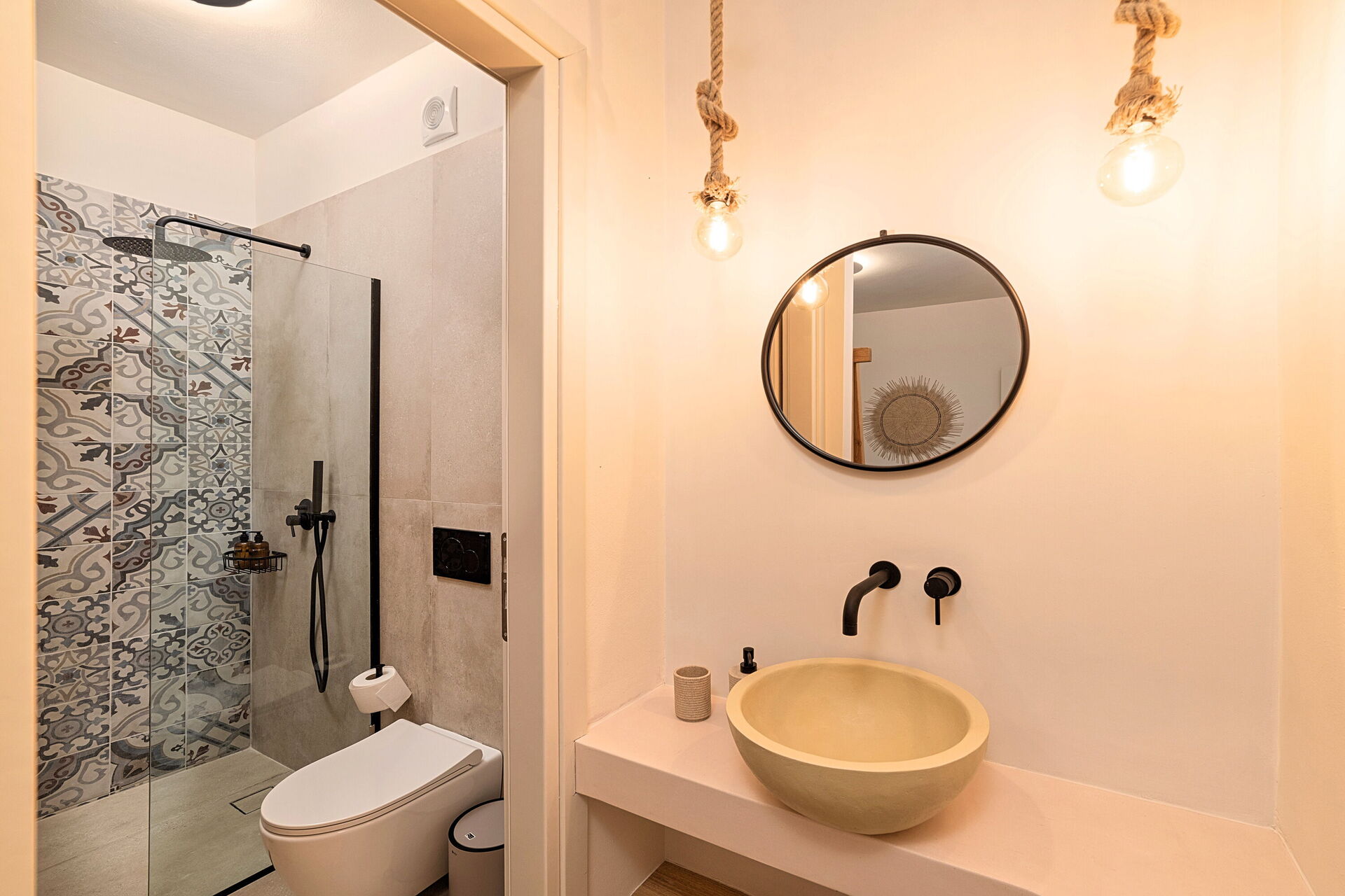1 dobbeltværelse (aircondition) med brusebad i soveværelset, privat badeværelse med brusebad og vaskemaskine.