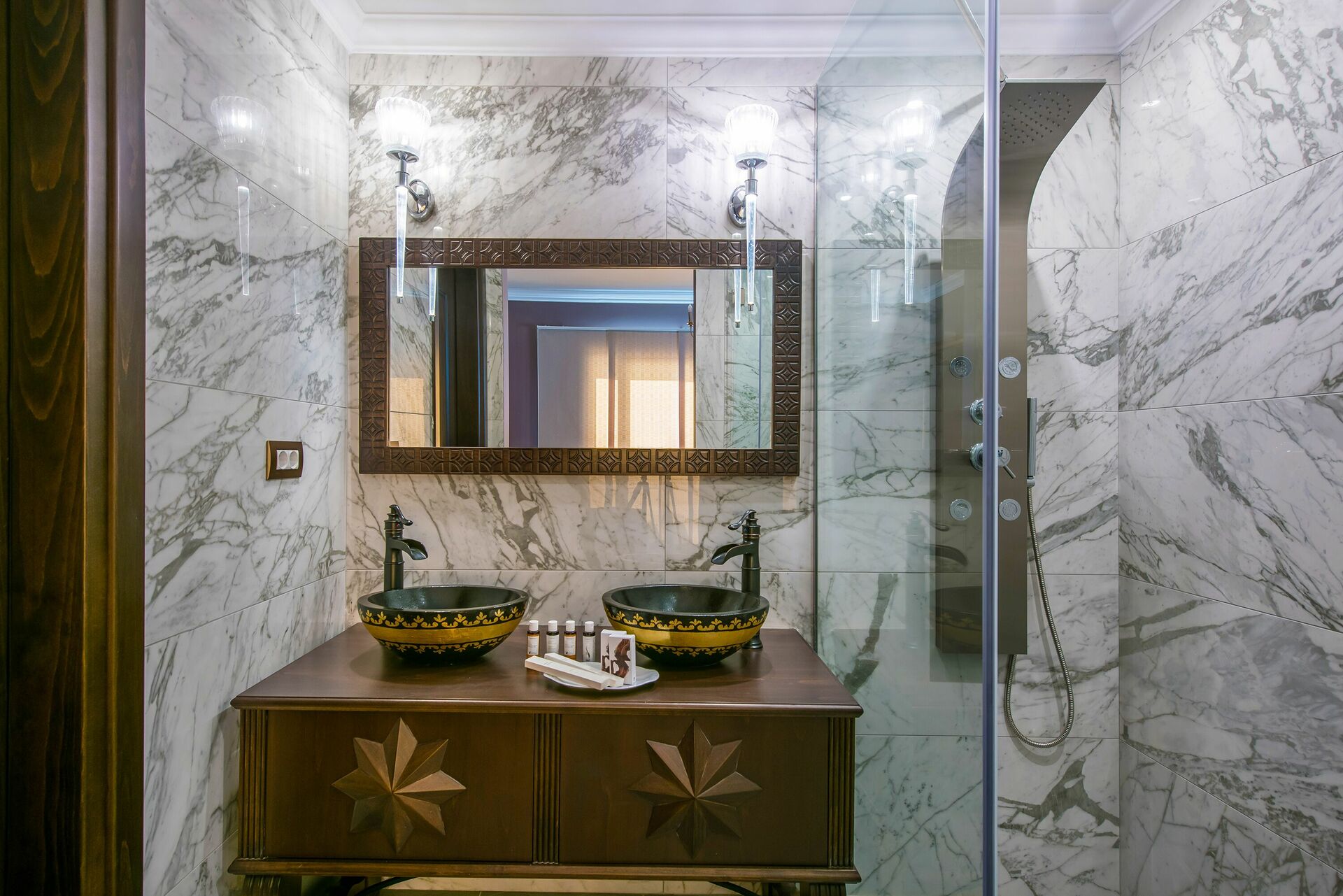 Indgang med dekorative marmortrapper; stue med udgang til veranda og gårdhave; spisestue; veludstyret køkken; TOILET; soveværelse med dobbeltseng med eget badeværelse med badekar.