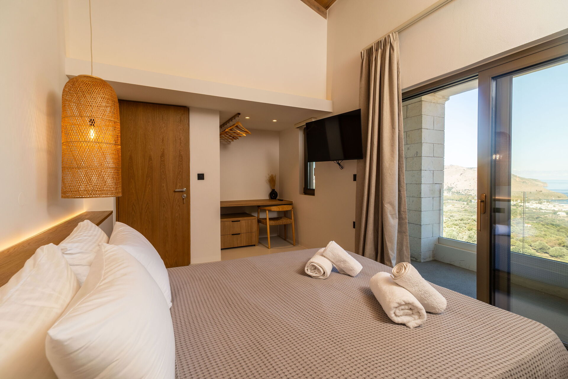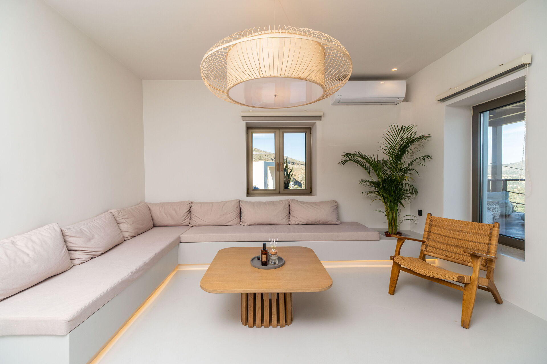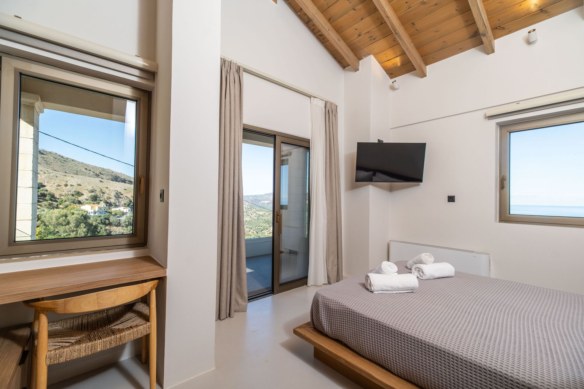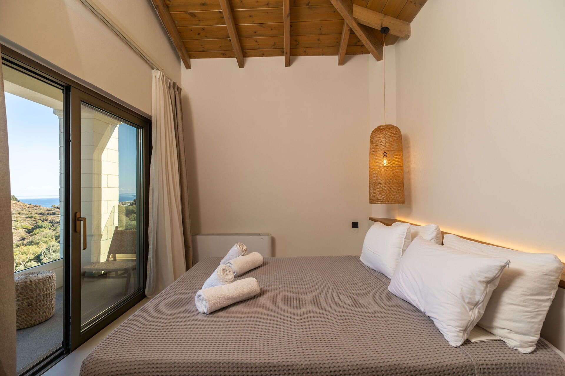 Huset har et moderne interiør og med sine 5 soveværelser kan det rumme op til 10/12 personer. Ejendommen ligger højt i terrænet og byder på en fantastisk panoramaudsigt over havet og det omkringliggende landskab.
