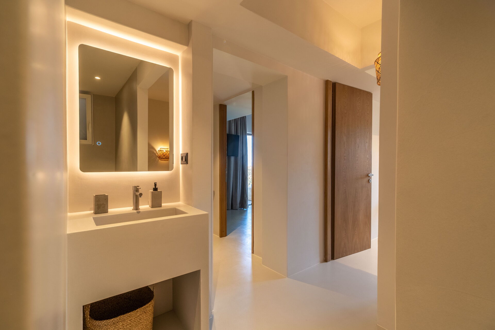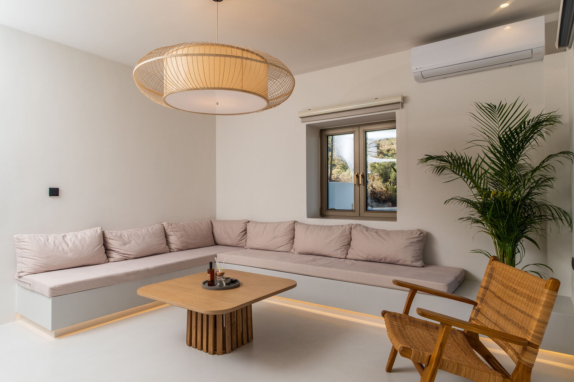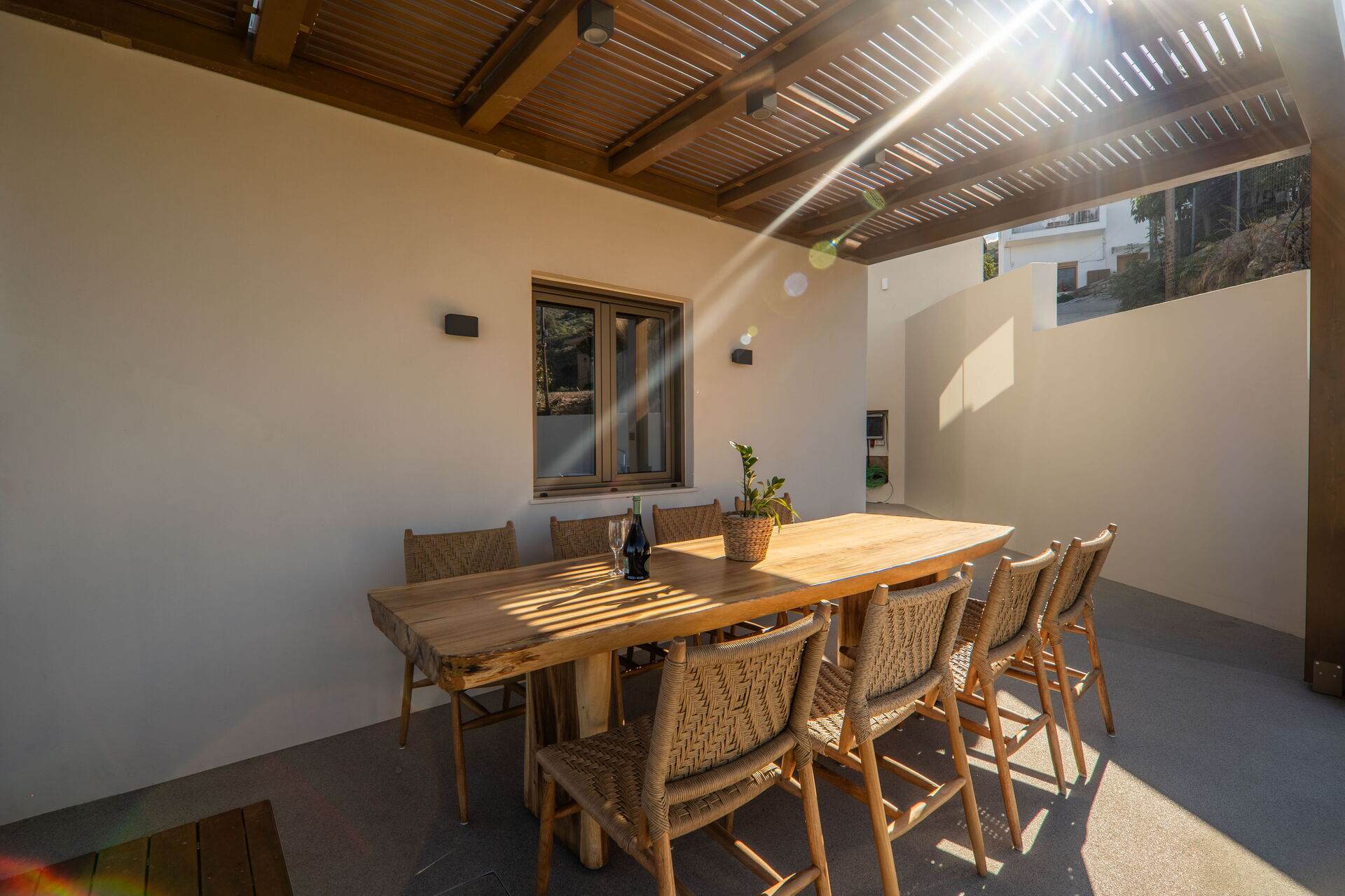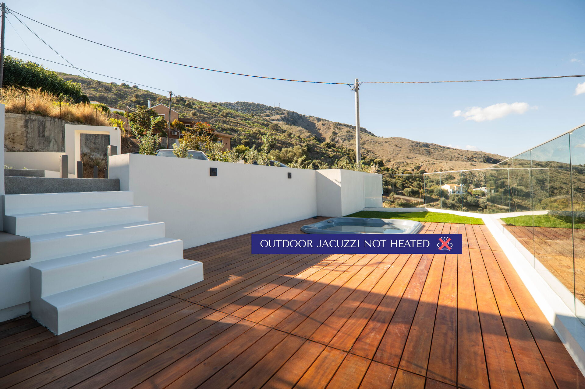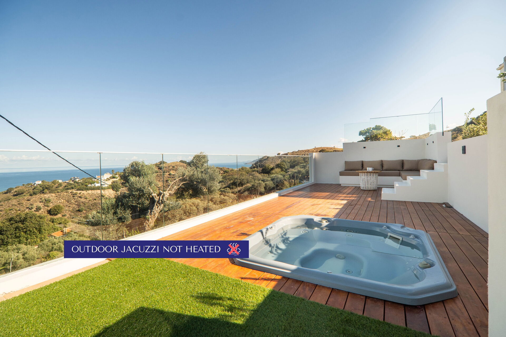 Huset har et moderne interiør og med sine 5 soveværelser kan det rumme op til 10/12 personer. Ejendommen ligger højt i terrænet og byder på en fantastisk panoramaudsigt over havet og det omkringliggende landskab.