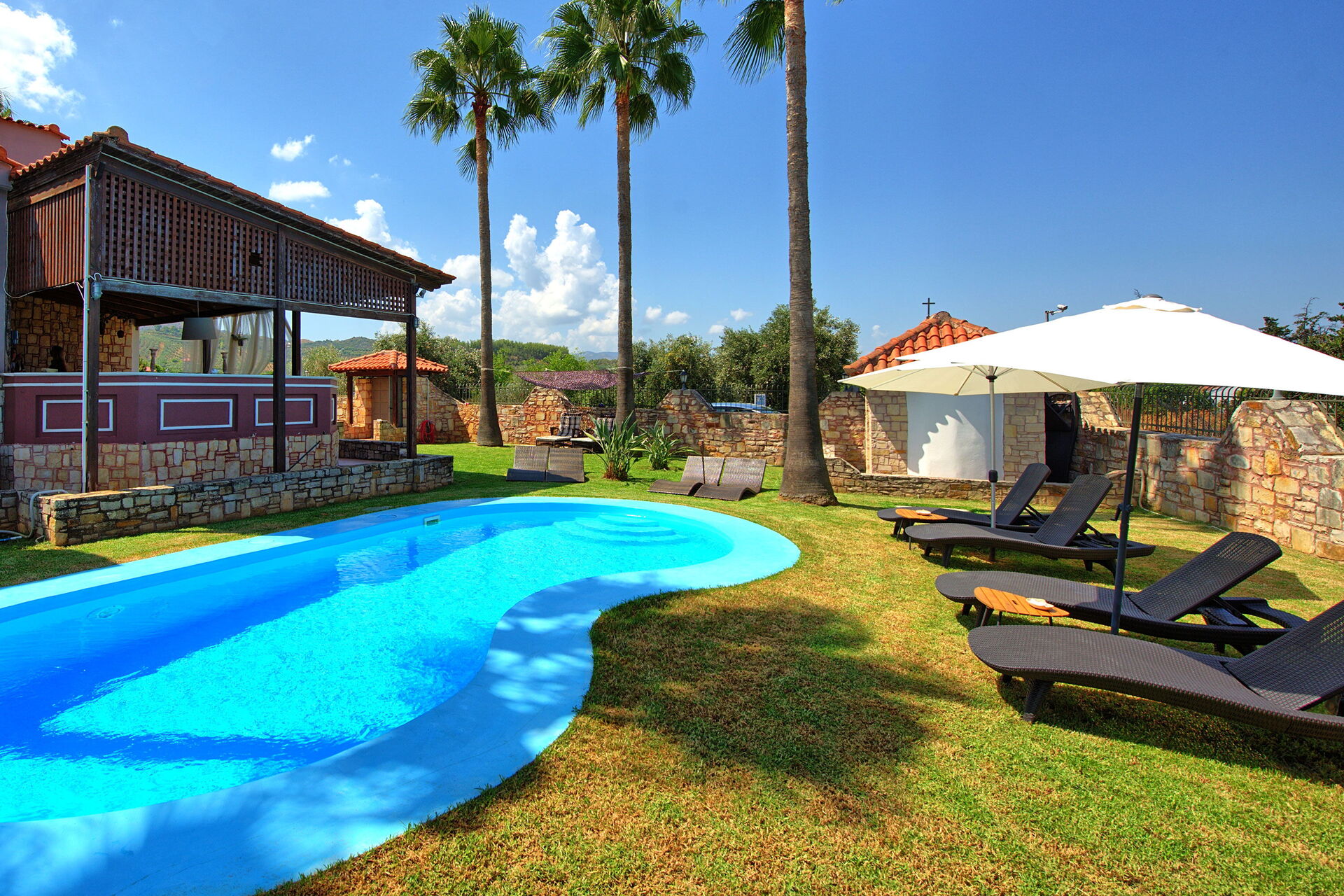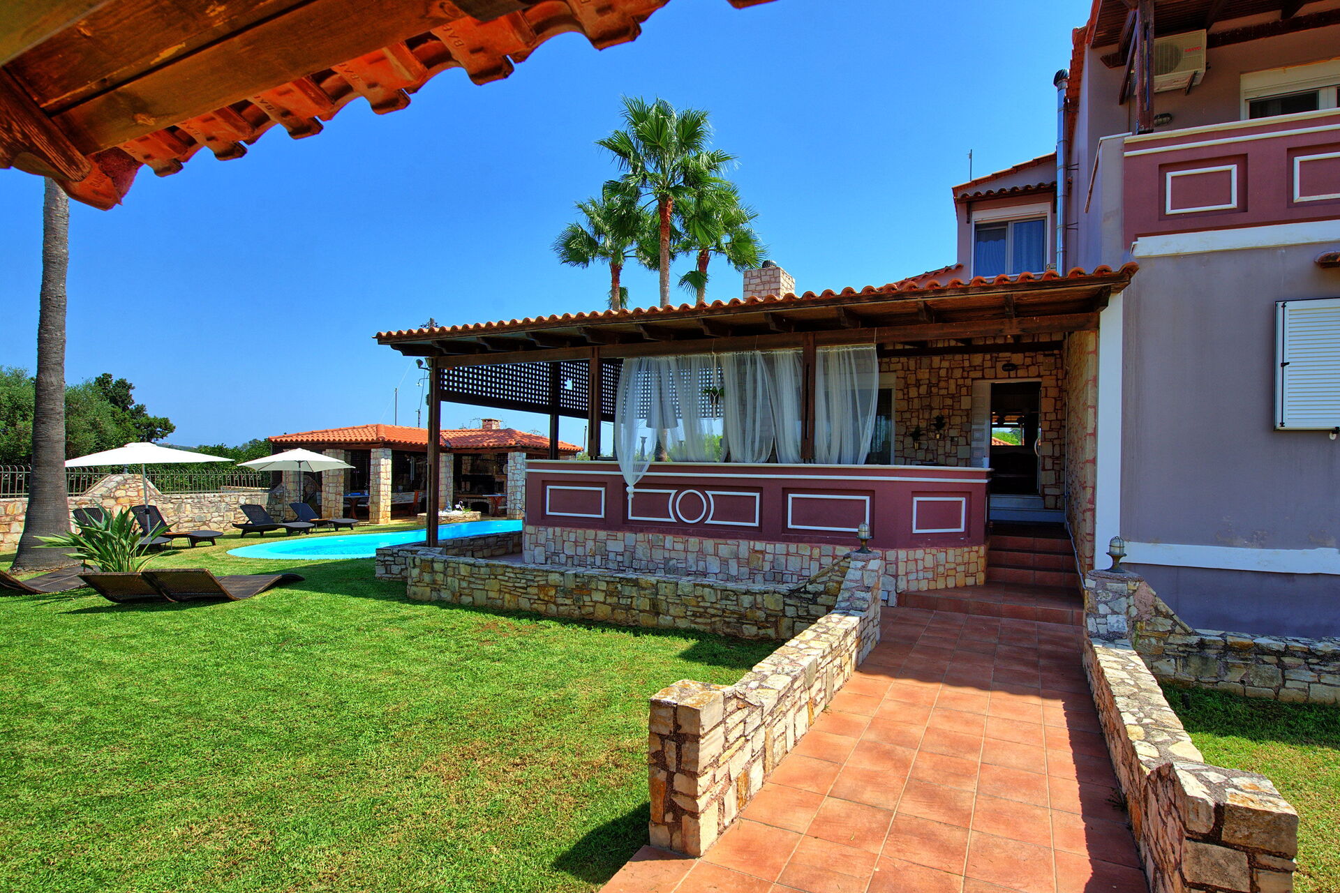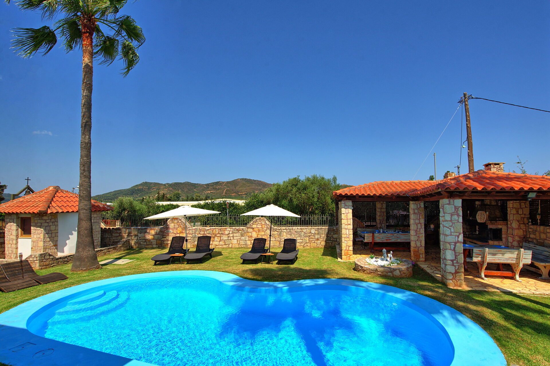 Very nice and calm area, big garden, great terrasse and barbecue area. Even with 10 people you can find easy an area to relax or have fun in the pool. Inside is comfortable with big salon to cool down and nice kitchen area. Chania, Beaches, mountains, local greek taverns are all around the corner, best to rent a car and/or scooter