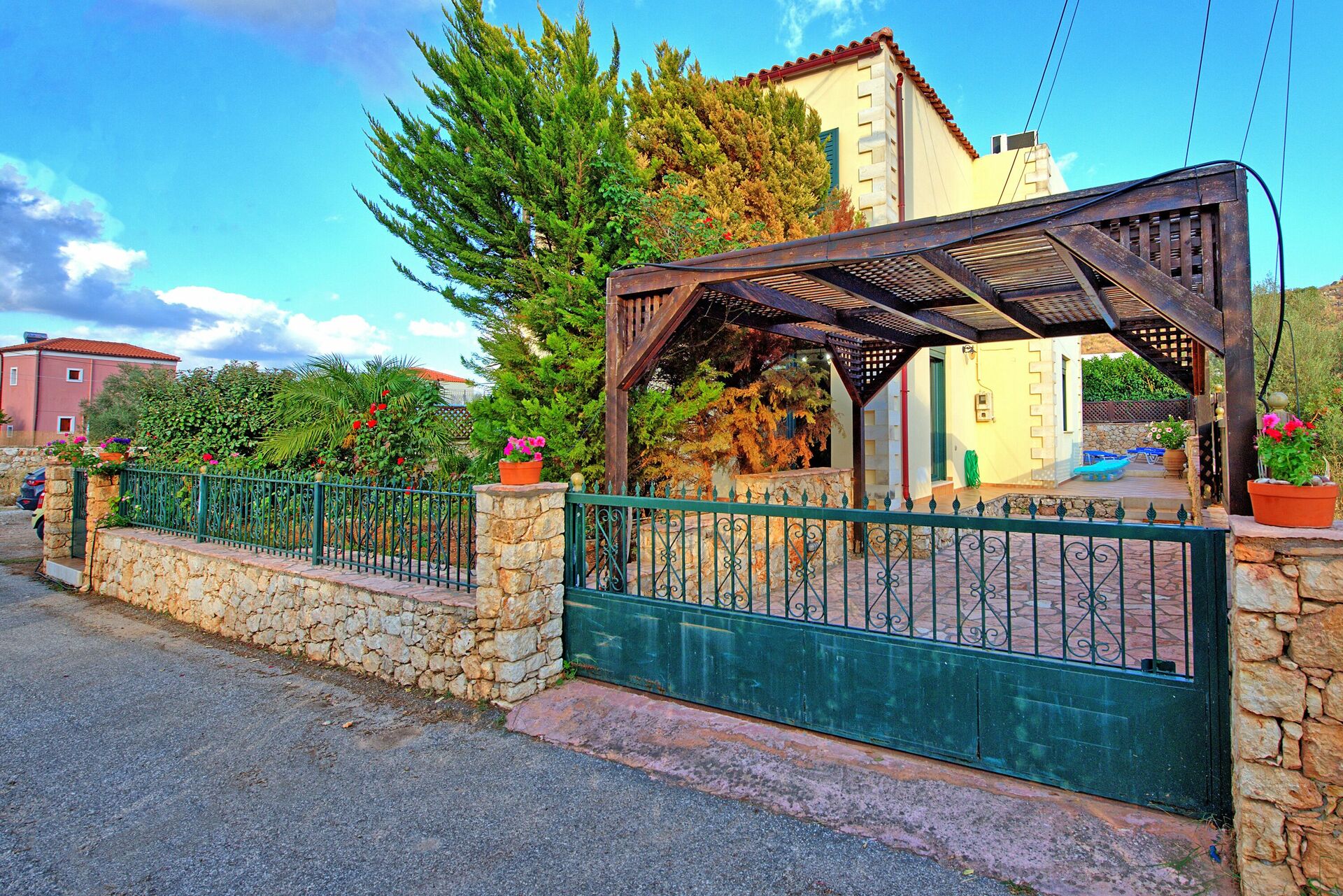 Afstande: Neo Chorio (restauranter og købmandsforretninger) 1,5 km; Kalyves (supermarkeder) 6 km, havet (Kalyves strande) 5 km; Chania 23 km; lufthavnen 33 km væk.