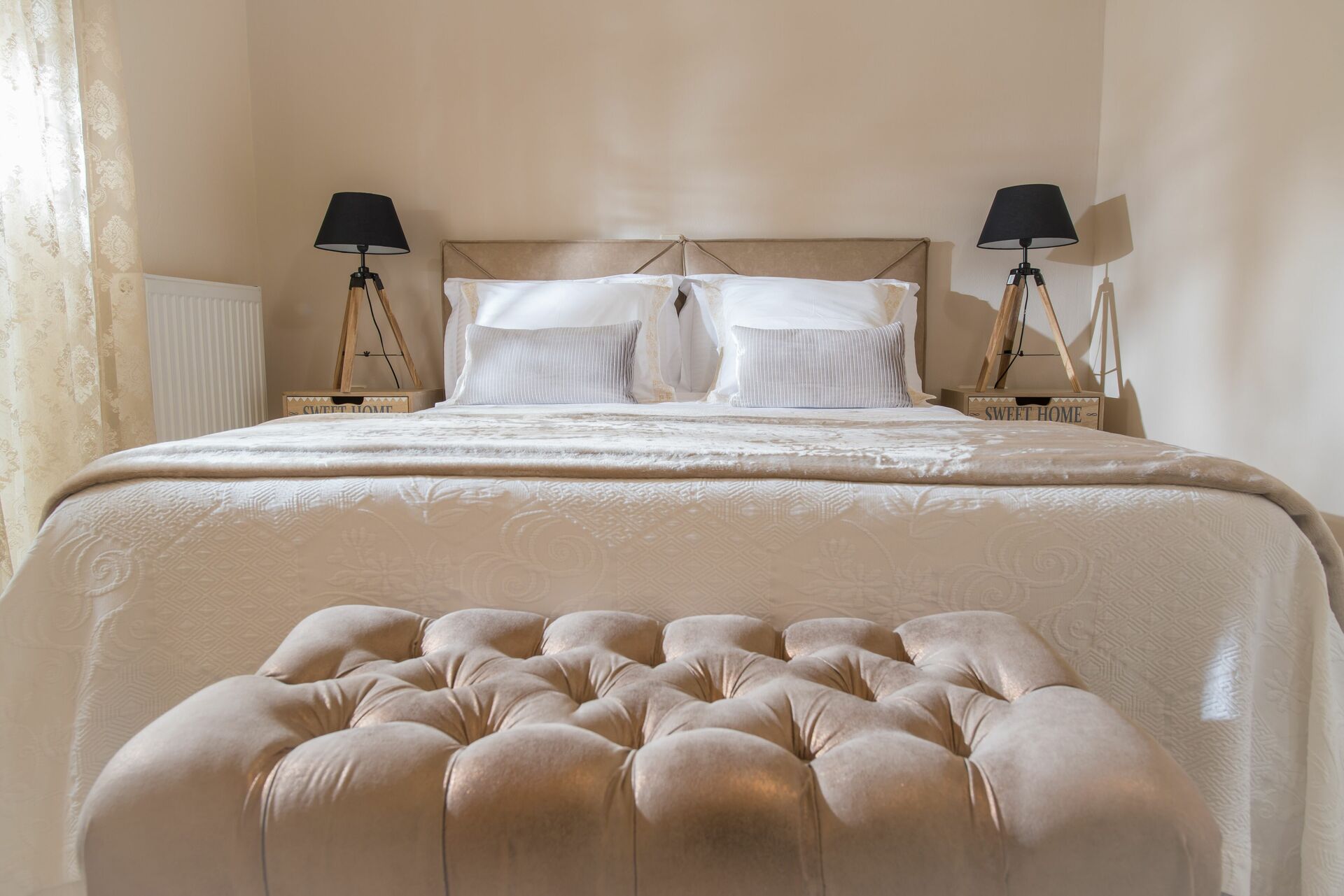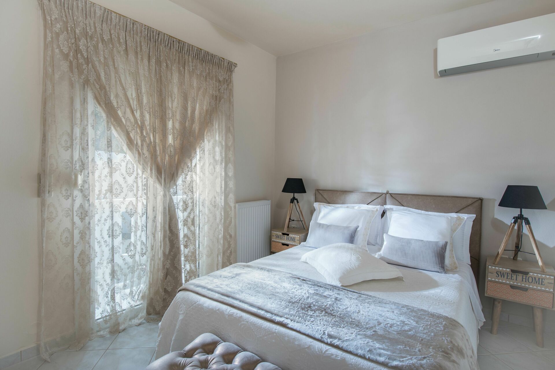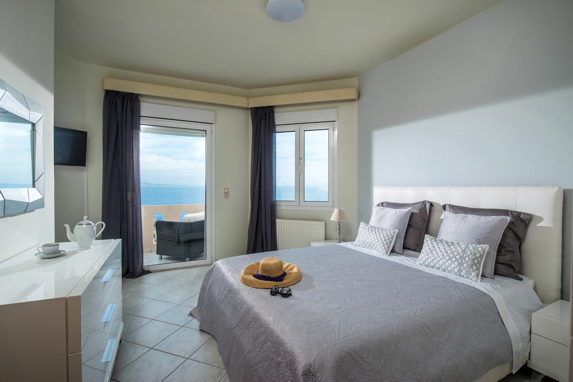 3 dobbeltværelser med balkon; 1 soveværelse med enkeltseng, badeværelse med badekar og walk-in garderobe.