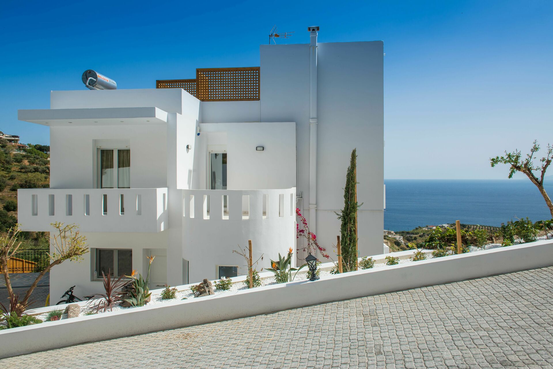 Afstande: Rodia (butikker) 2 km, Ligaria (strande, butikker) 9 km, Agia Pelagia 13 km, Heraklion 16 km, Knossos Palace 19 km.
